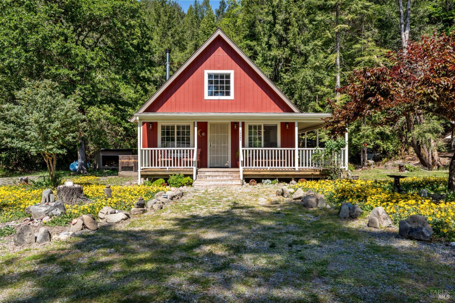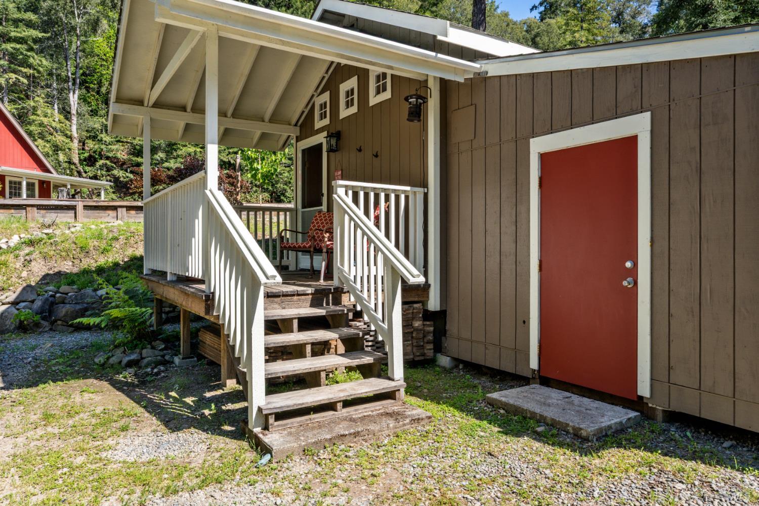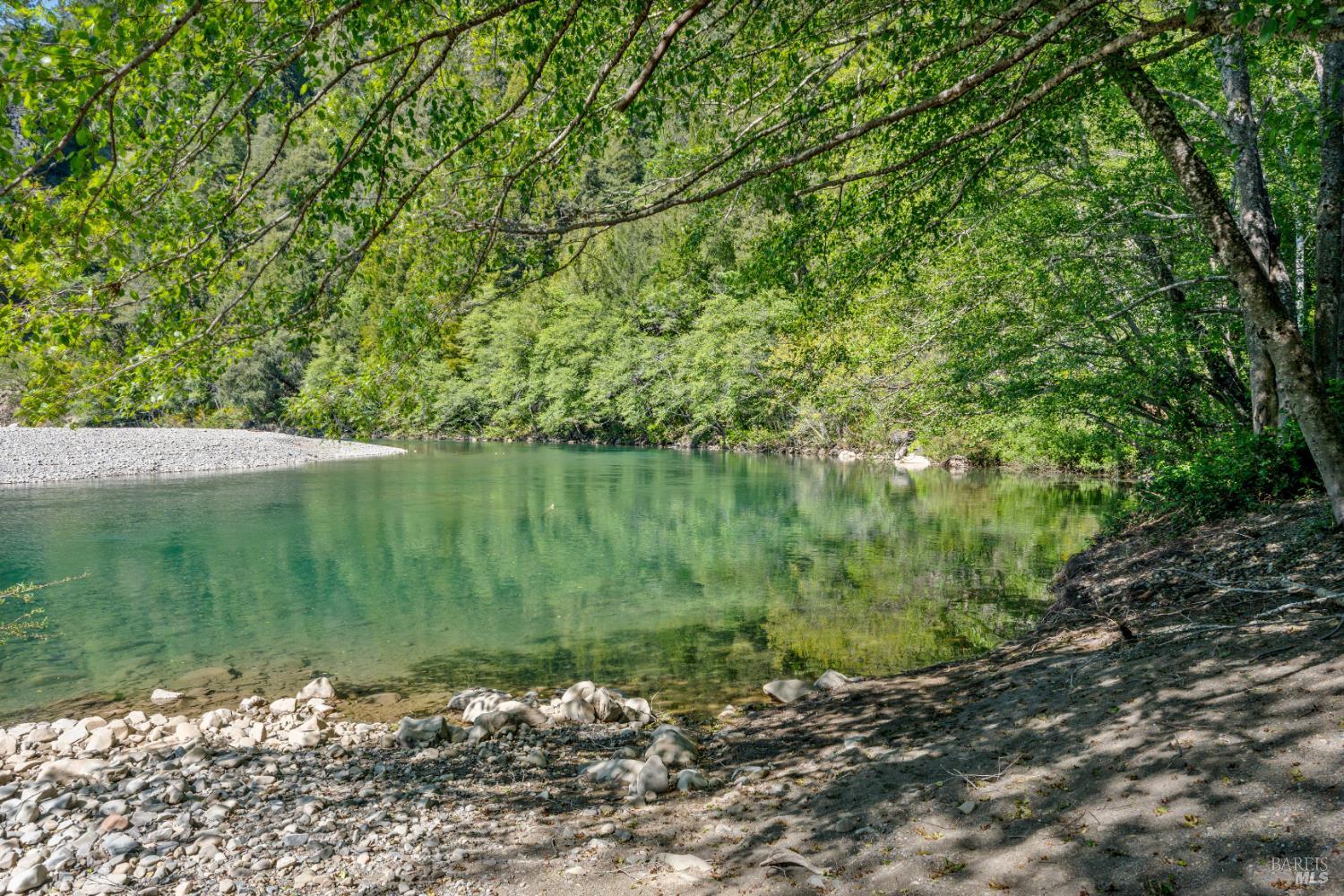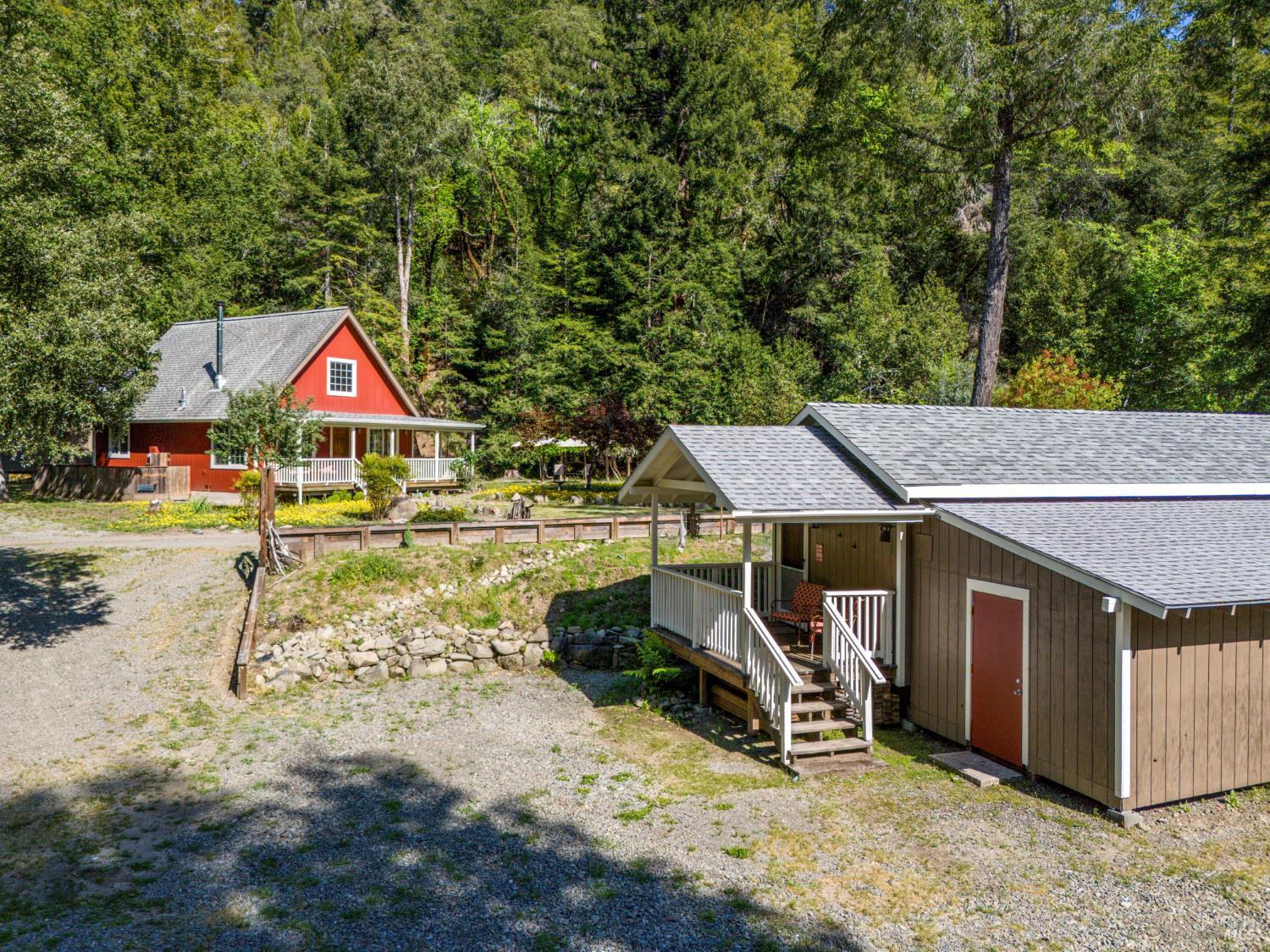 Seldom does any waterfront property on the Eel River become available on the market that is this accessible and turn-key. This is a place which can be perfect for vacation rentals or a family compound amongst the majestic redwoods. Discover your private paradise on 4.92 flat, usable acres with direct beachfront access to the stunning Eel River. This exceptional gated property offers a serene escape, complete with a year-round creek that meanders through the land, creating a natural swimming hole and providing ample water with Riparian rights. The property features the main house which is an adorable A-Frame cabin, a cozy detached studio which can be perfect for guests or family and an additional unit that can be used as a game room or gym... the possibilities are endless. Enjoy the abundant space for gardening with established garden beds and room to expand. New water spigots and lines have been installed throughout the property, supported by two wells, 5,000 gallons of water storage, and an additional 2,000 gallons reserved for fire suppression, complete with a 2-inch hose connection. Enjoy peaceful walks along established trails beside the creek that flows directly into the river. Spend your days swimming, kayaking, or simply relaxing by the water. Make this your get-a-way!