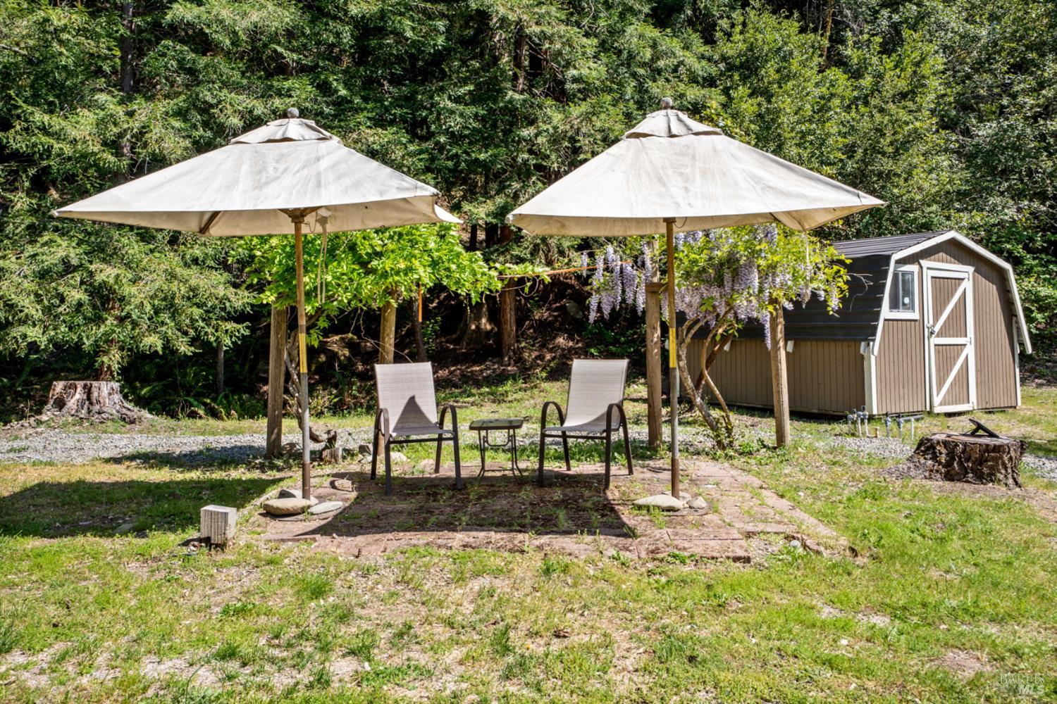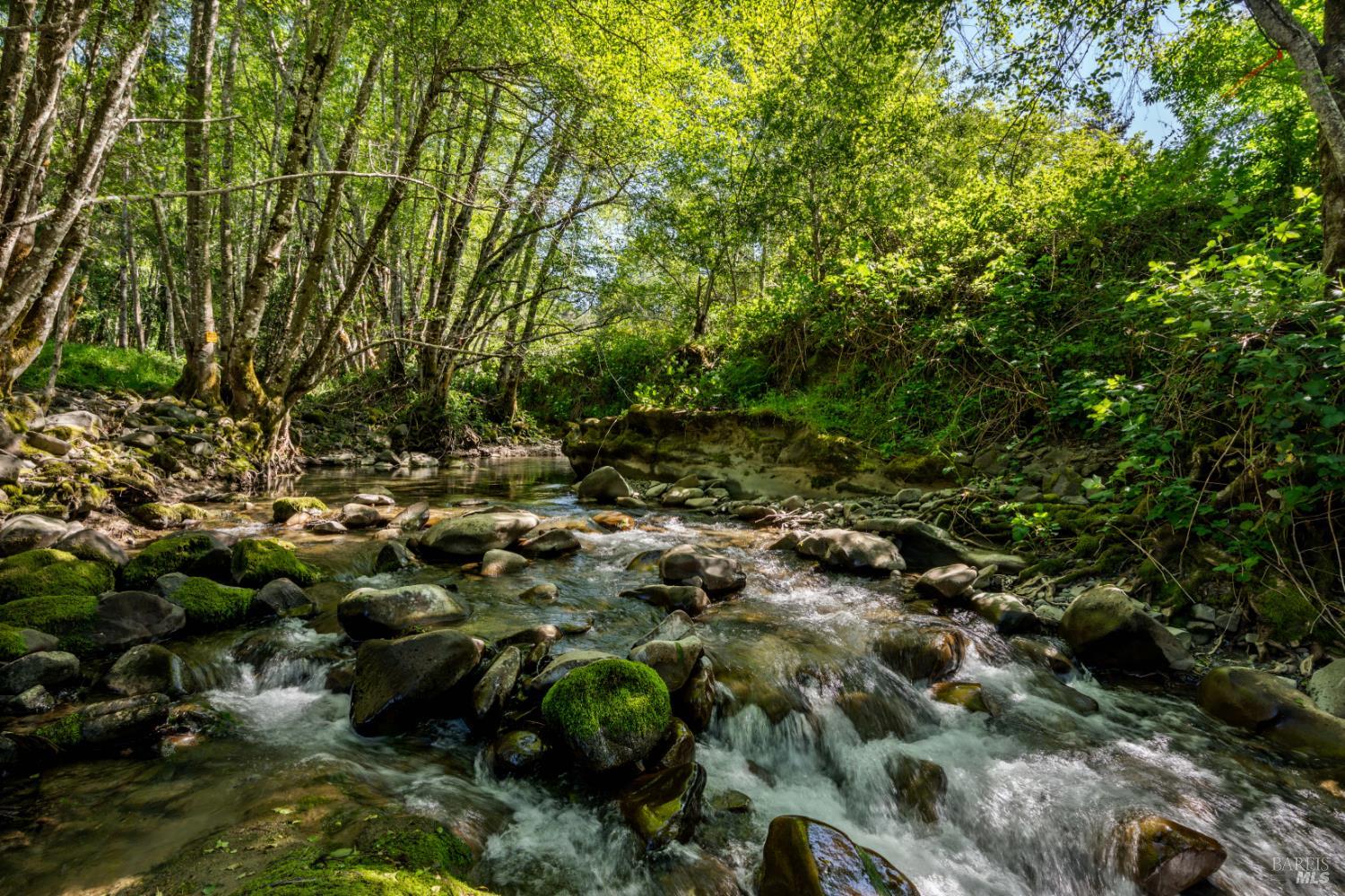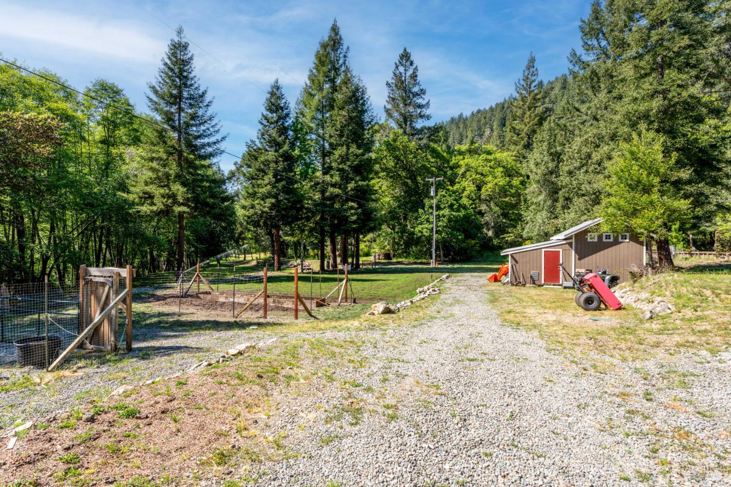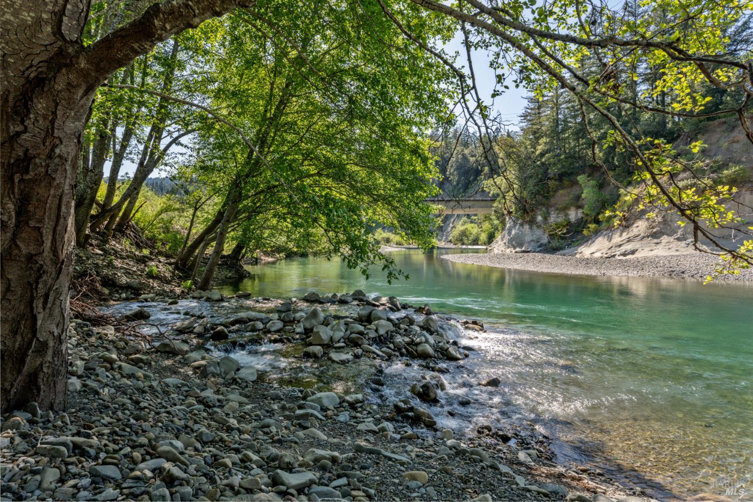Seldom does any waterfront property on the Eel River become available on the market that is this accessible and turn-key. This is a place which can be perfect for vacation rentals or a family compound amongst the majestic redwoods. Discover your private paradise on 4.92 flat, usable acres with direct beachfront access to the stunning Eel River. This exceptional gated property offers a serene escape, complete with a year-round creek that meanders through the land, creating a natural swimming hole and providing ample water with Riparian rights. The property features the main house which is an adorable A-Frame cabin, a cozy detached studio which can be perfect for guests or family and an additional unit that can be used as a game room or gym... the possibilities are endless. Enjoy the abundant space for gardening with established garden beds and room to expand. New water spigots and lines have been installed throughout the property, supported by two wells, 5,000 gallons of water storage, and an additional 2,000 gallons reserved for fire suppression, complete with a 2-inch hose connection. Enjoy peaceful walks along established trails beside the creek that flows directly into the river. Spend your days swimming, kayaking, or simply relaxing by the water. Make this your get-a-way!