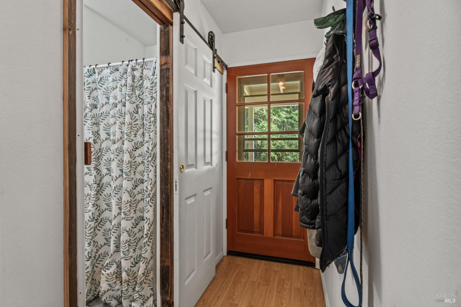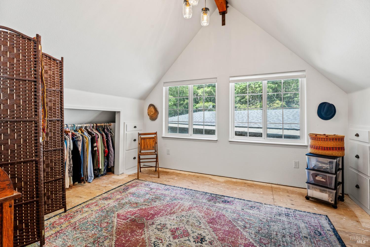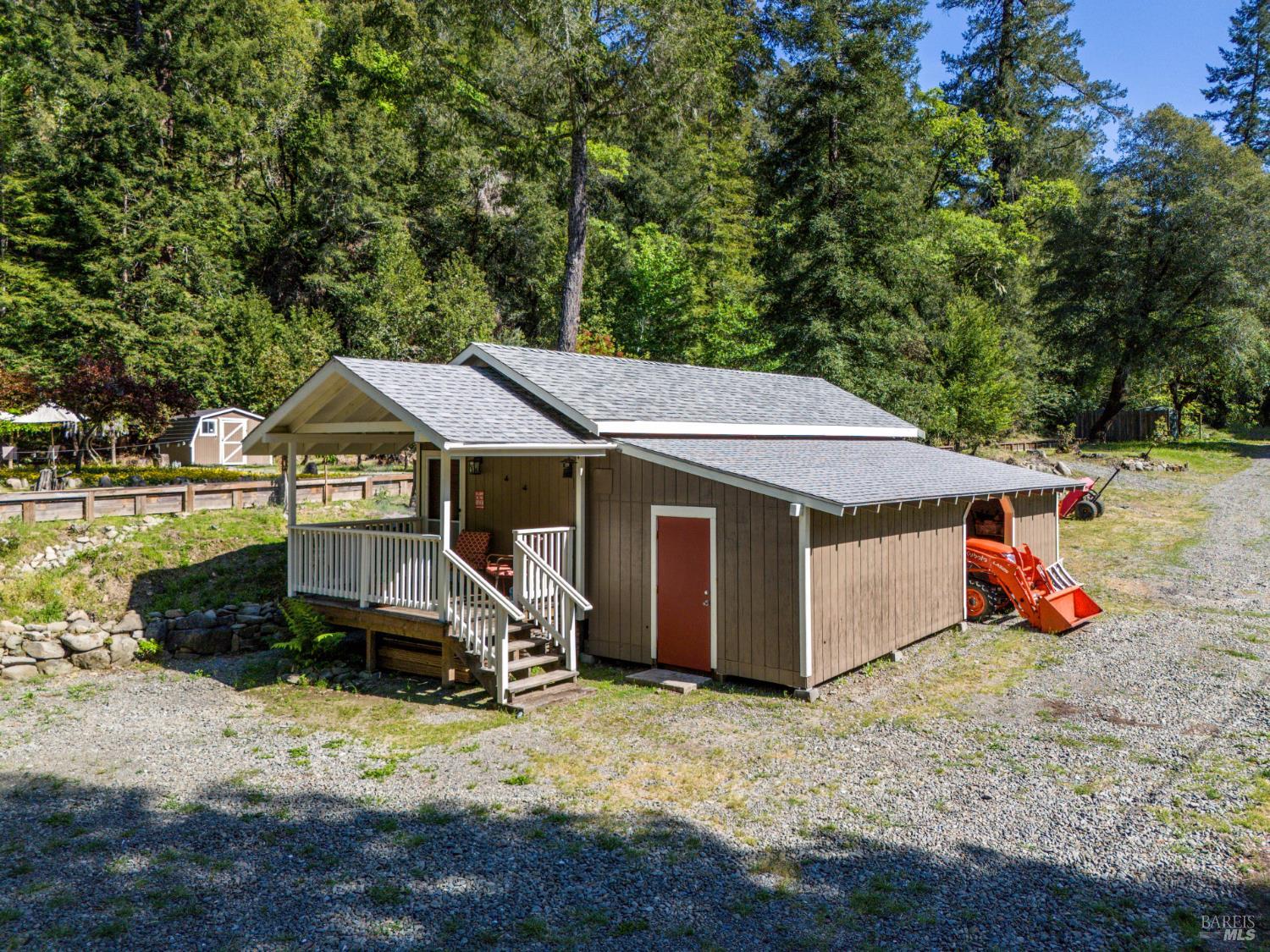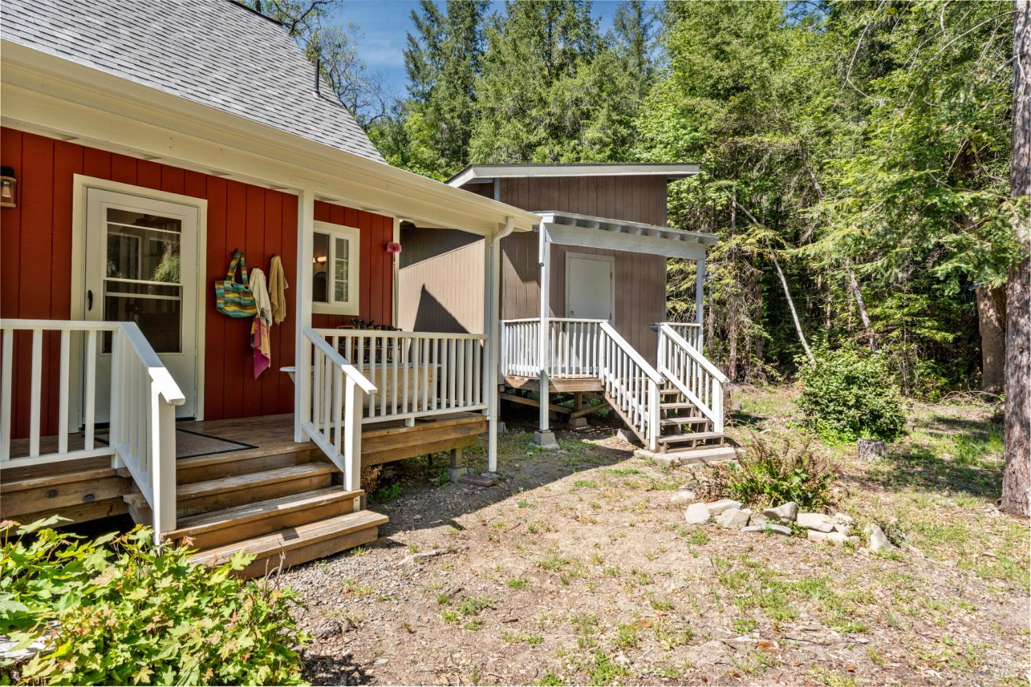 Seldom does any waterfront property on the Eel River become available on the market that is this accessible and turn-key. This is a place which can be perfect for vacation rentals or a family compound amongst the majestic redwoods. Discover your private paradise on 4.92 flat, usable acres with direct beachfront access to the stunning Eel River. This exceptional gated property offers a serene escape, complete with a year-round creek that meanders through the land, creating a natural swimming hole and providing ample water with Riparian rights. The property features the main house which is an adorable A-Frame cabin, a cozy detached studio which can be perfect for guests or family and an additional unit that can be used as a game room or gym... the possibilities are endless. Enjoy the abundant space for gardening with established garden beds and room to expand. New water spigots and lines have been installed throughout the property, supported by two wells, 5,000 gallons of water storage, and an additional 2,000 gallons reserved for fire suppression, complete with a 2-inch hose connection. Enjoy peaceful walks along established trails beside the creek that flows directly into the river. Spend your days swimming, kayaking, or simply relaxing by the water. Make this your get-a-way!
