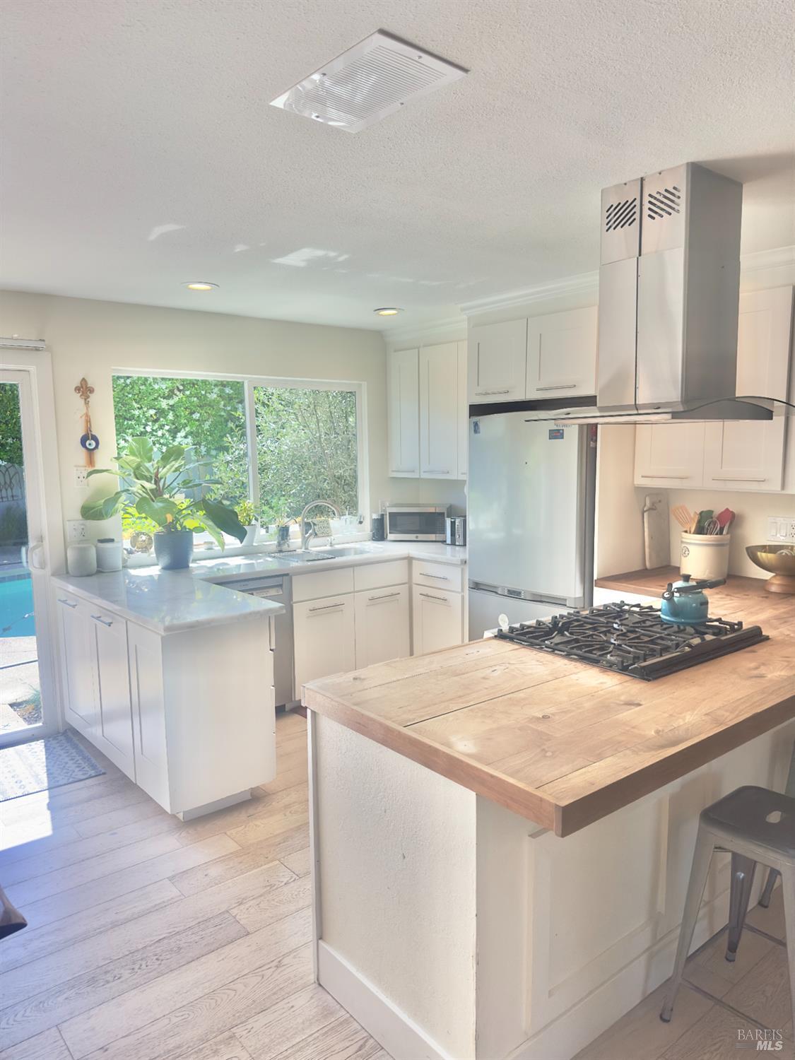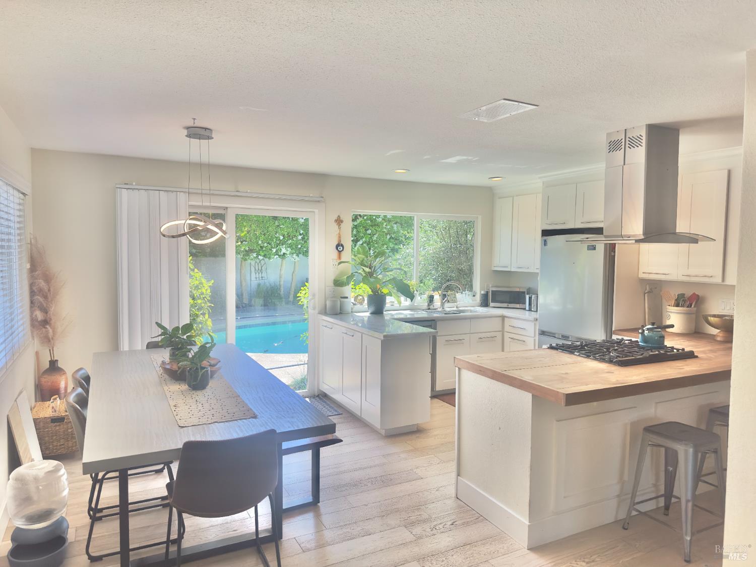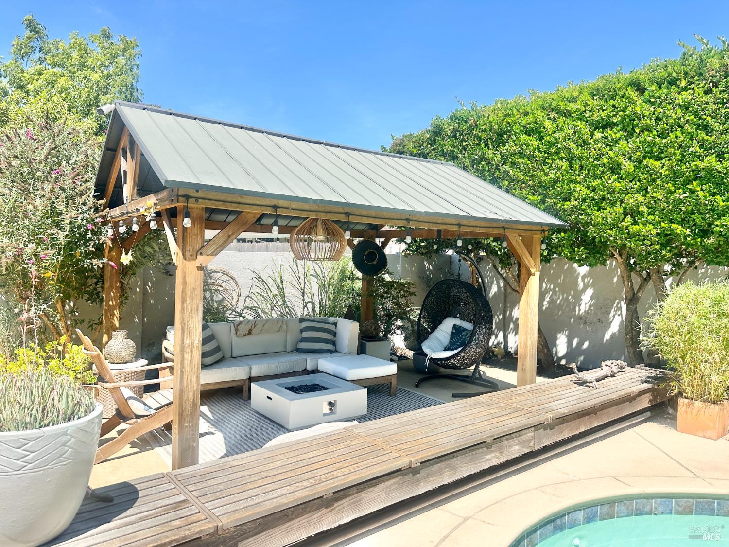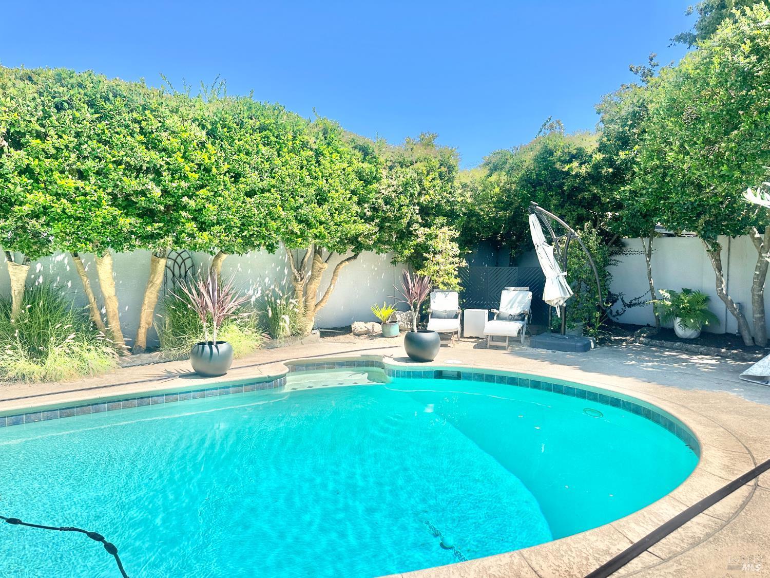 Fully renovated in 2020, this beautifully furnished three-bedroom, two-bath home blends modern comfort with timeless style. The interiors feature engineered oak wood floors throughout, kitchen with quartz and butcher block counters, and stainless steel appliances. The primary suite includes a luxurious ensuite with a soaking tub and elegant tile finishes, while the second bathroom offers a walk-in tile shower with a glass surround. Step outside to a spacious backyard oasis with a sparkling pool, charming gazebo, cozy fire pit, and BBQ, perfect for entertaining or relaxing. The property has a fenced front yard with abundant flowers, a nectarine and lemon tree, providing fresh, seasonal fruit. Move-in ready and fully equipped, this home offers both convenience and lifestyle. Available unfurnished and without utilities at a lesser rate. Two off-street parking spaces, no garage. Storage shed available.