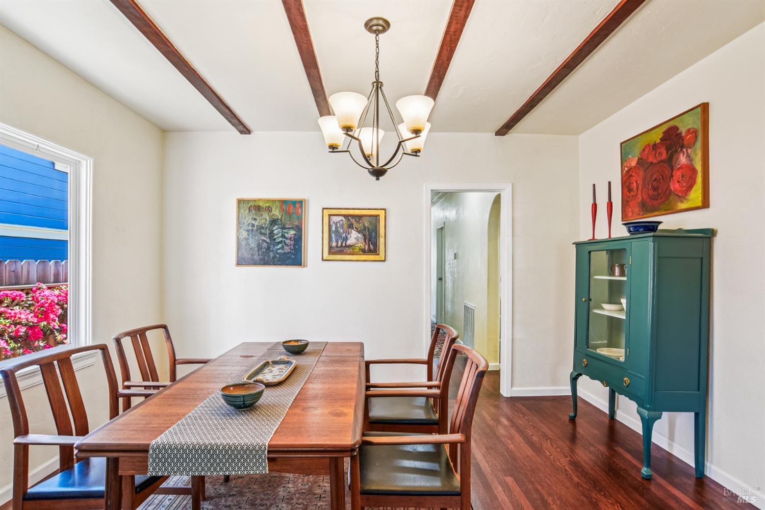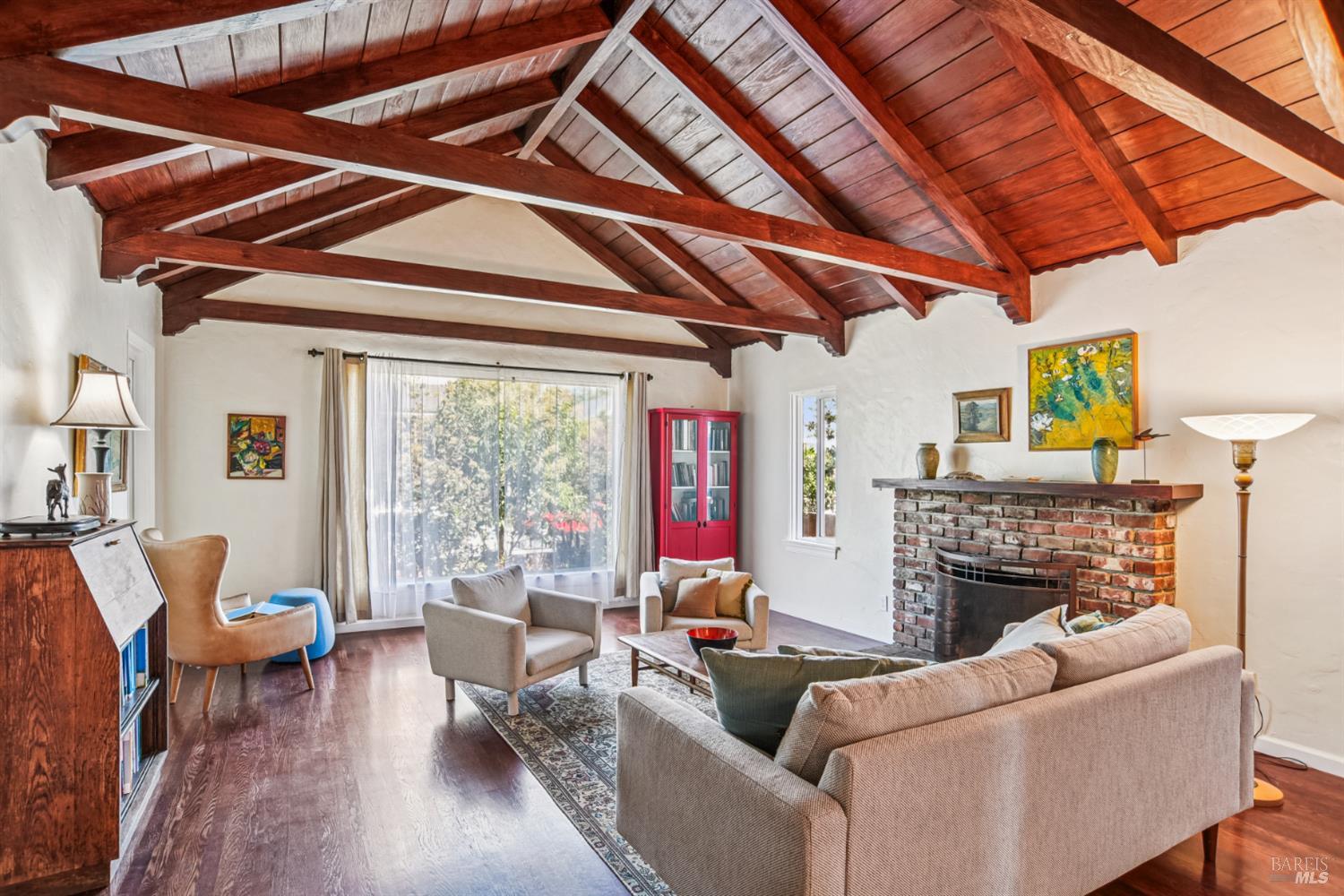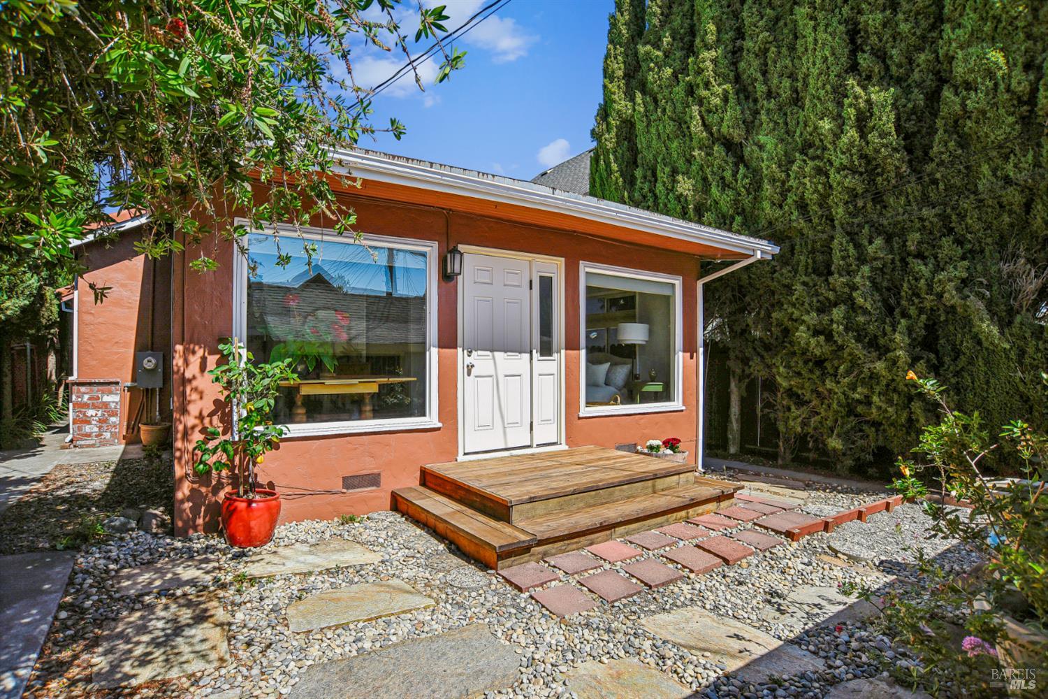 1936 Charmer in the Heritage District. Nestled on a block of Victorians, this Spanish Revival home stands apart. One‑level living with a detached garage and alley access gives it both character and convenience. Step through the graceful portico into the large living room, illuminated by natural light and defined by a vaulted ceiling with exposed beams. Refinished hardwood floors lead you through to a charming dining area and updated kitchen. Modern comforts include a heat/cool pump, updated electrical panel, contemporary lighting, and more. The master bedroom opens directly onto a private patio - an ideal spot for morning coffee or quiet contemplation. With a private backyard, carport, and workshop in the garage, this home is full of personality, thoughtful updates, and space to enjoy.