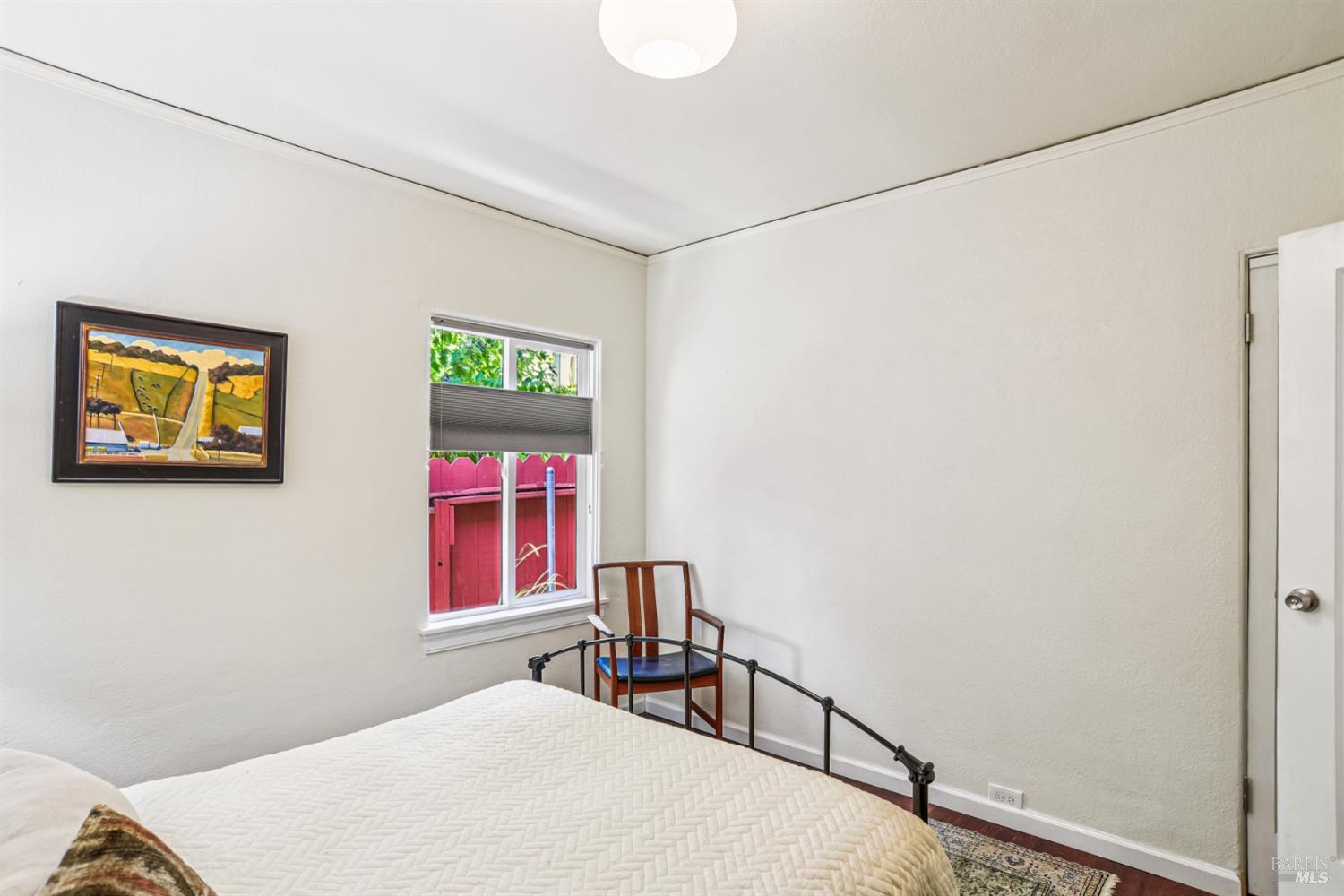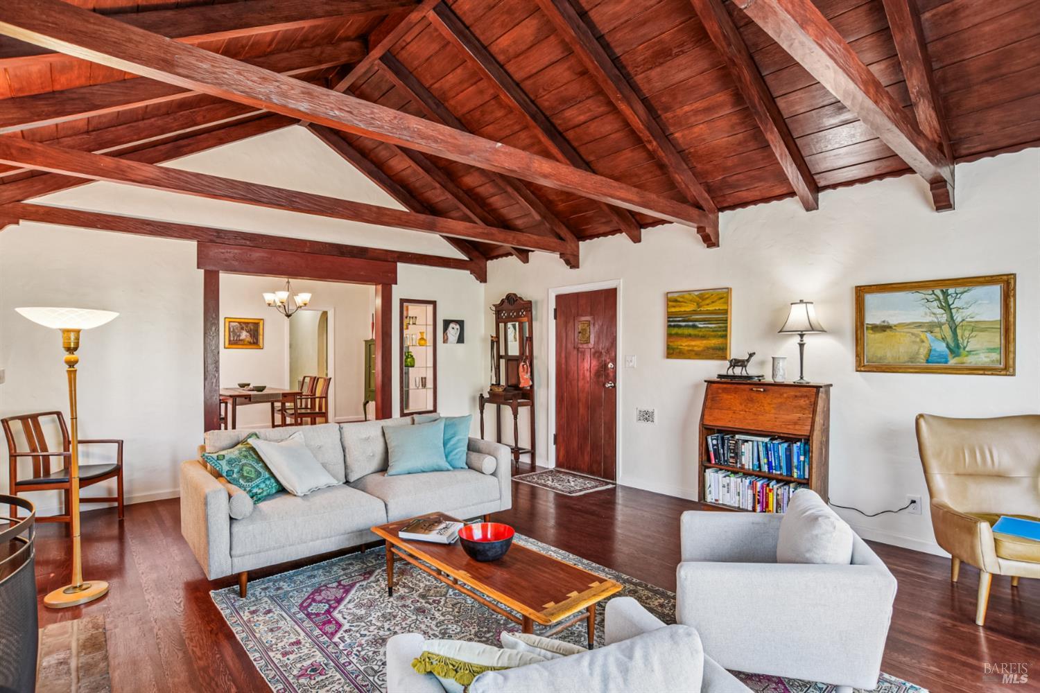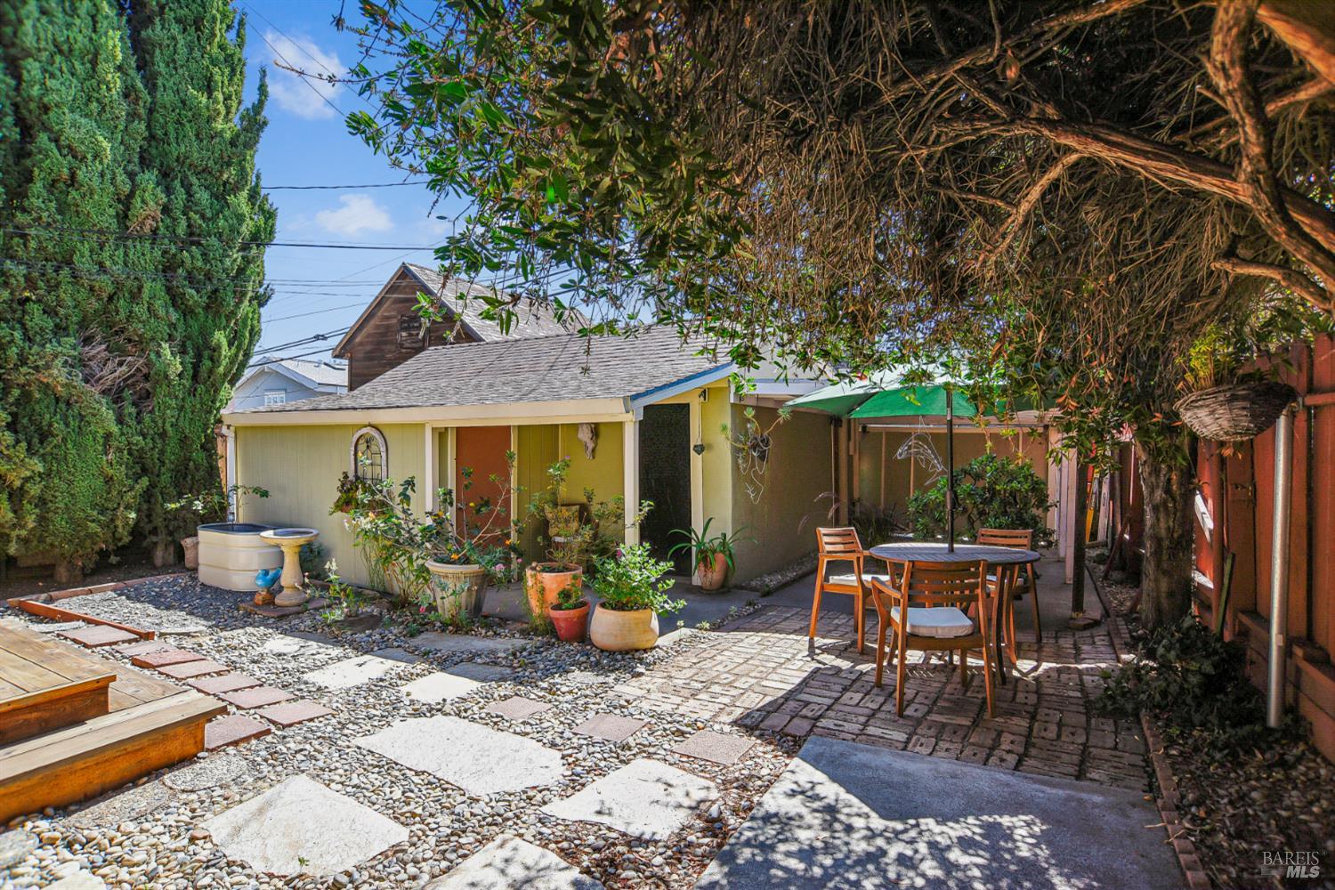 1936 Charmer in the Heritage District. Nestled on a block of Victorians, this Spanish Revival home stands apart. One‑level living with a detached garage and alley access gives it both character and convenience. Step through the graceful portico into the large living room, illuminated by natural light and defined by a vaulted ceiling with exposed beams. Refinished hardwood floors lead you through to a charming dining area and updated kitchen. Modern comforts include a heat/cool pump, updated electrical panel, contemporary lighting, and more. The master bedroom opens directly onto a private patio - an ideal spot for morning coffee or quiet contemplation. With a private backyard, carport, and workshop in the garage, this home is full of personality, thoughtful updates, and space to enjoy.
