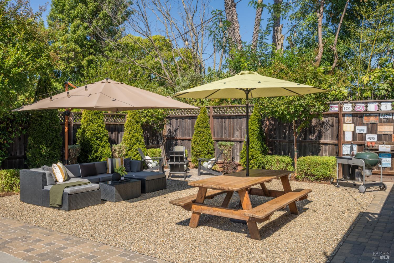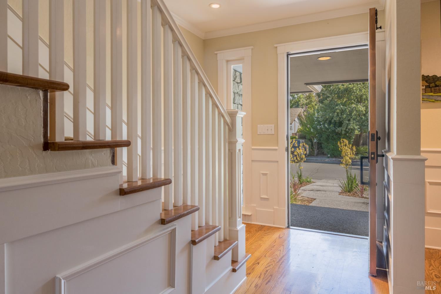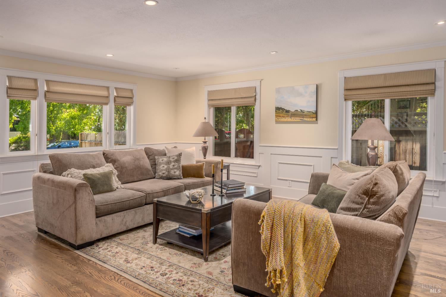 Located on Sonoma's east side just blocks from the Plaza, 775 4th Street East blends Craftsman character with modern updates. The 4-bedroom, 3-bathroom home features a formal dining room, spacious living areas, and a chef's kitchen with custom cabinetry and a vintage O'Keefe & Merritt stove. Quality details include hardwood floors, wainscoting, recessed lighting on Lutron dimmers, Emtek hardware, and a stone fireplace. Upstairs, large bedrooms with dormers and ample closets provide private retreats, while a main-level guest suite adds flexibility. Outdoors, the backyard is designed for entertaining with a half-court sport court and professionally landscaped gardens with programmable Luxor lighting. Additional highlights include central heat and air, a two-car garage, and proximity to schools, parks, and world-class dining.