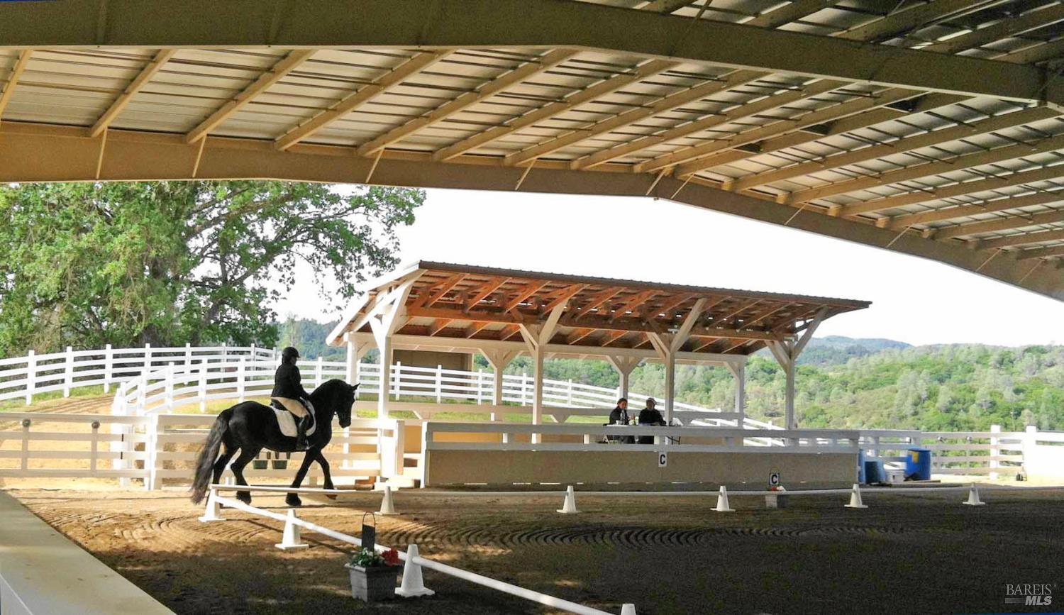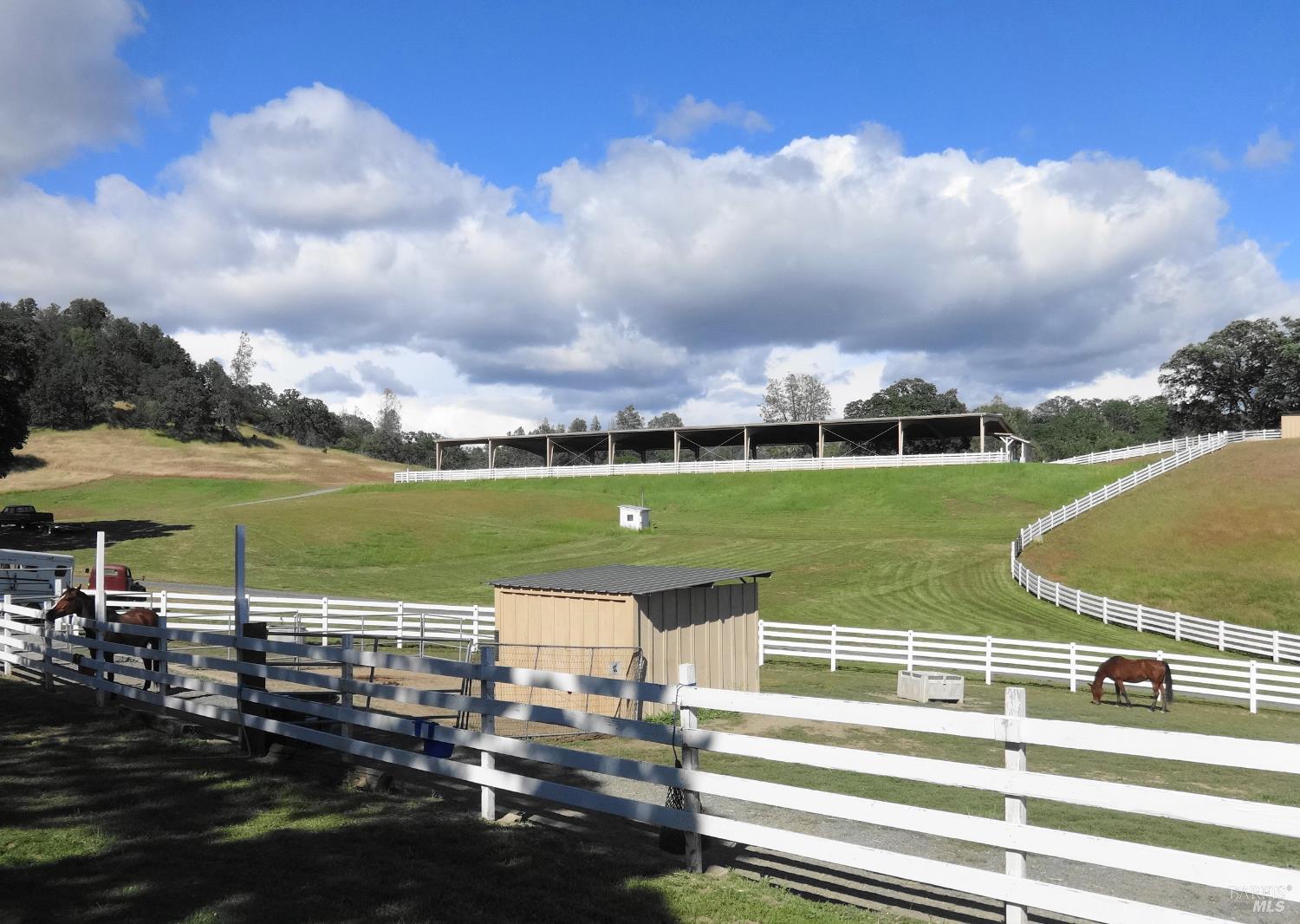 Welcome to 8900 Wight Way, a rare equestrian retreat for horse lovers, ranchers, and country living enthusiasts. Set on expansive acreage with multiple wells, pastures, and arenas, this property blends functional infrastructure with event-ready amenities. The 3-bedroom, 2-bath main home features a fenced yard, updated deck with storage, large washer/dryer for horse blankets, heat pump, mini splits, and durable metal roof. Equestrian facilities include a covered 100x235 Olympic arena with LED lighting, sound/judging system, spectator booths, septic hookup, and stunning views, plus a 40x80 open arena, gravel pad for 80 ft round pens, miles of trails, and up to 14 paddocks with water access. A wood barn offers stalls, birthing/recovery stalls, tack areas, wash rack, hay storage, and comfort flooring. A 50x70 shop (2023) with solar capability, LED lighting, roll-up doors, chain hoist, and 50/30-amp service supports ranch operations. Additional highlights: smokehouse, butcher shop with bath, year-round pond, leach fields, 4-rail fencing, multiple gated entrances, and ample parking. Ideal for horses, cattle, 4-H, or Dressage events, it includes a 1949 tractor, Solectrac PF4000 with attachments, and Cavaletti training equipment. With Adobe Creek Reservoir nearby, this is it!
