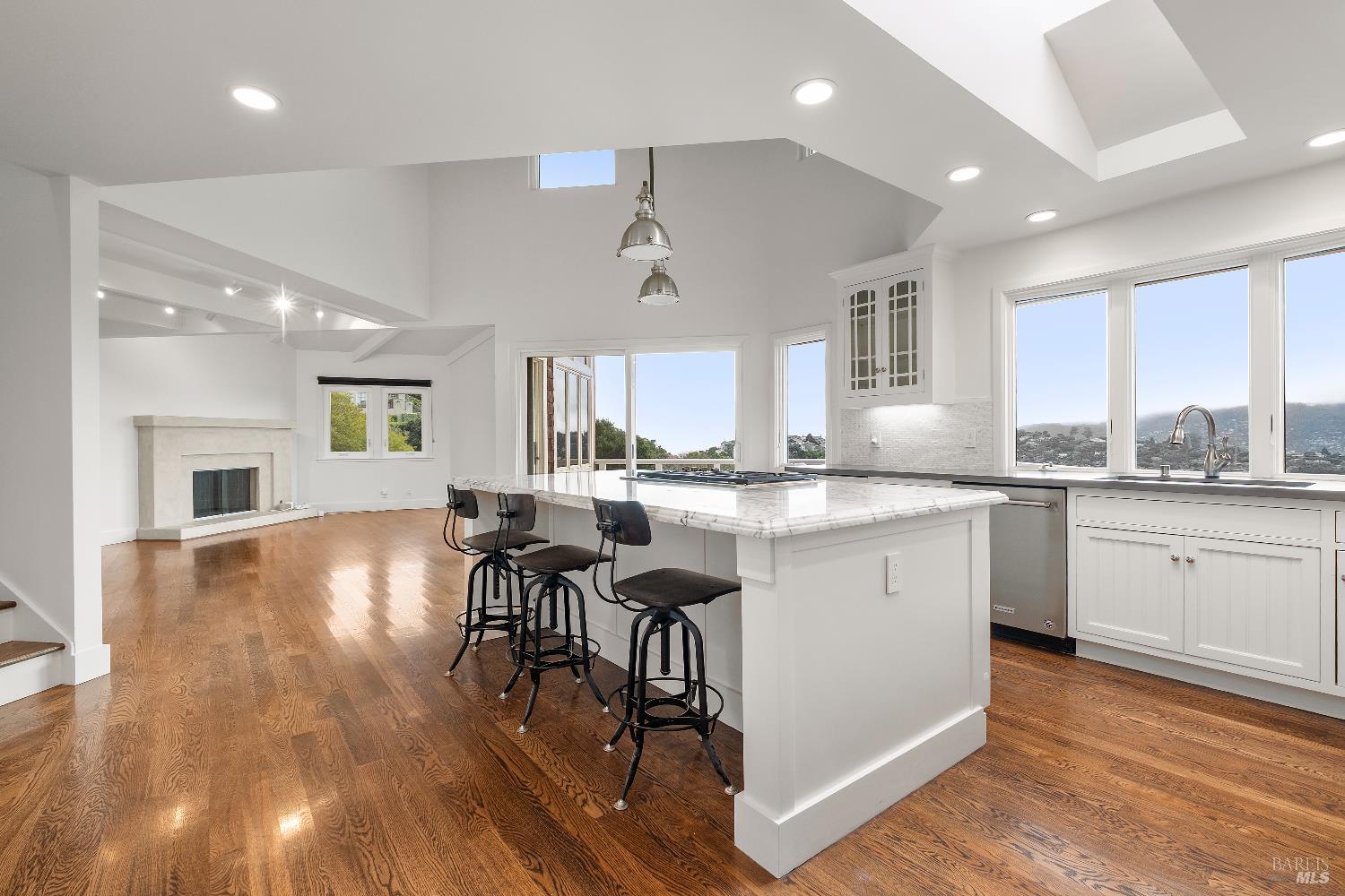 Welcome to a residence where timeless elegance meets modern luxury. This 5-bedroom, 4-bath estate showcases a multi-level floor plan designed to capture light, space, and sweeping bay vistas and glimpses of the GGB. On the entry level, a chef's kitchen awaits, featuring a generous island, gas cooktop, wine cooler, double wall ovens, and a Dacor drawer microwaveall framed by gorgeous bay views. The kitchen flows seamlessly into expansive living and family rooms, perfect for entertaining. A guest suite and full bathroom add comfort and convenience. Upstairs, a sunlit retreat offers the ideal setting for a private office. The lower level unveils the crown jewel: a newly renovated primary suite with a retractable ceiling screen that transforms the room into a private theater. The spa-inspired bath includes a freestanding soaking tub, glass-enclosed shower, dual vanities, and a washlet toilet. Another full bath on this level also features dual vanities and a washlet toilet. Two additional bedrooms and a laundry room complete the floor. Step outside to resort-style living with a brand-new lap pool framed by panoramic vistas. A newly built ADU with 2 bedrooms, 2 bathrooms, full kitchen, dining/living area, and washer/dryer room is also available at an additional cost.