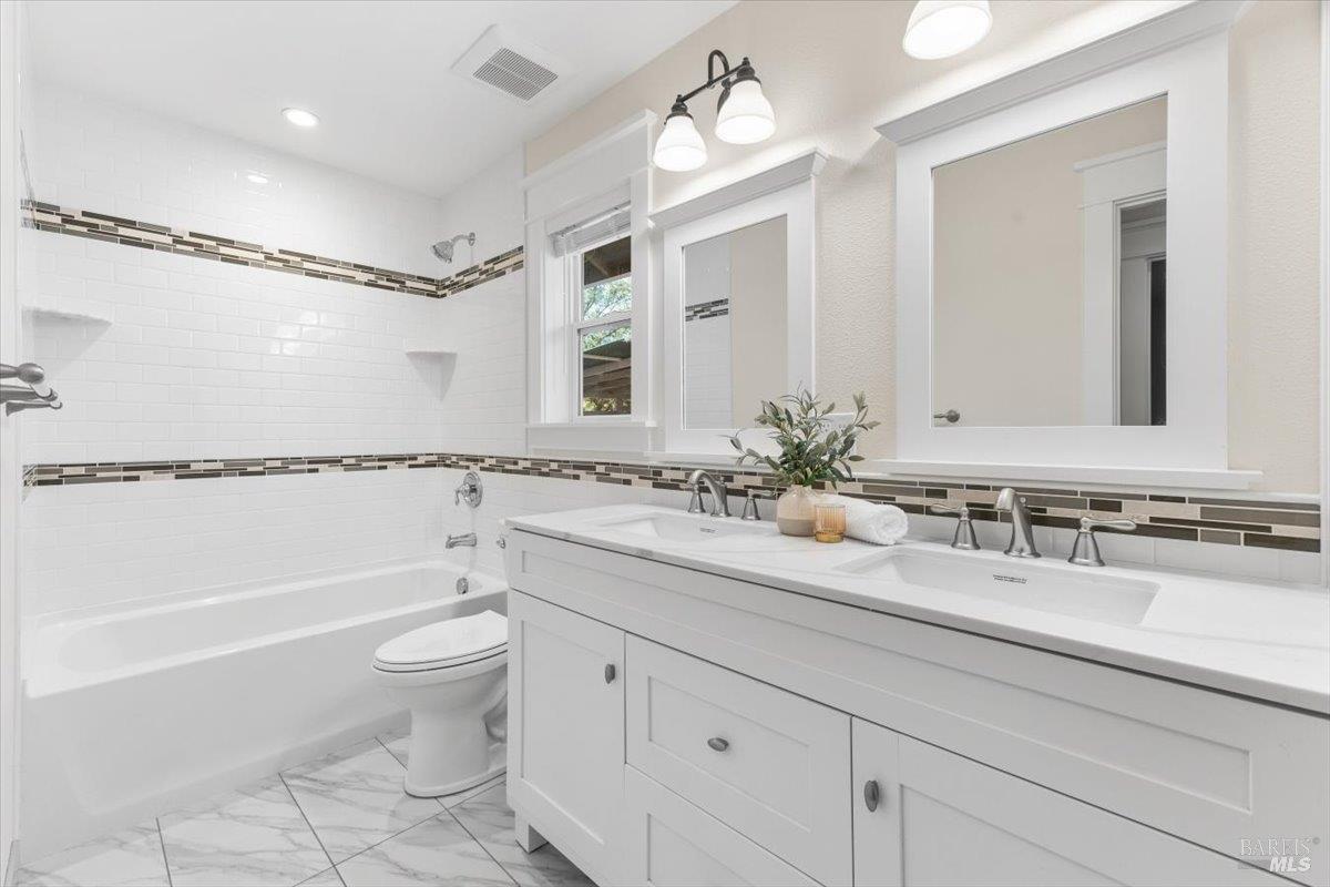 Updated mid-century style home. Beautifully remodeled home boasts four spacious bedrooms and 2.75 bathrooms, 2354 sq ft, perfect for families. The main home was an original 1922 built 2 bedrooms with walk in closets, 1.75 baths with updates done in late 2023, large living room with hardwood floors, lounge style window seats along with dual pane windows, Formal dining room, spacious laundry room with guest bath updated. Huge Kitchen with gas stove and updated Corian counters and some cabinets. The 2 bedrooms with walk in closets, and spacious bath, family room and 2 car garage completed construction in late Dec 2023. Quick access to freeways, shops and restaurants' while you enjoy the tranquility of country living alongside all the amenities of city life with your own water (on well) and city sewer. A separate ADU unit with separate entrance and fenced yard offers excellent potential for generating rental income or providing extra space for family members or guests. The expansive backyard is blank canvas for your dreams grow vegetables, raise chickens, or landscape to your heart's desire. Roof on left side of house 10 yrs old. The right-side addition and roof are one year old, along with new heat pump and A/C unit and dual pane windows added throughout home in 2023.