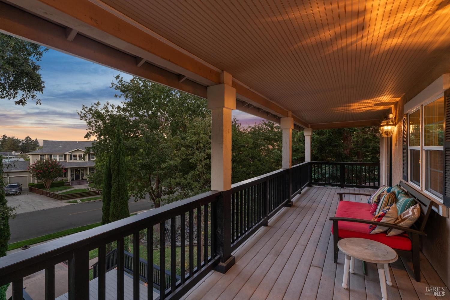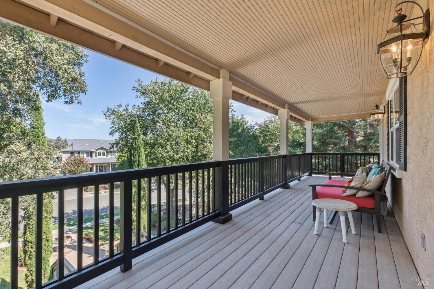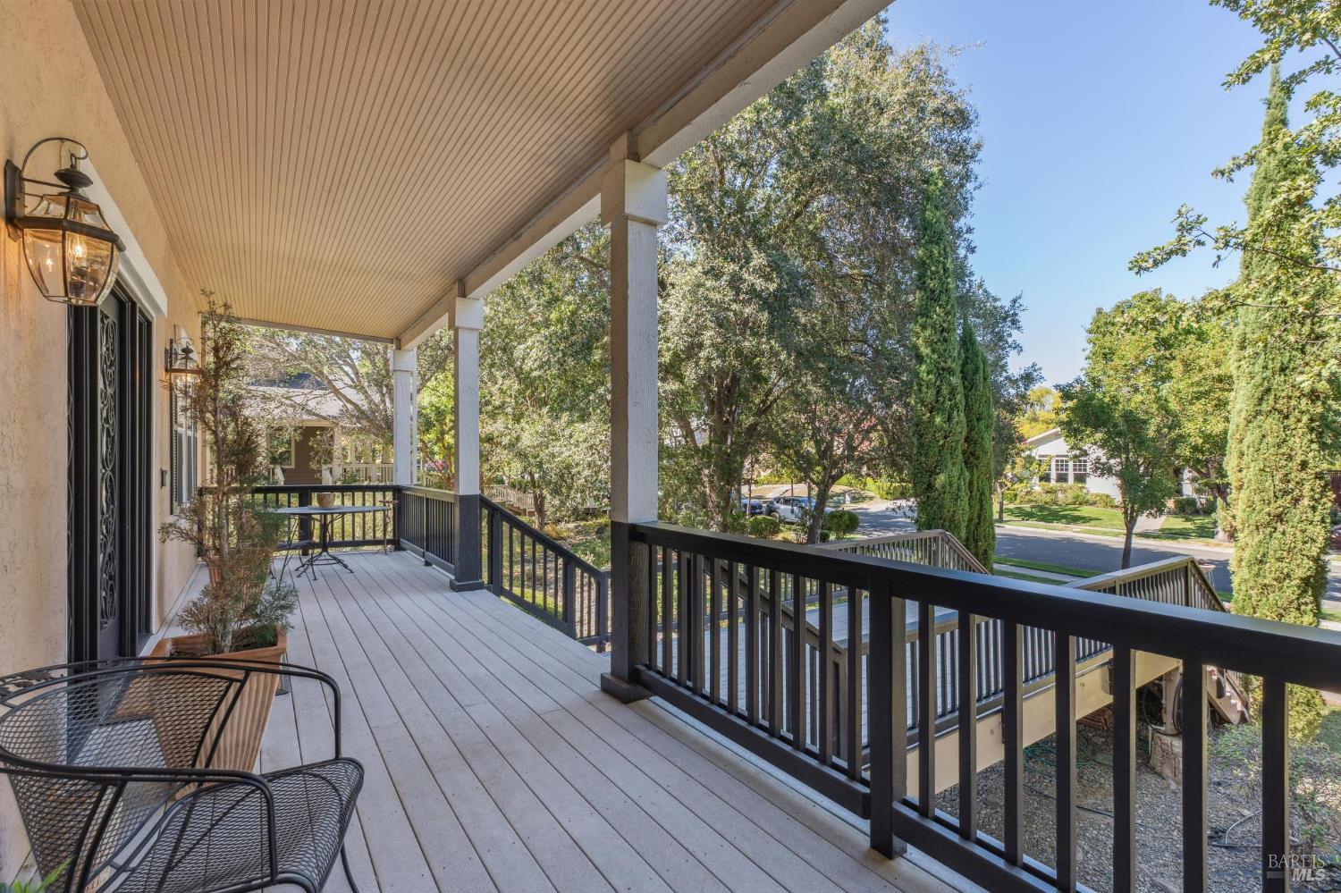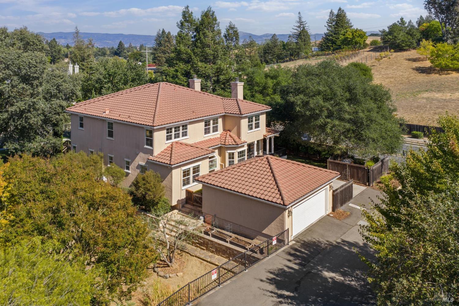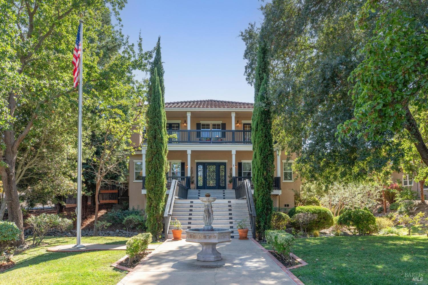 Located in desirable Browns Valley minutes to downtown Napa in an enclave of semi-custom homes, this bespoke home offers a fantastic floor plan designed with entertaining and relaxation in mind. Great room style living features gourmet kitchen with stunning quartzite countertops, center island with counter seating, stainless KitchenAid appliances & Wine Enthusiast wine refrigerator, walk-in pantry, wine cellar & informal dining area with bay window that showcases the abundance of natural light. Family room with beautiful hardwood flooring & gas fireplace offers French doors that open to private outdoor entertaining area with built-in BBQ & views of the verdant grounds. This 4 BDR 3.5 BA well-built home features 2 ensuite BDRs with one on main level. Spacious & luxurious main ensuite offers 2 walk-in closets & spa-like bath with marble flooring & French doors that open to balcony with seating area & views of hot air balloons & hills. Loft currently used as office also features French doors that open to expansive balcony. Living rm with gas fireplace & dining rm both feature views of the beautiful grounds. Tankless water heater, central air & heat, dual pane windows & doors, detached 2 car garage with built-in cabinetry, garden beds & 2 natural water features (seasonal creeks)!