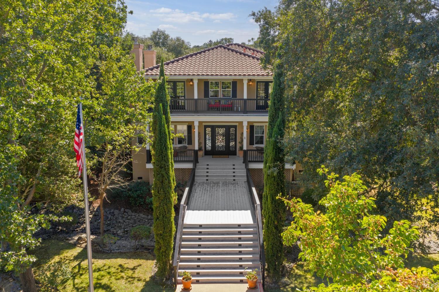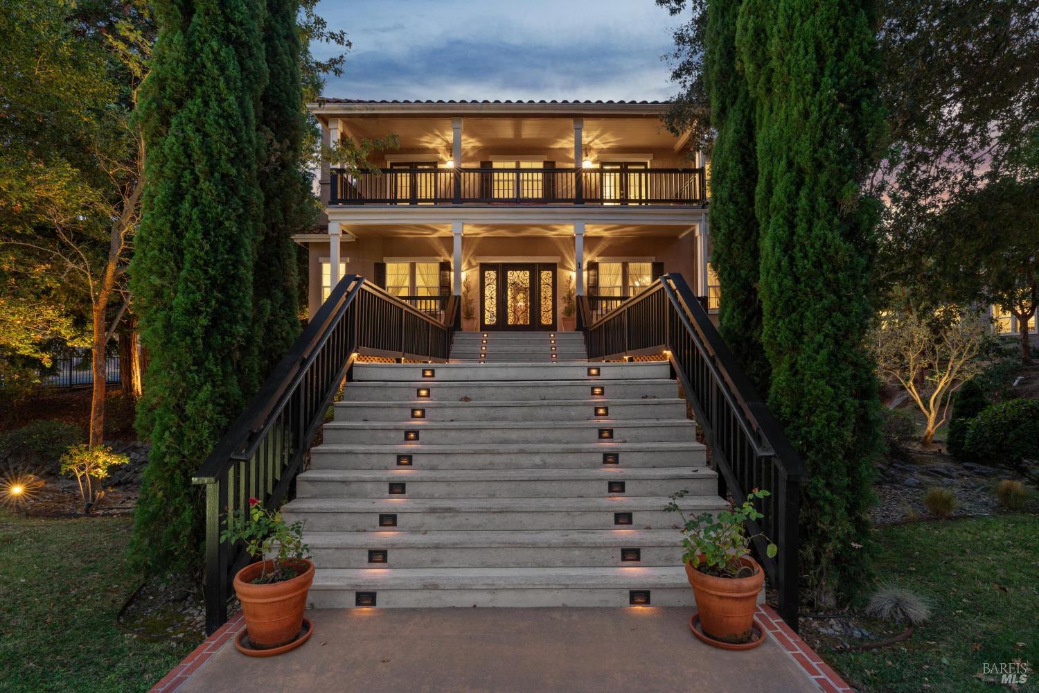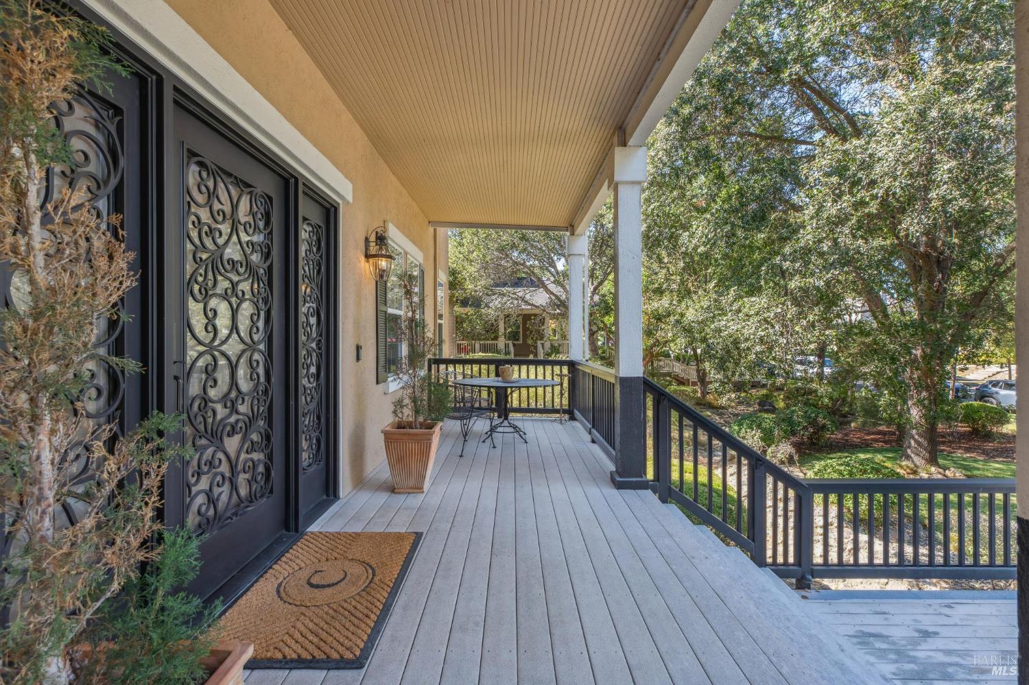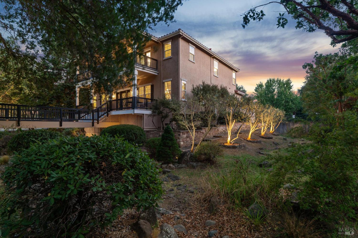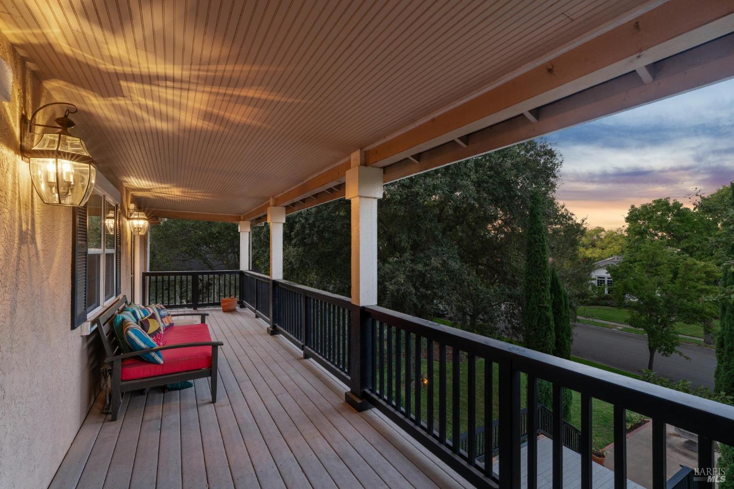 Located in desirable Browns Valley minutes to downtown Napa in an enclave of semi-custom homes, this bespoke home offers a fantastic floor plan designed with entertaining and relaxation in mind. Great room style living features gourmet kitchen with stunning quartzite countertops, center island with counter seating, stainless KitchenAid appliances & Wine Enthusiast wine refrigerator, walk-in pantry, wine cellar & informal dining area with bay window that showcases the abundance of natural light. Family room with beautiful hardwood flooring & gas fireplace offers French doors that open to private outdoor entertaining area with built-in BBQ & views of the verdant grounds. This 4 BDR 3.5 BA well-built home features 2 ensuite BDRs with one on main level. Spacious & luxurious main ensuite offers 2 walk-in closets & spa-like bath with marble flooring & French doors that open to balcony with seating area & views of hot air balloons & hills. Loft currently used as office also features French doors that open to expansive balcony. Living rm with gas fireplace & dining rm both feature views of the beautiful grounds. Tankless water heater, central air & heat, dual pane windows & doors, detached 2 car garage with built-in cabinetry, garden beds & 2 natural water features (seasonal creeks)!