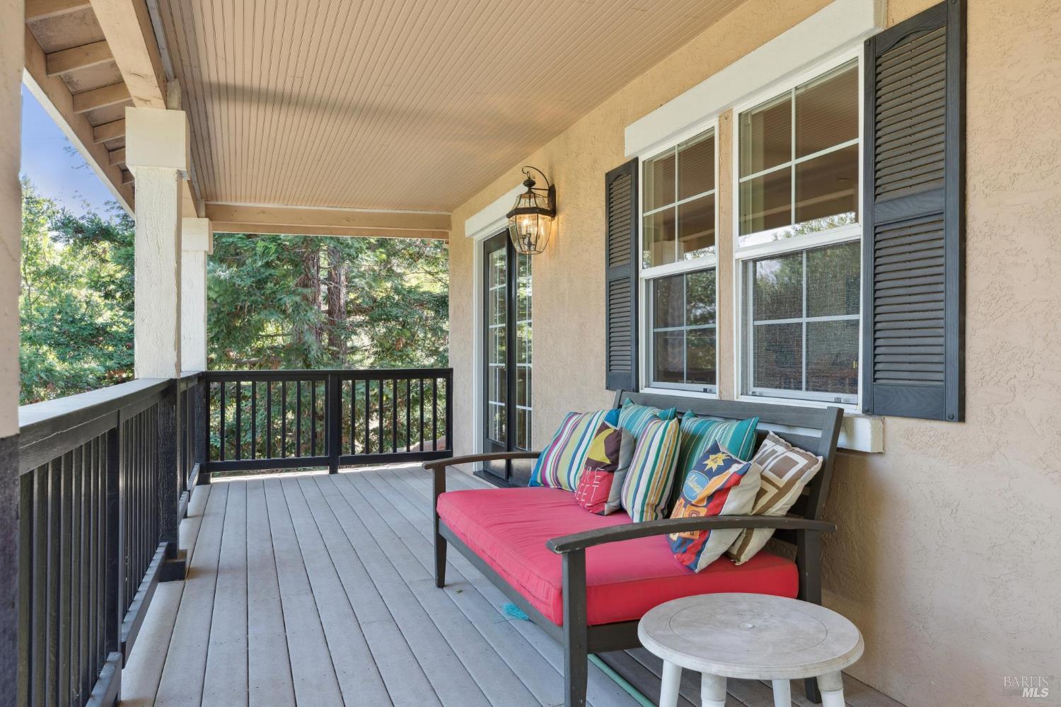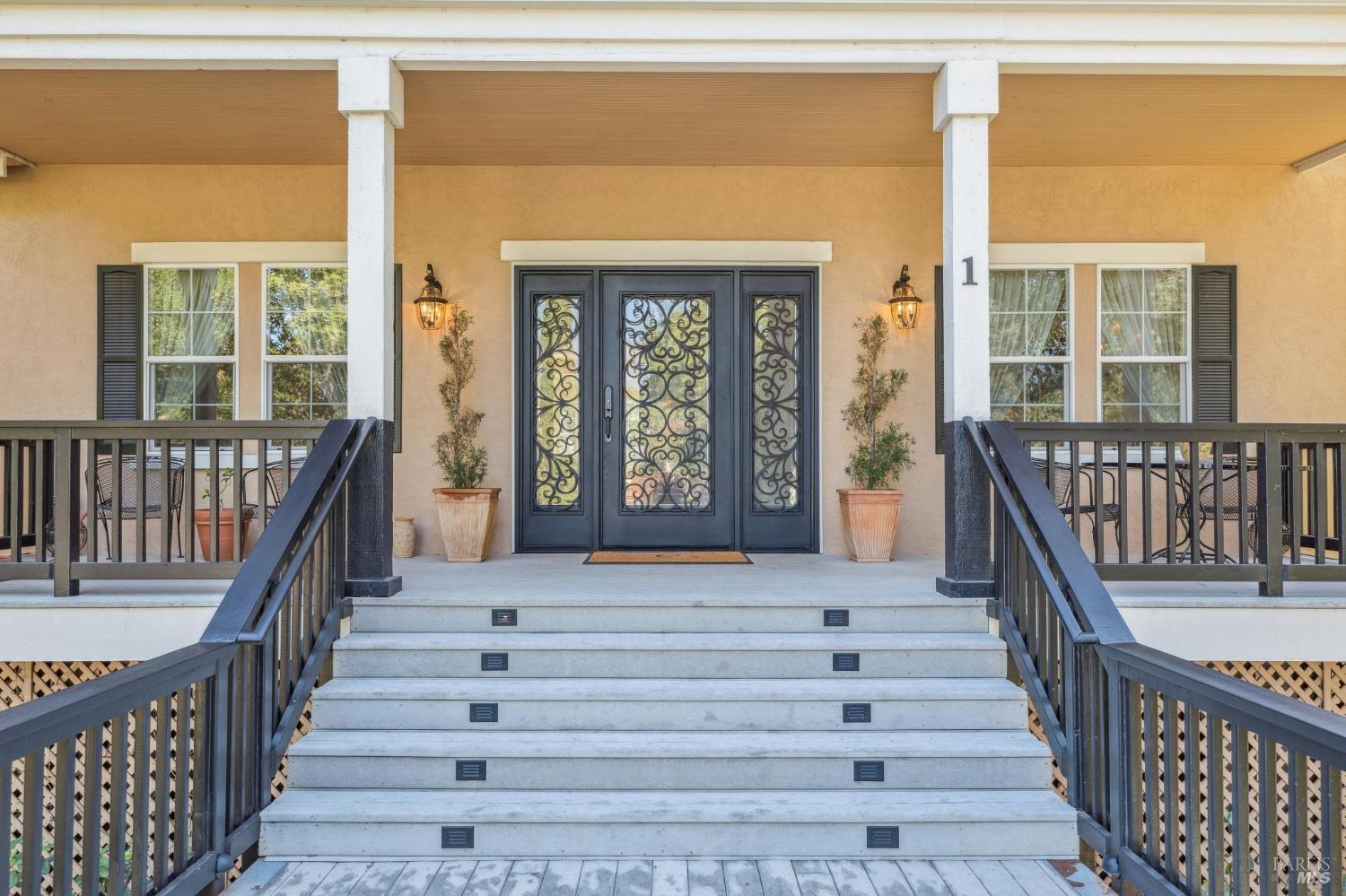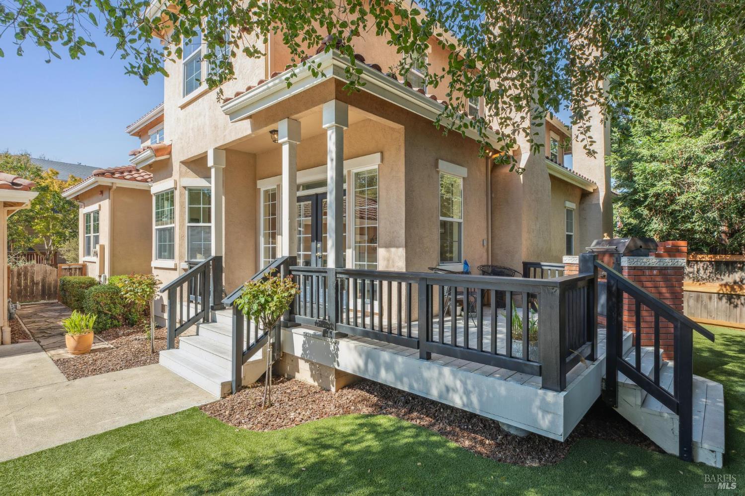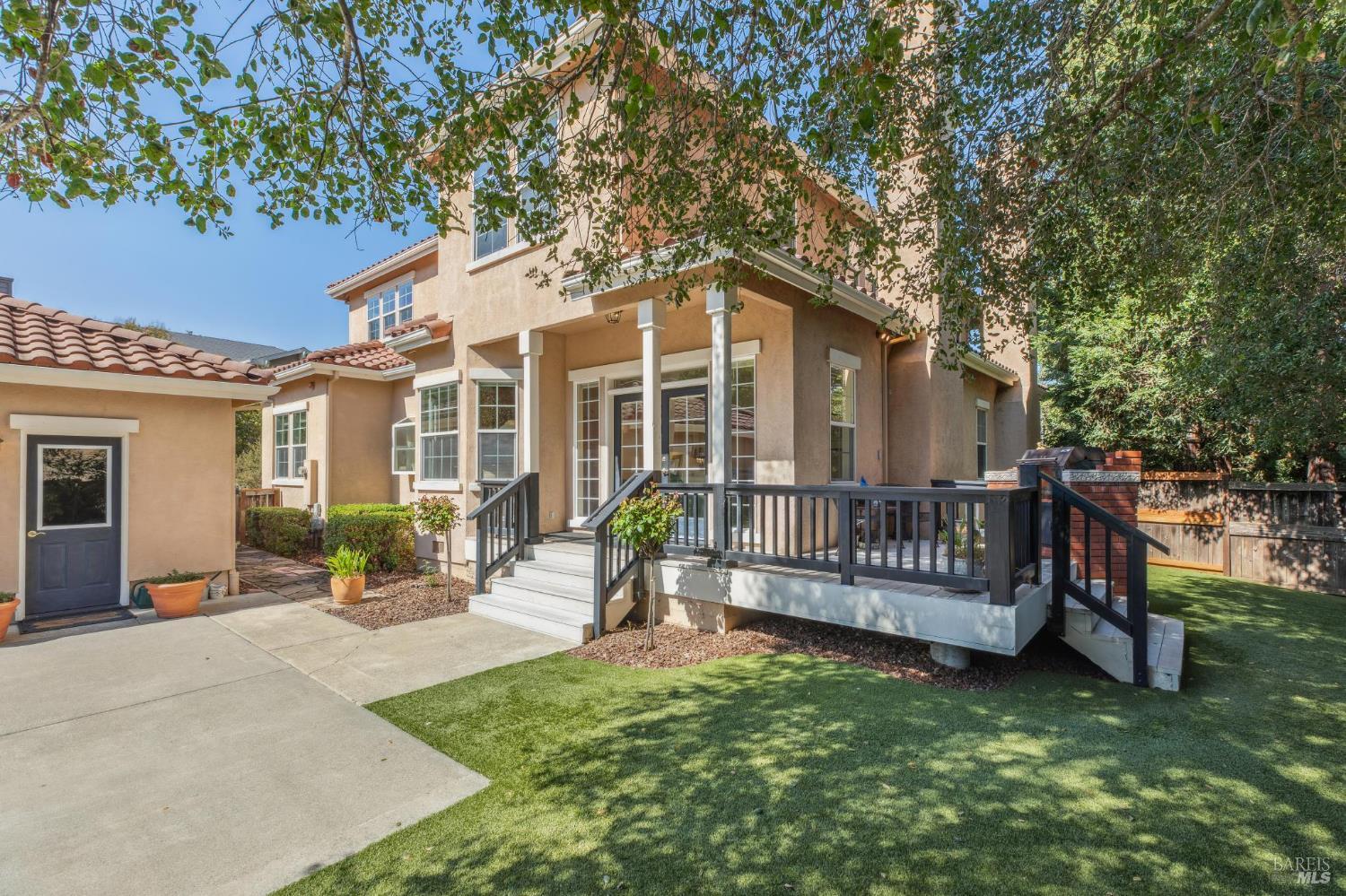 Located in desirable Browns Valley minutes to downtown Napa in an enclave of semi-custom homes, this bespoke home offers a fantastic floor plan designed with entertaining and relaxation in mind. Great room style living features gourmet kitchen with stunning quartzite countertops, center island with counter seating, stainless KitchenAid appliances & Wine Enthusiast wine refrigerator, walk-in pantry, wine cellar & informal dining area with bay window that showcases the abundance of natural light. Family room with beautiful hardwood flooring & gas fireplace offers French doors that open to private outdoor entertaining area with built-in BBQ & views of the verdant grounds. This 4 BDR 3.5 BA well-built home features 2 ensuite BDRs with one on main level. Spacious & luxurious main ensuite offers 2 walk-in closets & spa-like bath with marble flooring & French doors that open to balcony with seating area & views of hot air balloons & hills. Loft currently used as office also features French doors that open to expansive balcony. Living rm with gas fireplace & dining rm both feature views of the beautiful grounds. Tankless water heater, central air & heat, dual pane windows & doors, detached 2 car garage with built-in cabinetry, garden beds & 2 natural water features (seasonal creeks)!