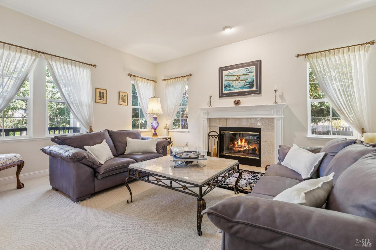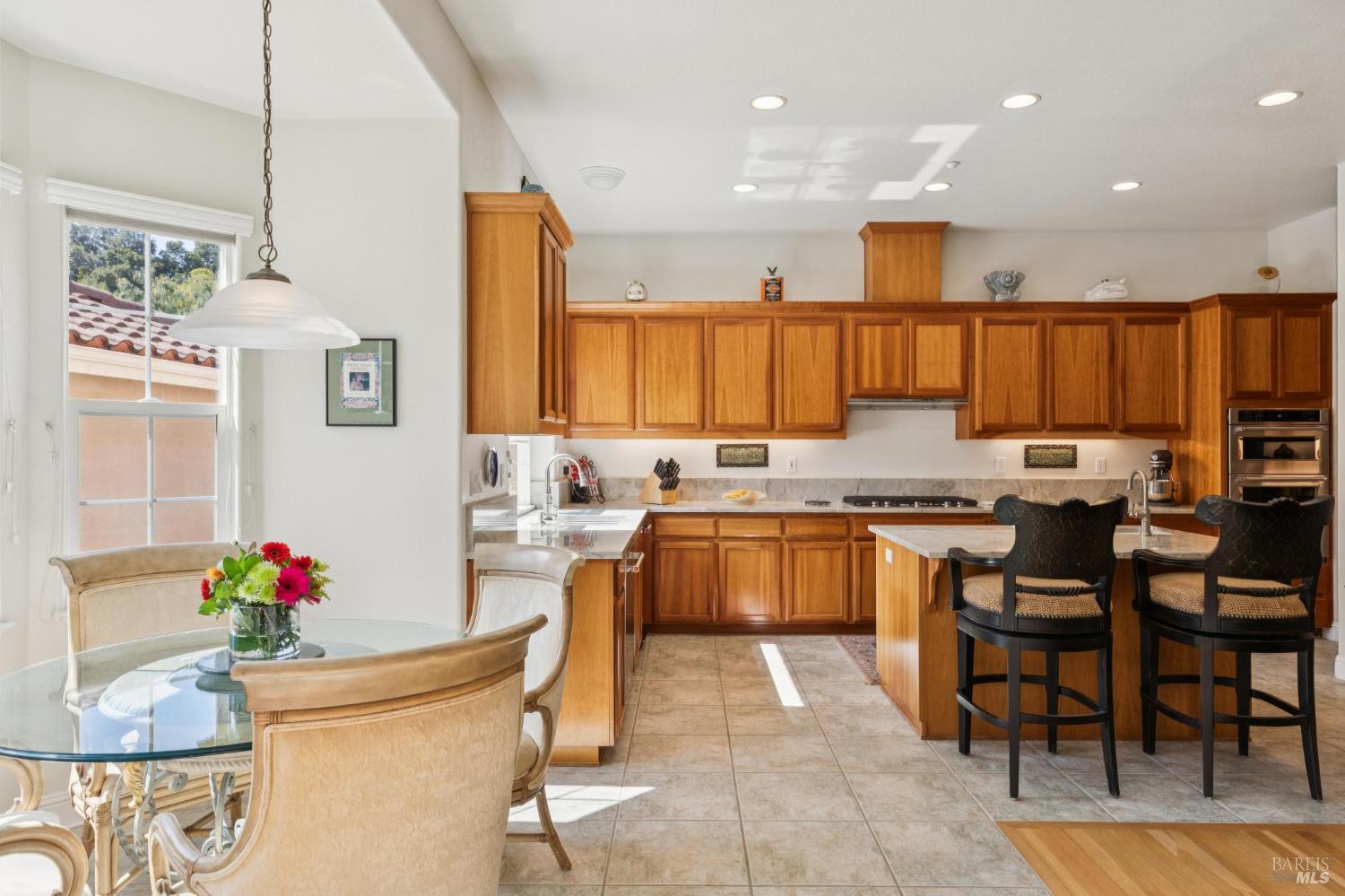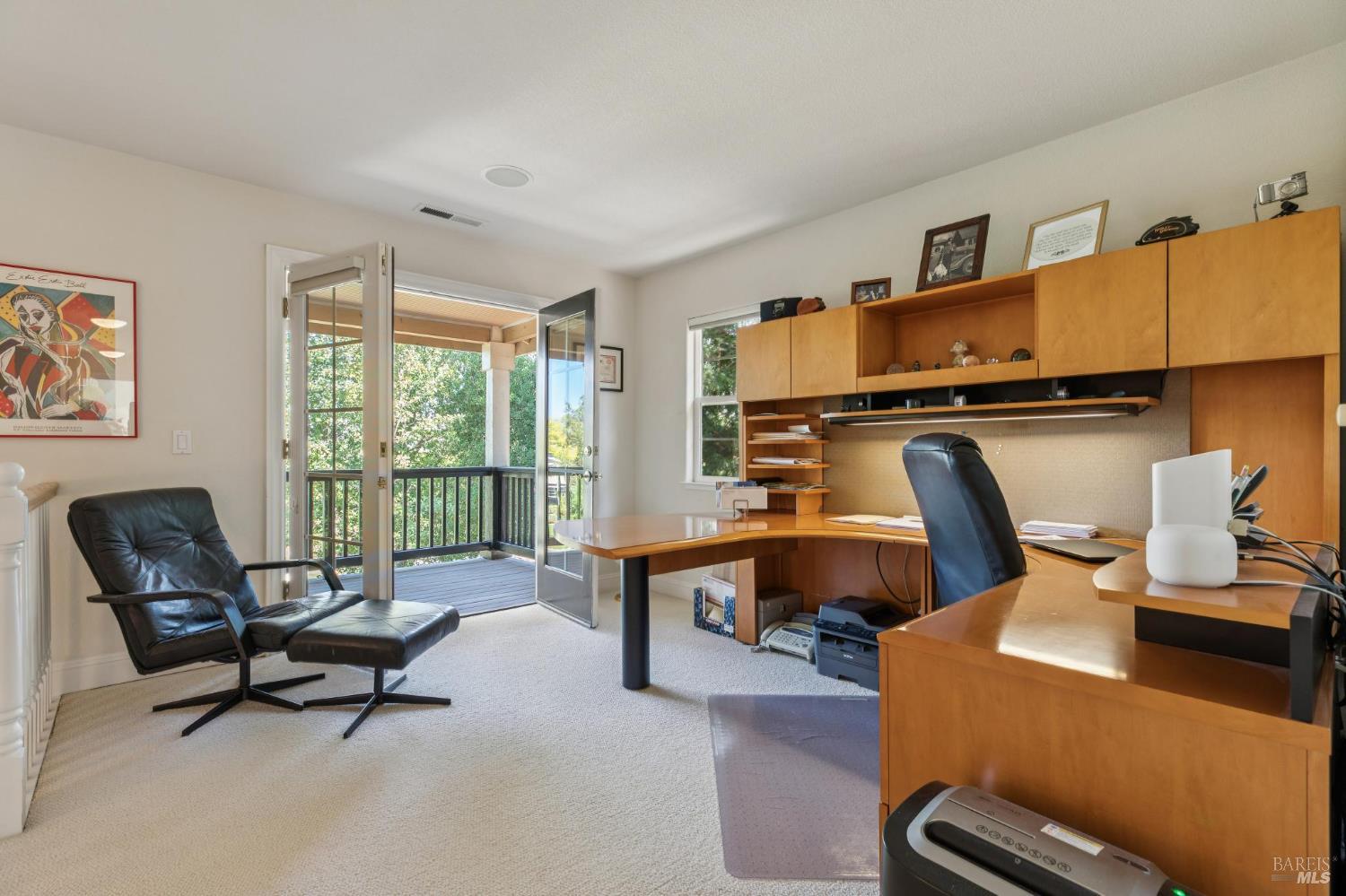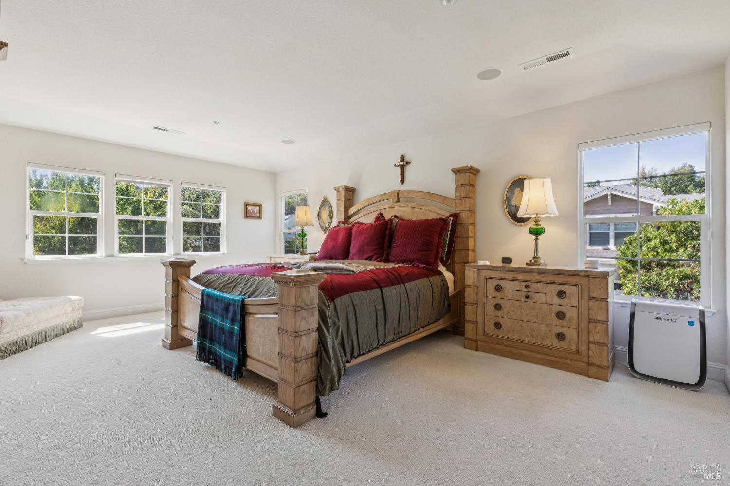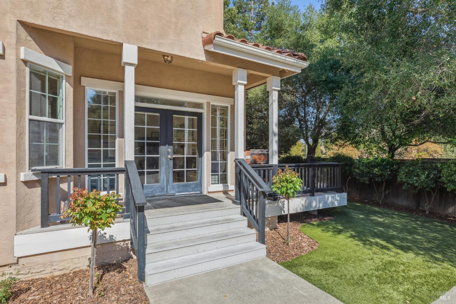 Located in desirable Browns Valley minutes to downtown Napa in an enclave of semi-custom homes, this bespoke home offers a fantastic floor plan designed with entertaining and relaxation in mind. Great room style living features gourmet kitchen with stunning quartzite countertops, center island with counter seating, stainless KitchenAid appliances & Wine Enthusiast wine refrigerator, walk-in pantry, wine cellar & informal dining area with bay window that showcases the abundance of natural light. Family room with beautiful hardwood flooring & gas fireplace offers French doors that open to private outdoor entertaining area with built-in BBQ & views of the verdant grounds. This 4 BDR 3.5 BA well-built home features 2 ensuite BDRs with one on main level. Spacious & luxurious main ensuite offers 2 walk-in closets & spa-like bath with marble flooring & French doors that open to balcony with seating area & views of hot air balloons & hills. Loft currently used as office also features French doors that open to expansive balcony. Living rm with gas fireplace & dining rm both feature views of the beautiful grounds. Tankless water heater, central air & heat, dual pane windows & doors, detached 2 car garage with built-in cabinetry, garden beds & 2 natural water features (seasonal creeks)!