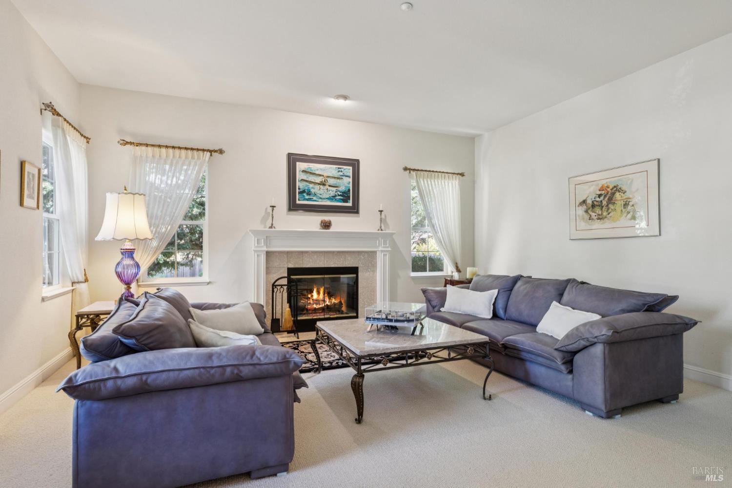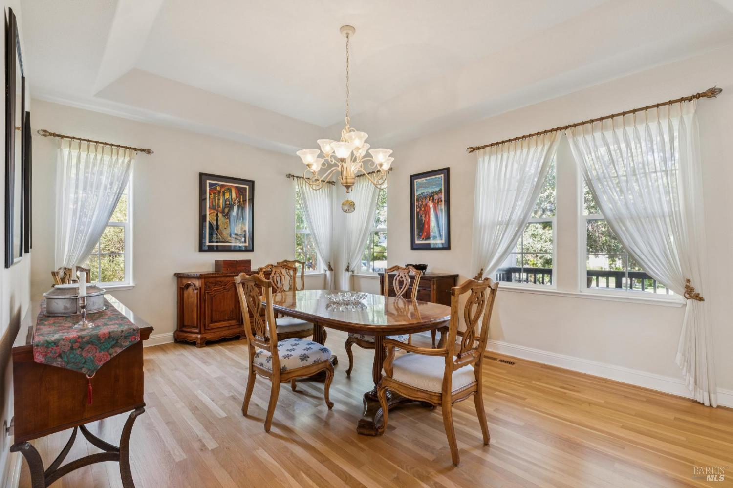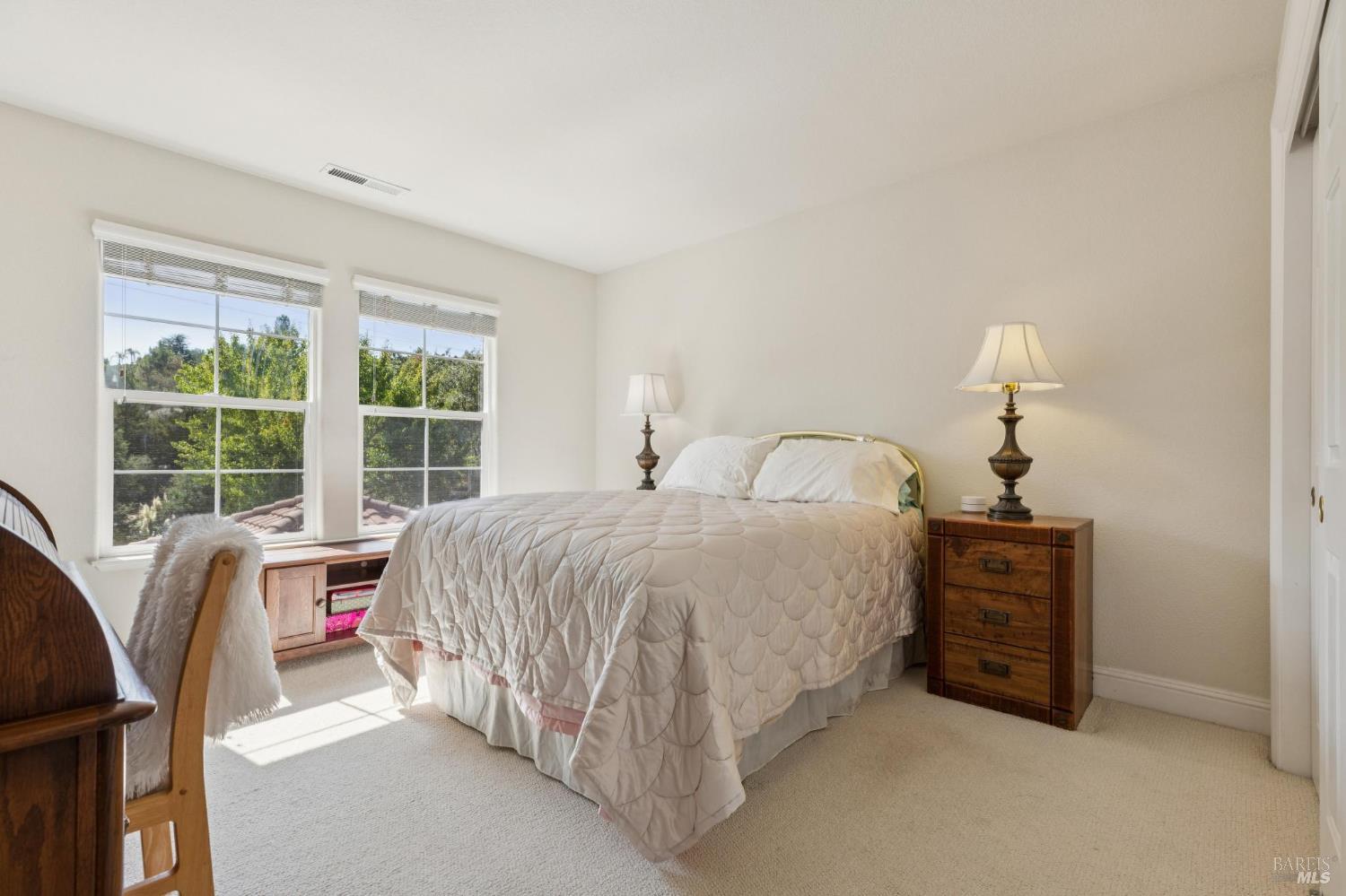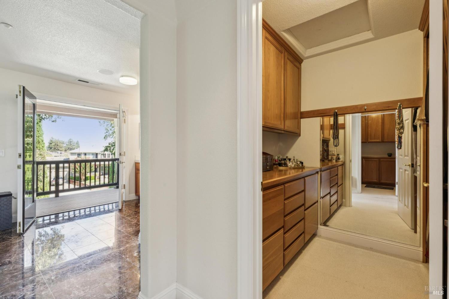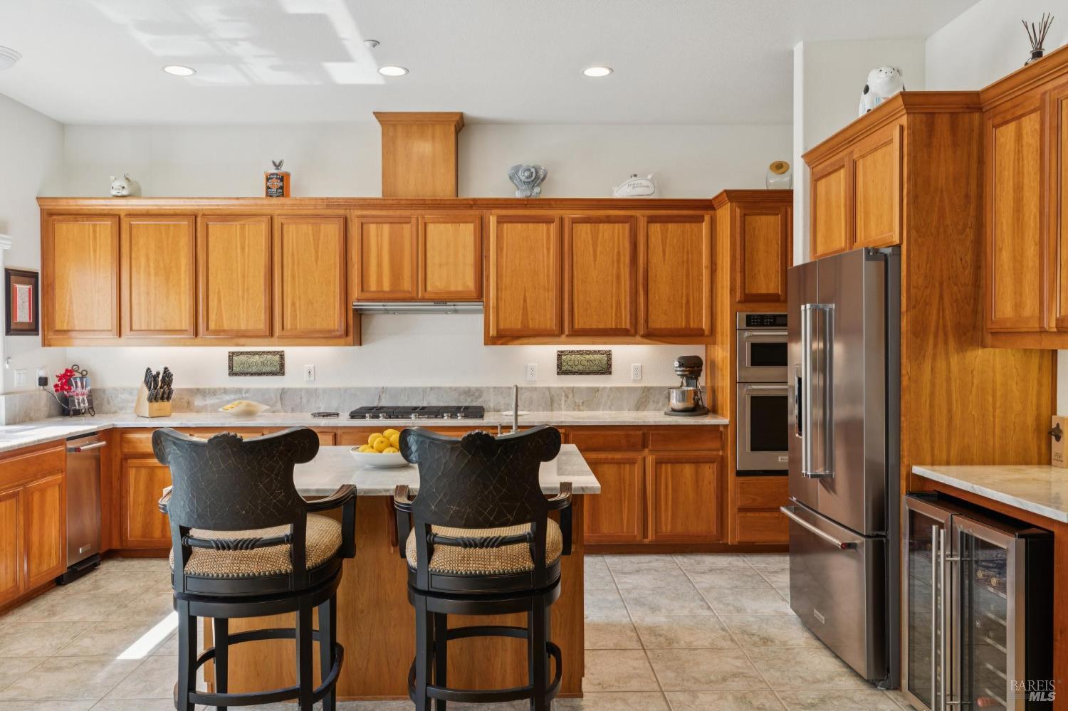 Located in desirable Browns Valley minutes to downtown Napa in an enclave of semi-custom homes, this bespoke home offers a fantastic floor plan designed with entertaining and relaxation in mind. Great room style living features gourmet kitchen with stunning quartzite countertops, center island with counter seating, stainless KitchenAid appliances & Wine Enthusiast wine refrigerator, walk-in pantry, wine cellar & informal dining area with bay window that showcases the abundance of natural light. Family room with beautiful hardwood flooring & gas fireplace offers French doors that open to private outdoor entertaining area with built-in BBQ & views of the verdant grounds. This 4 BDR 3.5 BA well-built home features 2 ensuite BDRs with one on main level. Spacious & luxurious main ensuite offers 2 walk-in closets & spa-like bath with marble flooring & French doors that open to balcony with seating area & views of hot air balloons & hills. Loft currently used as office also features French doors that open to expansive balcony. Living rm with gas fireplace & dining rm both feature views of the beautiful grounds. Tankless water heater, central air & heat, dual pane windows & doors, detached 2 car garage with built-in cabinetry, garden beds & 2 natural water features (seasonal creeks)!