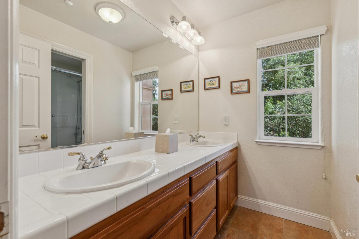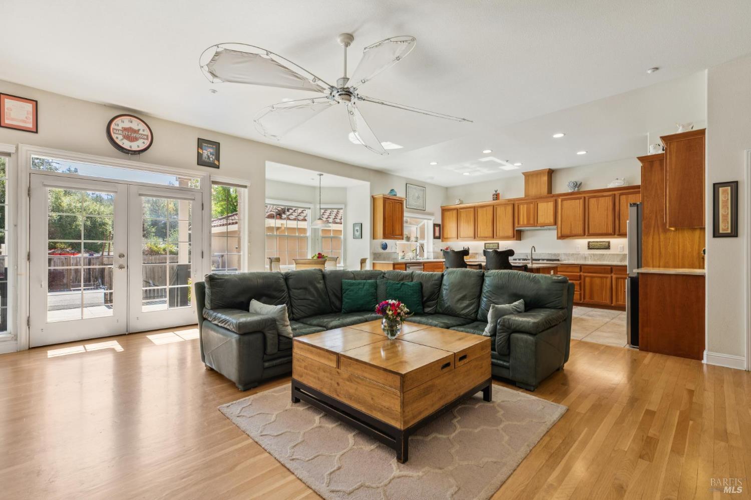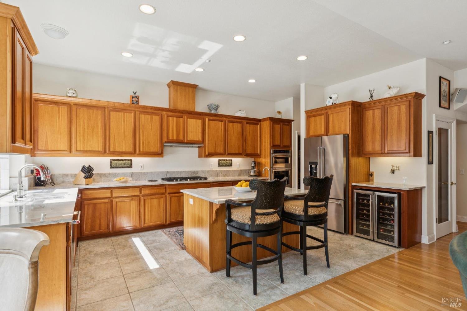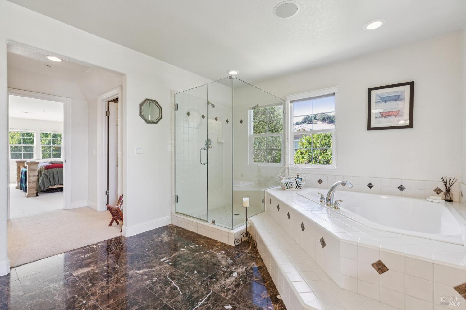 Located in desirable Browns Valley minutes to downtown Napa in an enclave of semi-custom homes, this bespoke home offers a fantastic floor plan designed with entertaining and relaxation in mind. Great room style living features gourmet kitchen with stunning quartzite countertops, center island with counter seating, stainless KitchenAid appliances & Wine Enthusiast wine refrigerator, walk-in pantry, wine cellar & informal dining area with bay window that showcases the abundance of natural light. Family room with beautiful hardwood flooring & gas fireplace offers French doors that open to private outdoor entertaining area with built-in BBQ & views of the verdant grounds. This 4 BDR 3.5 BA well-built home features 2 ensuite BDRs with one on main level. Spacious & luxurious main ensuite offers 2 walk-in closets & spa-like bath with marble flooring & French doors that open to balcony with seating area & views of hot air balloons & hills. Loft currently used as office also features French doors that open to expansive balcony. Living rm with gas fireplace & dining rm both feature views of the beautiful grounds. Tankless water heater, central air & heat, dual pane windows & doors, detached 2 car garage with built-in cabinetry, garden beds & 2 natural water features (seasonal creeks)!