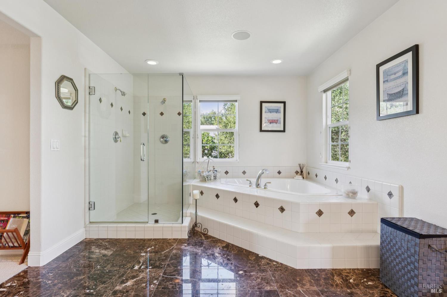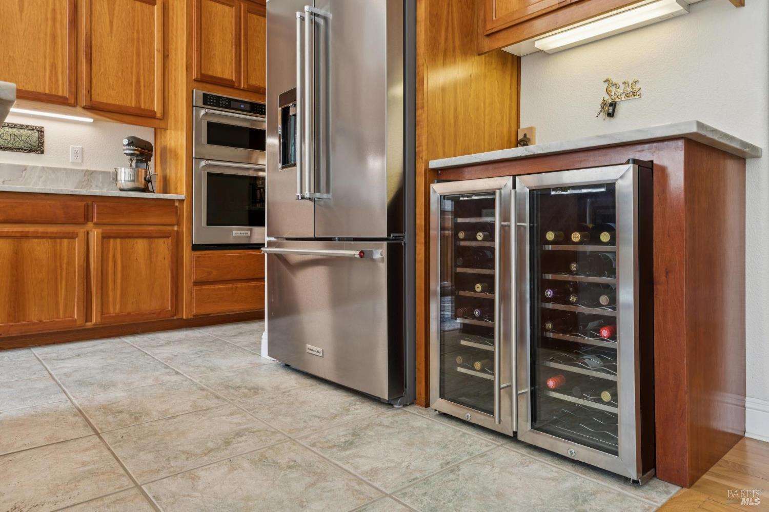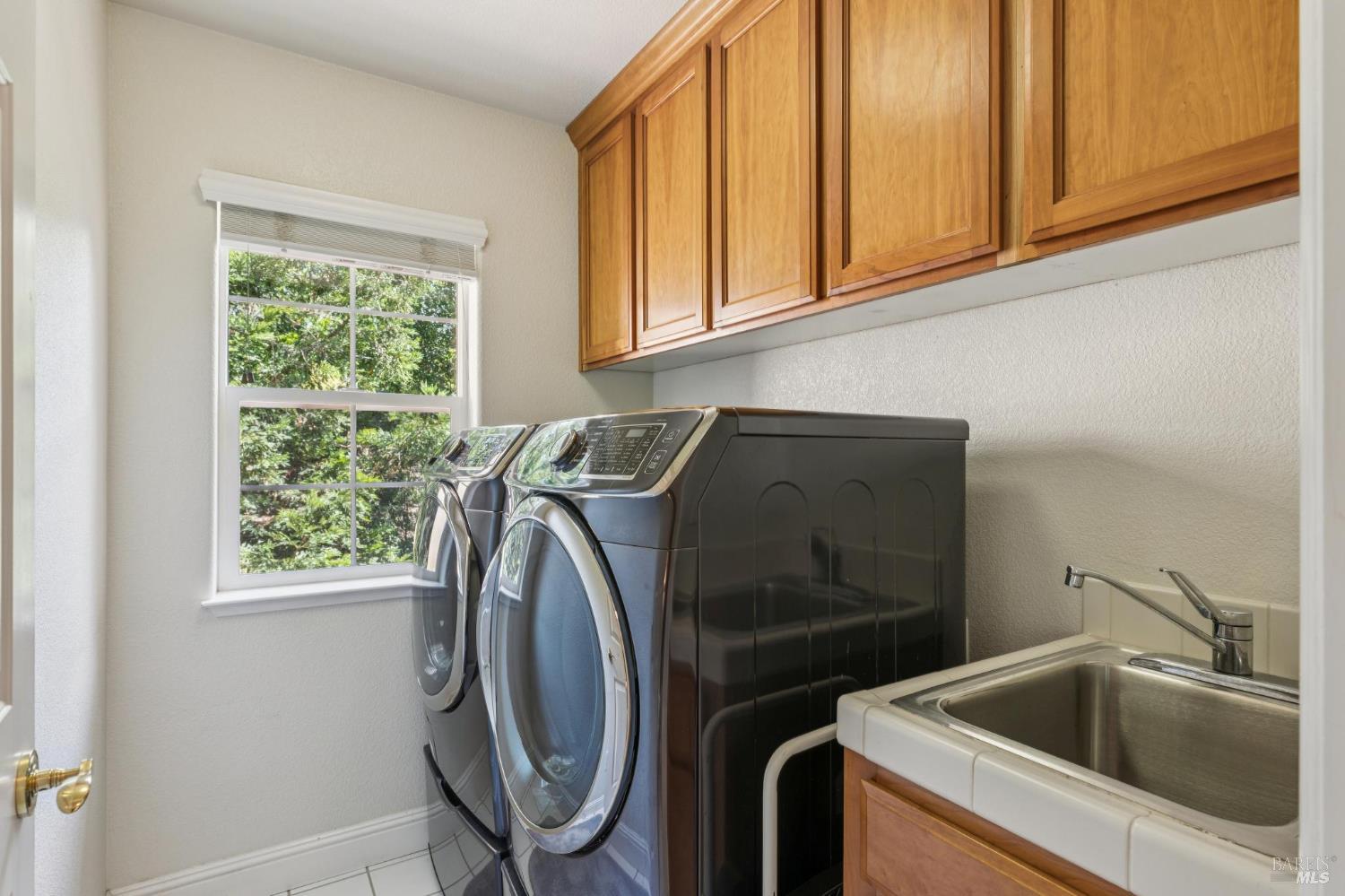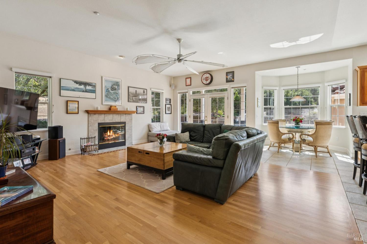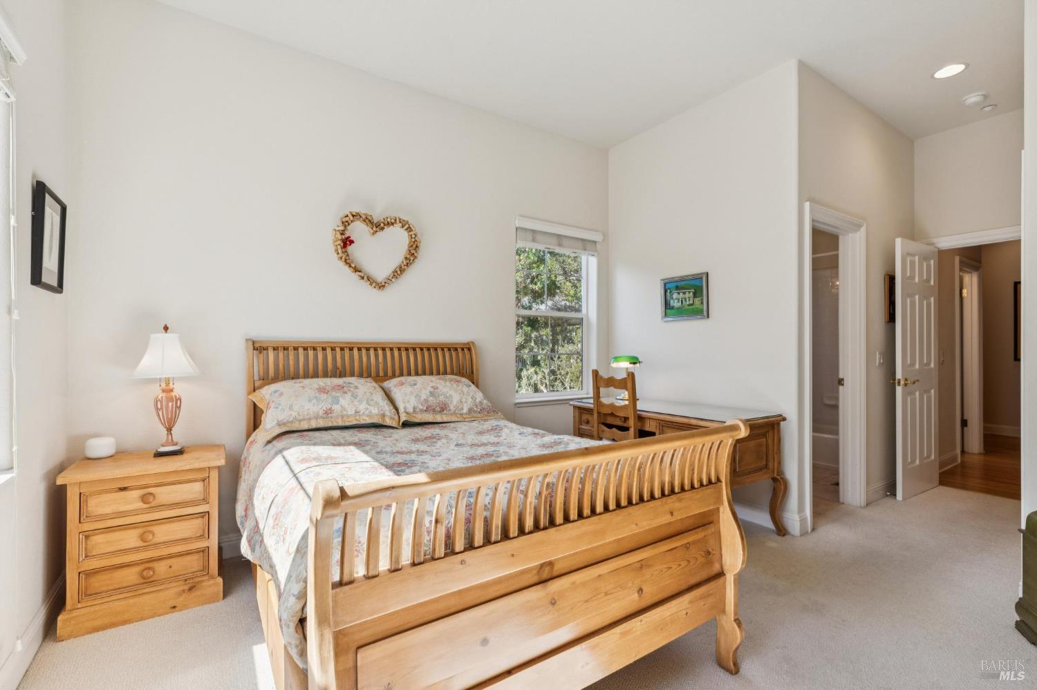 Located in desirable Browns Valley minutes to downtown Napa in an enclave of semi-custom homes, this bespoke home offers a fantastic floor plan designed with entertaining and relaxation in mind. Great room style living features gourmet kitchen with stunning quartzite countertops, center island with counter seating, stainless KitchenAid appliances & Wine Enthusiast wine refrigerator, walk-in pantry, wine cellar & informal dining area with bay window that showcases the abundance of natural light. Family room with beautiful hardwood flooring & gas fireplace offers French doors that open to private outdoor entertaining area with built-in BBQ & views of the verdant grounds. This 4 BDR 3.5 BA well-built home features 2 ensuite BDRs with one on main level. Spacious & luxurious main ensuite offers 2 walk-in closets & spa-like bath with marble flooring & French doors that open to balcony with seating area & views of hot air balloons & hills. Loft currently used as office also features French doors that open to expansive balcony. Living rm with gas fireplace & dining rm both feature views of the beautiful grounds. Tankless water heater, central air & heat, dual pane windows & doors, detached 2 car garage with built-in cabinetry, garden beds & 2 natural water features (seasonal creeks)!