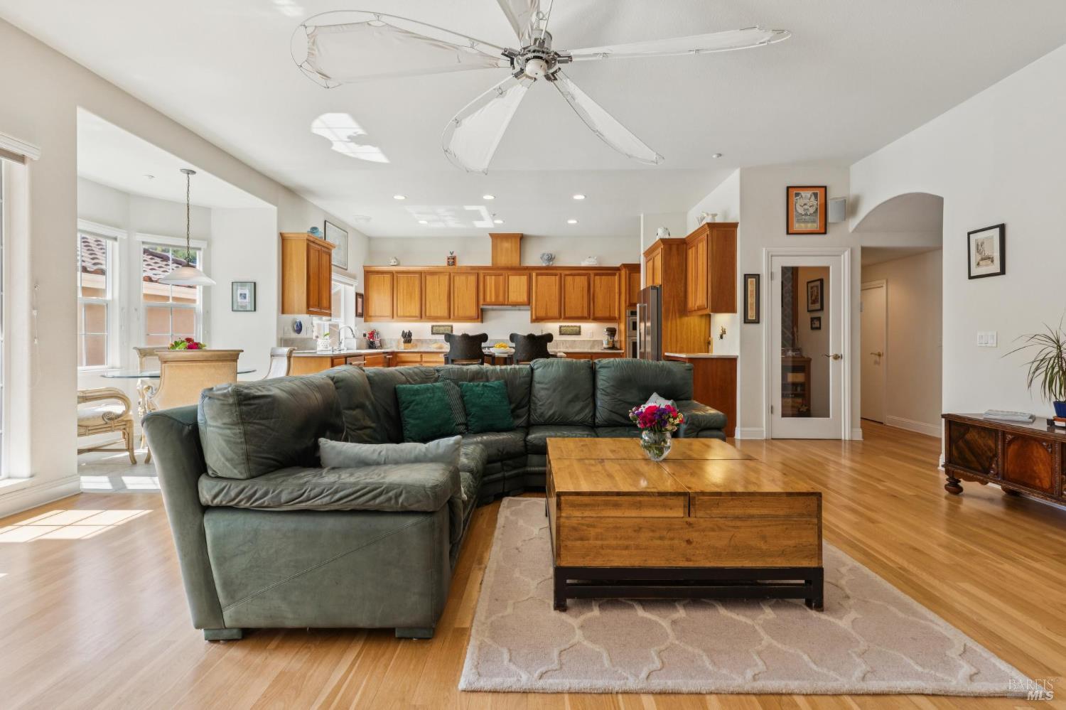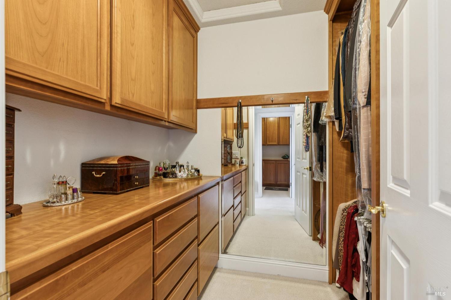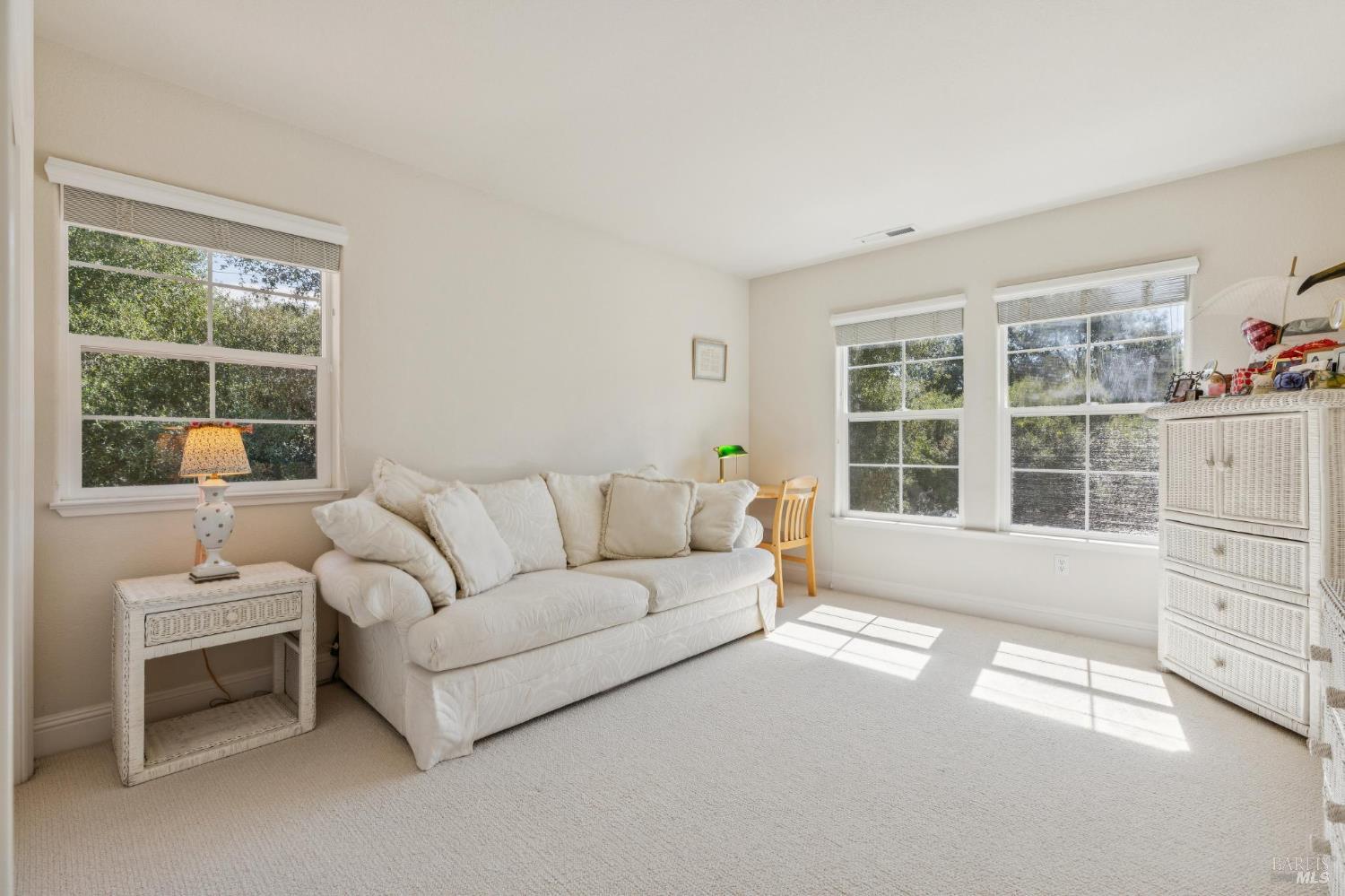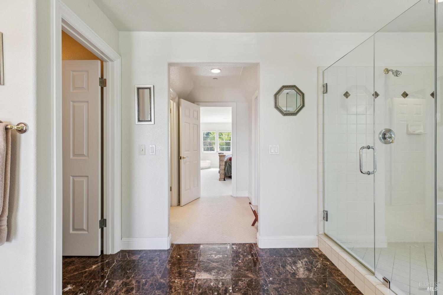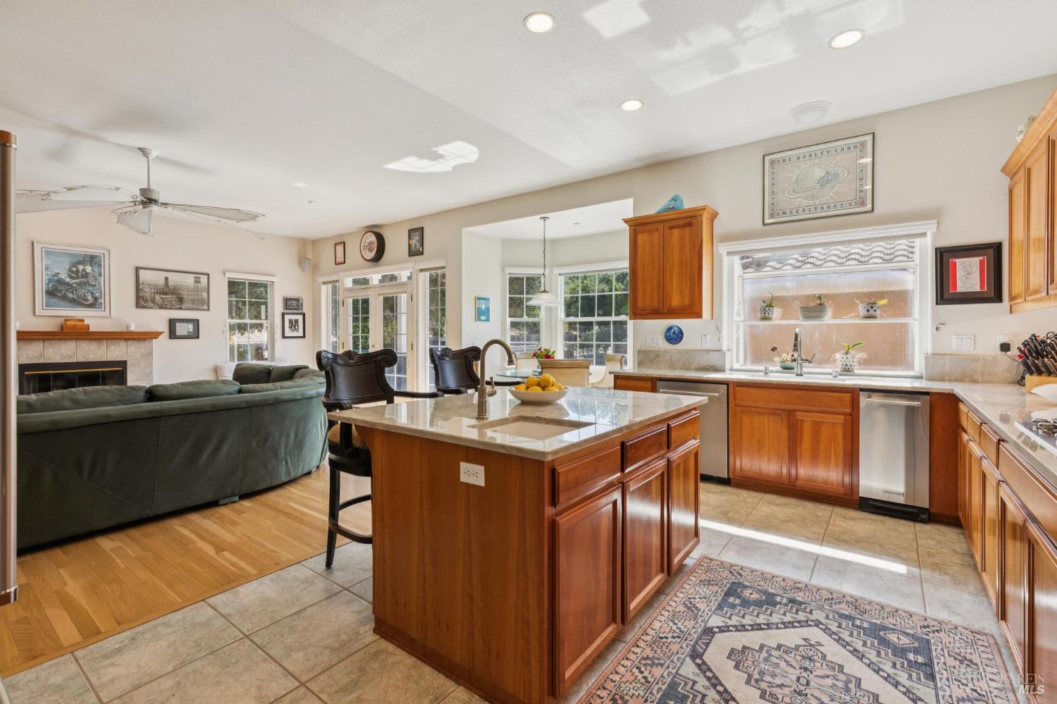 Located in desirable Browns Valley minutes to downtown Napa in an enclave of semi-custom homes, this bespoke home offers a fantastic floor plan designed with entertaining and relaxation in mind. Great room style living features gourmet kitchen with stunning quartzite countertops, center island with counter seating, stainless KitchenAid appliances & Wine Enthusiast wine refrigerator, walk-in pantry, wine cellar & informal dining area with bay window that showcases the abundance of natural light. Family room with beautiful hardwood flooring & gas fireplace offers French doors that open to private outdoor entertaining area with built-in BBQ & views of the verdant grounds. This 4 BDR 3.5 BA well-built home features 2 ensuite BDRs with one on main level. Spacious & luxurious main ensuite offers 2 walk-in closets & spa-like bath with marble flooring & French doors that open to balcony with seating area & views of hot air balloons & hills. Loft currently used as office also features French doors that open to expansive balcony. Living rm with gas fireplace & dining rm both feature views of the beautiful grounds. Tankless water heater, central air & heat, dual pane windows & doors, detached 2 car garage with built-in cabinetry, garden beds & 2 natural water features (seasonal creeks)!