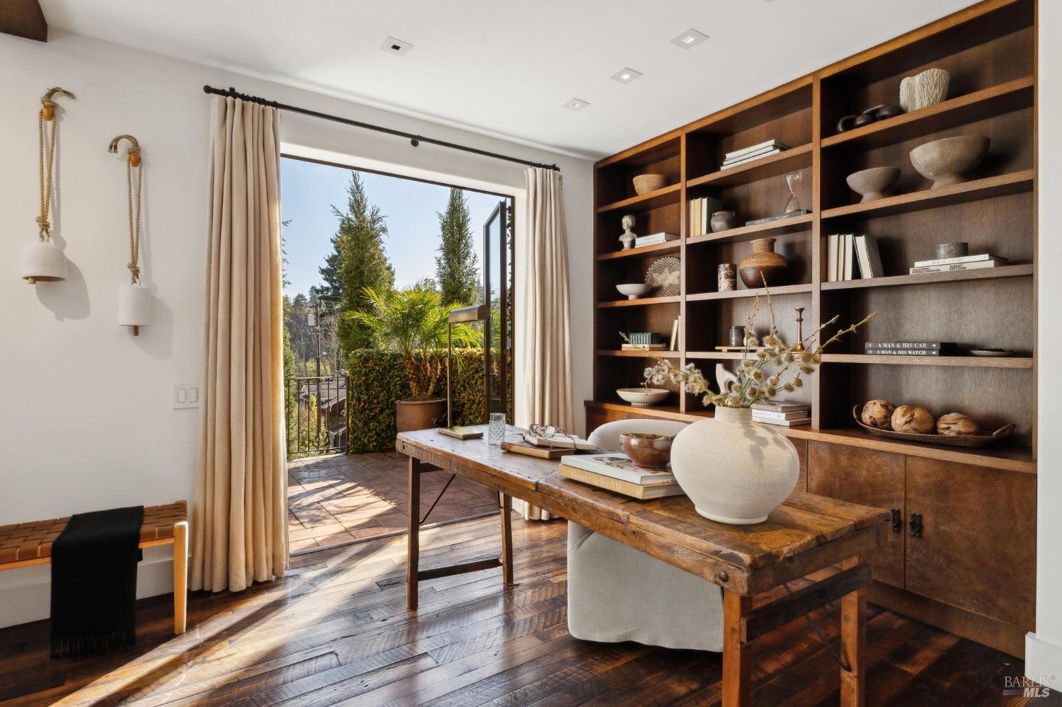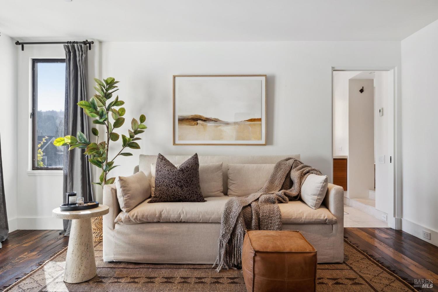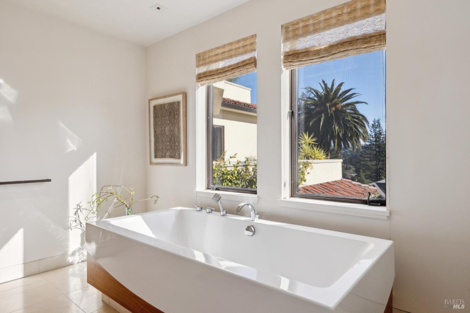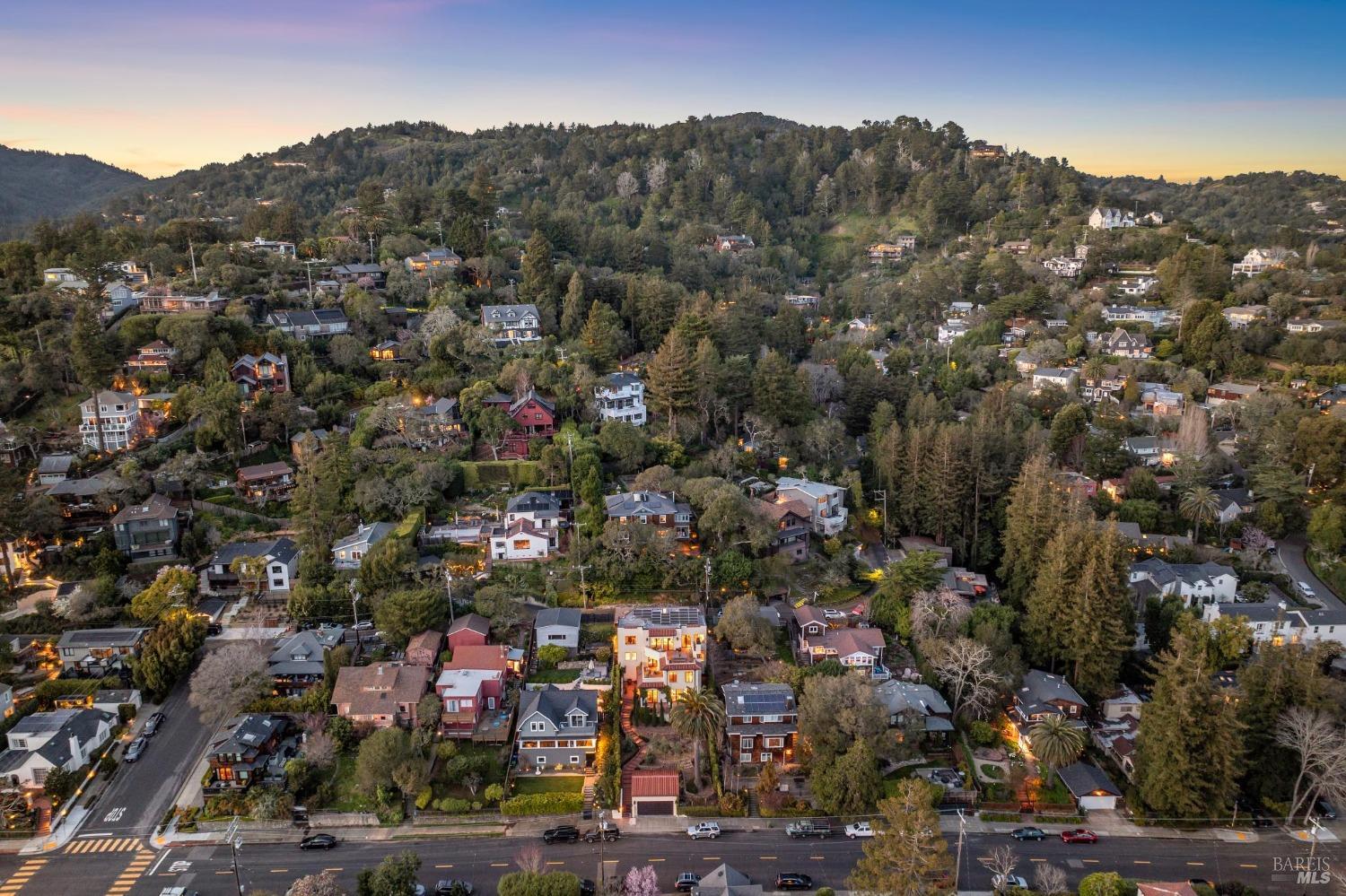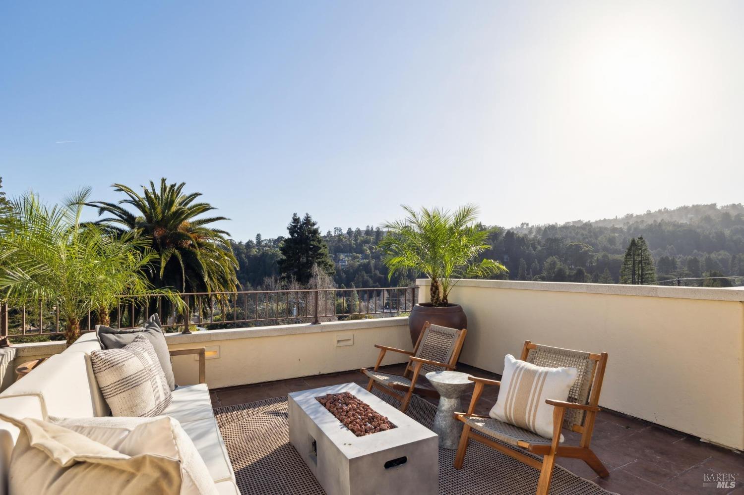 Located just one flat block from thriving downtown Mill Valley, this exceptional south-facing property offers rare street-to-street stair-less access to the main level and inspiring views of San Francisco, the Bay, and surrounding valleys. With over 4,000 sq. ft. of living space, this 4-bedroom, 4-bathroom residence is defined by craftsmanship and sophisticated design. Custom reclaimed wood floors pair with industrial steel plate details, while bespoke leather cabinetry and designer fixtures add luxury. Inspired by Santa Barbara architecture, the home blends grandeur with intimacyideal for entertaining or private living. The main level features a chef's kitchen, formal living and dining areas, all opening to an expansive patio. The primary suite is a true retreat, with a spa-inspired bath, generous walk-in closet, and private patio. The lower level offers a dramatic entry foyer and family room flowing to another large patio. Recent upgrades include solar panels with Tesla walls, a newly built 2 car garage, new turf, and mature landscaping. This rare combination of elegance, scale, and locationsteps from downtownembodies California village living at its finest.