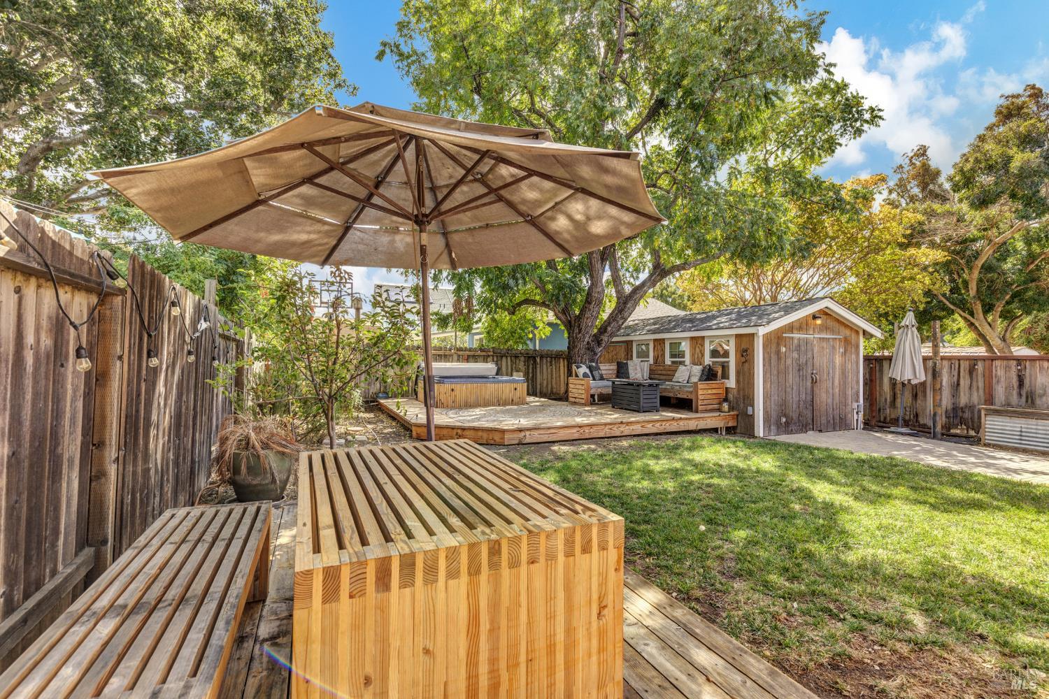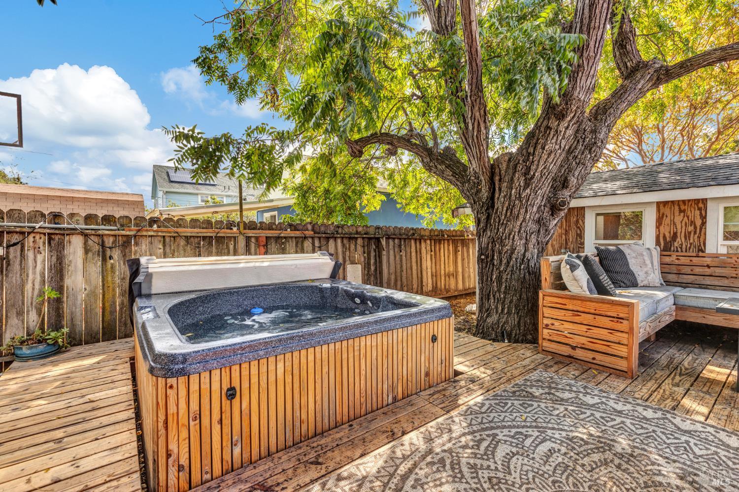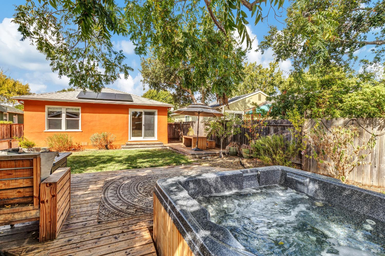 Sweet bungalow home in downtown! This home boasts personality throughout - from the charming front porch entry, to the cheerful colors inside and out, to the large living space and inviting kitchen, to the spacious and private backyard. Imagine strolling 4 blocks to First Street, where delicious restaurants and bakeries entice you, chic shops, live music and festivals await! Only 5 blocks to the Benicia marina and the waterfront. Return home for a soak in the hot tub beneath the big tree. Tinker in your workshop and take your hobbies to a new level! This vibrant community town will welcome you home!