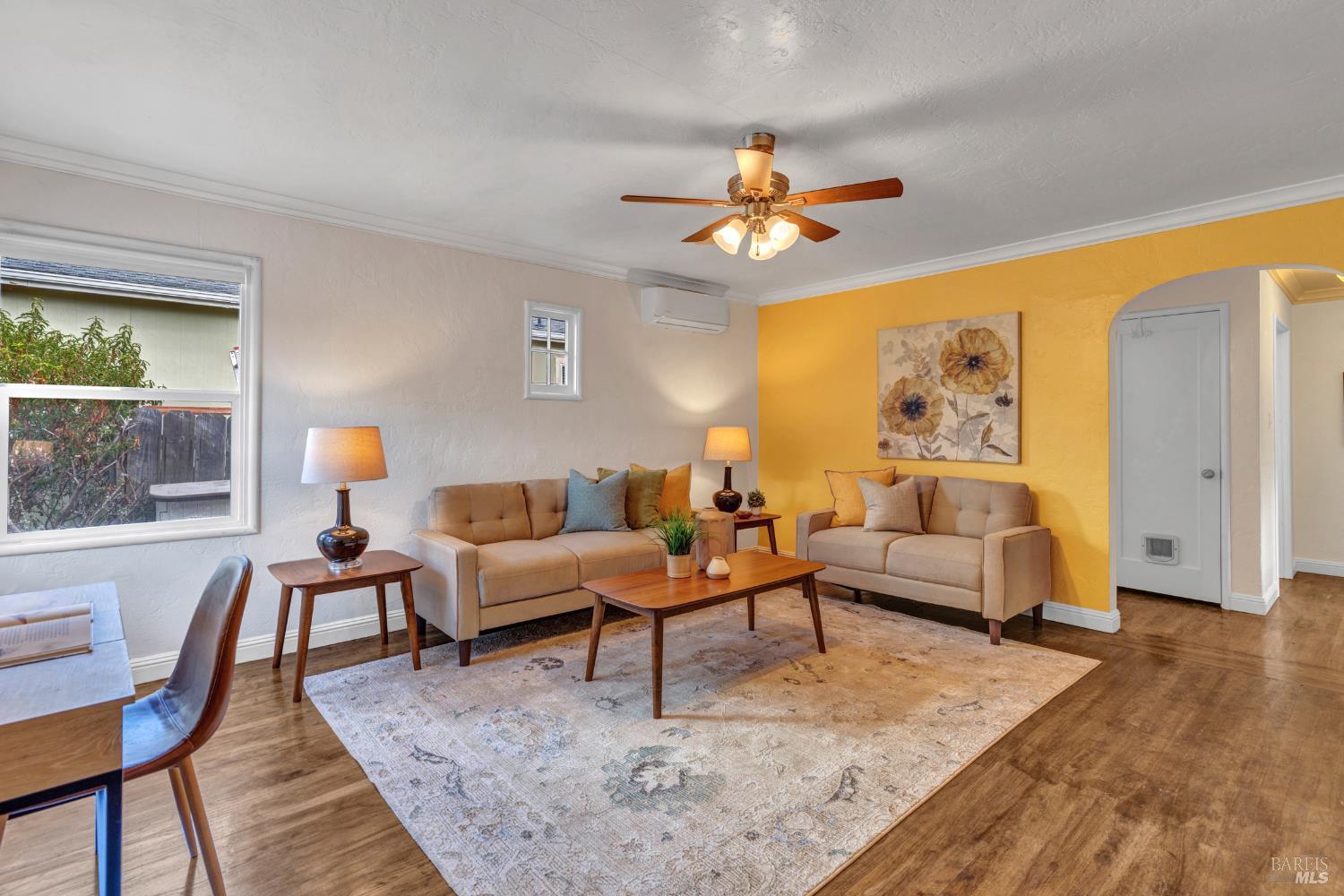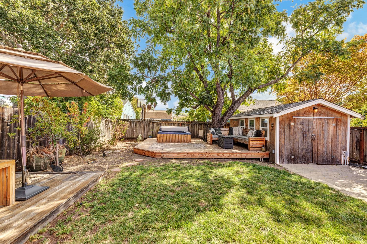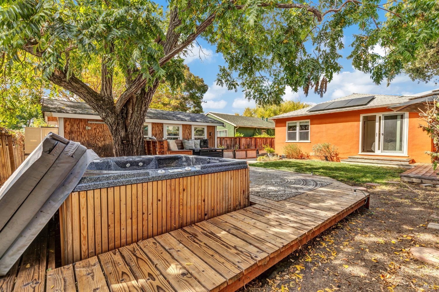 Sweet bungalow home in downtown! This home boasts personality throughout - from the charming front porch entry, to the cheerful colors inside and out, to the large living space and inviting kitchen, to the spacious and private backyard. Imagine strolling 4 blocks to First Street, where delicious restaurants and bakeries entice you, chic shops, live music and festivals await! Only 5 blocks to the Benicia marina and the waterfront. Return home for a soak in the hot tub beneath the big tree. Tinker in your workshop and take your hobbies to a new level! This vibrant community town will welcome you home!