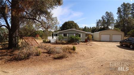 Creekside Ranch 20 acres of complete seclusion with much of the property usable for livestock, horses, planting. Cole Creek runs through all year long on its way to Clear Lake. Large, manufactured home in livable condition with a woodstove and a large deck opening onto a large level cleared area around the home. Double garage and a greenhouse for your gardening needs. Tile floors in the kitchen and laminate flooring in the bathrooms. You have both well and creek water. Plenty of room for an ADU.