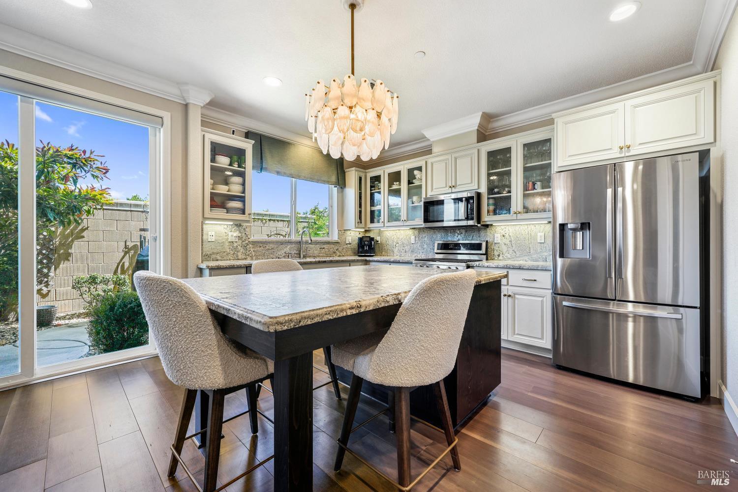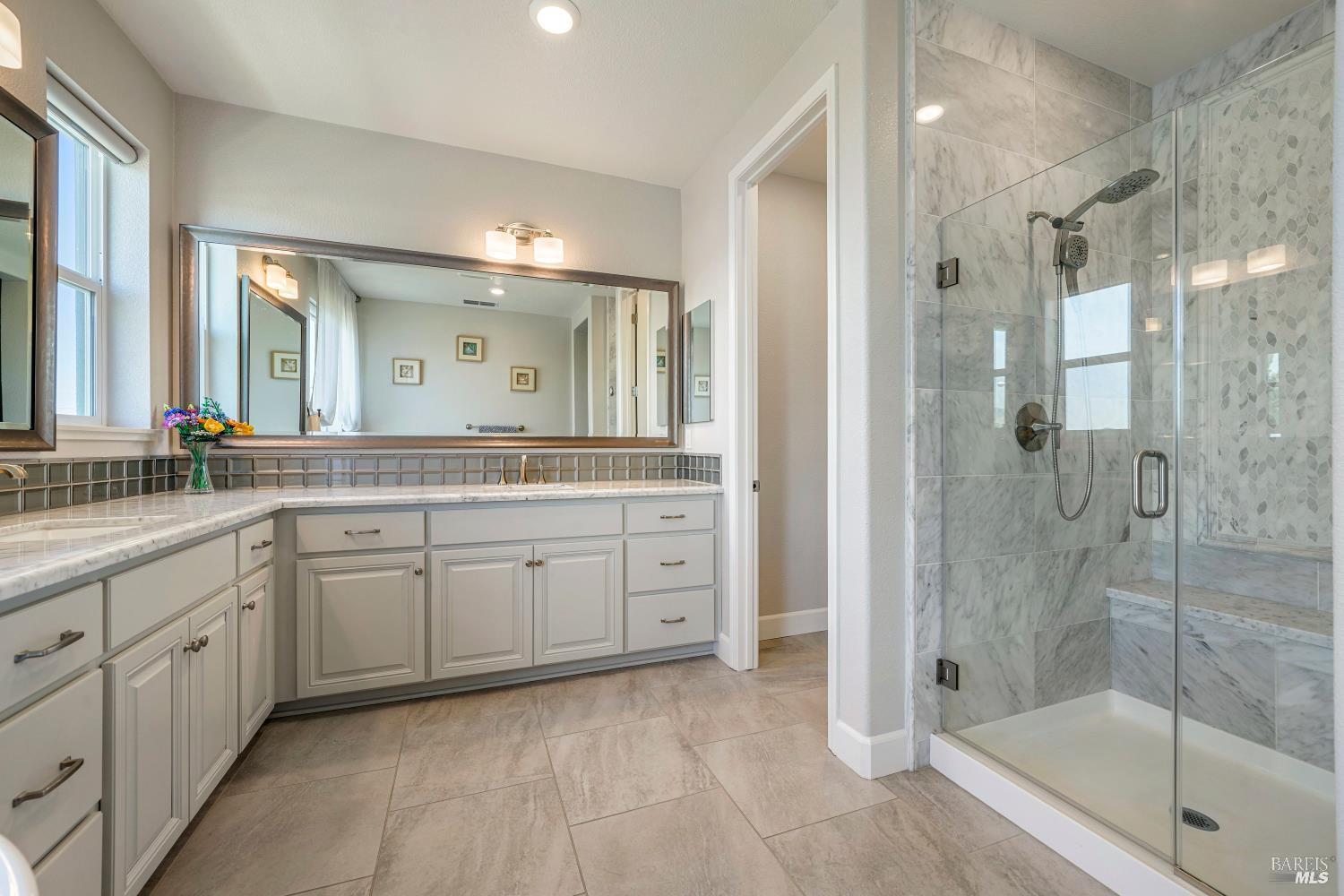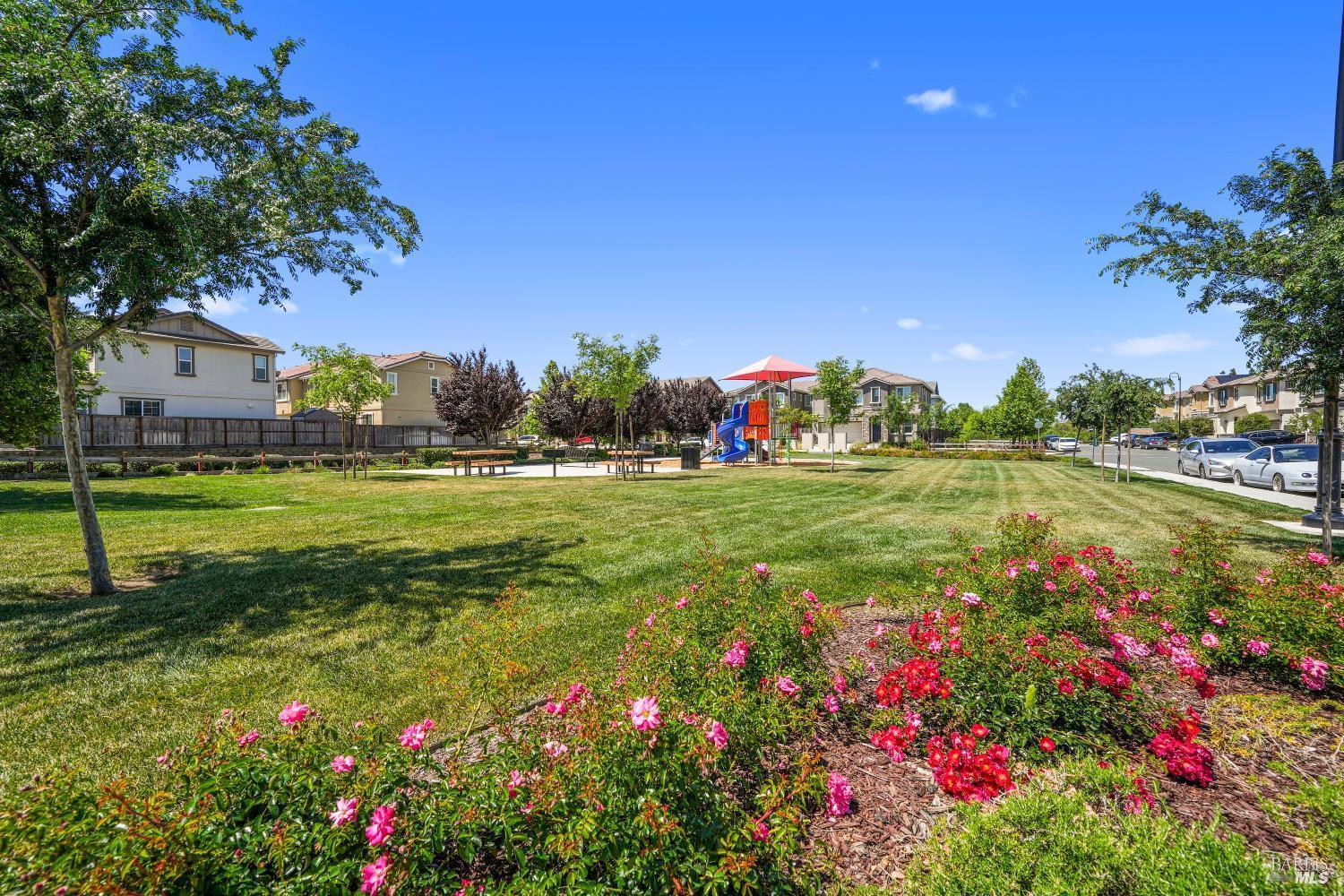 Welcome Home to Modern Luxury! ✨ This stunning former model home is packed with upgrades and designed for comfort and style. Step inside to find upgraded flooring, a chef's kitchen with premium cabinets, sleek countertops, a spacious island with seating, walk-in pantry, recessed lighting, and stainless steel KitchenAid appliances. Upstairs, enjoy spacious secondary bedrooms, a versatile loft, and a luxurious primary suite featuring an ensuite with extra cabinetry, soaking tub, and oversized shower. Built in 2021, this home is energy-efficient with owned solar and a whole house fan to keep utility costs low. Outdoor living is a breeze with the inviting back patio, and a community park just across the street adds extra charm. Perfectly located minutes from Travis AFB, Hwy 12, Hwy 80, and the Vacaville-Fairfield Amtrak Station, this home combines convenience with modern living.