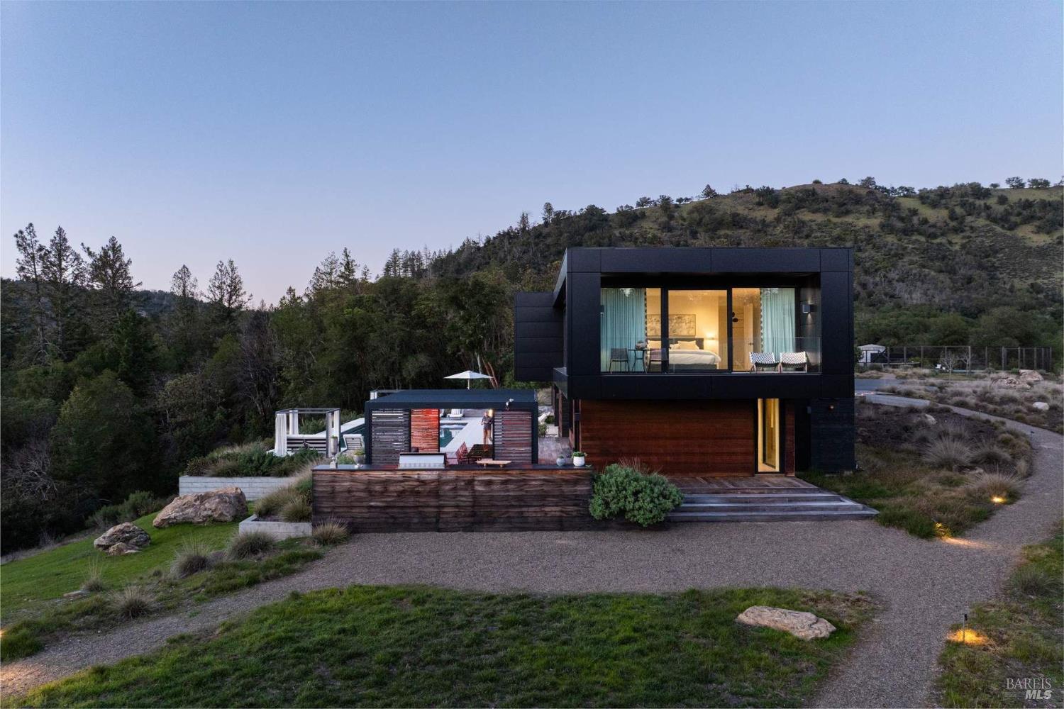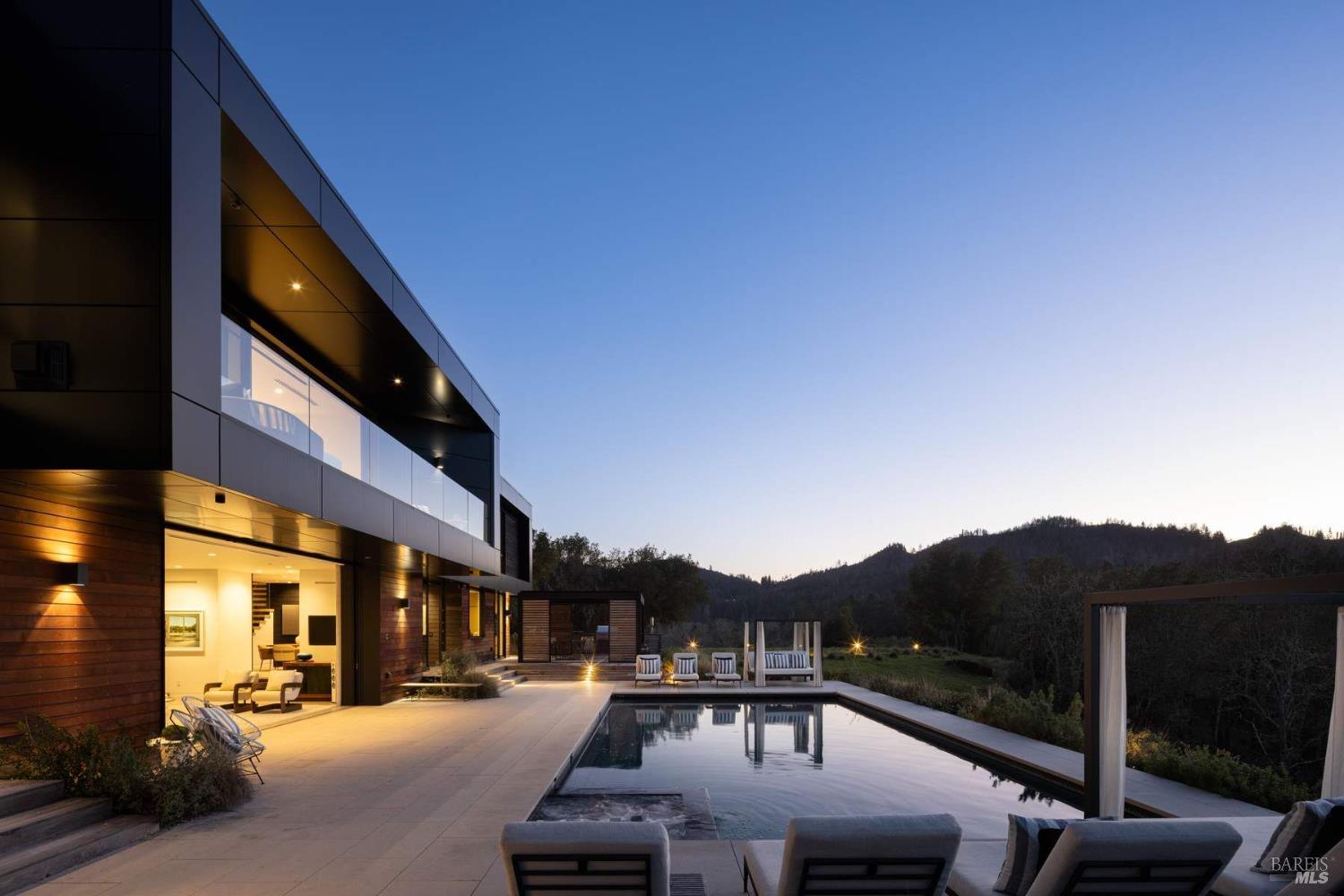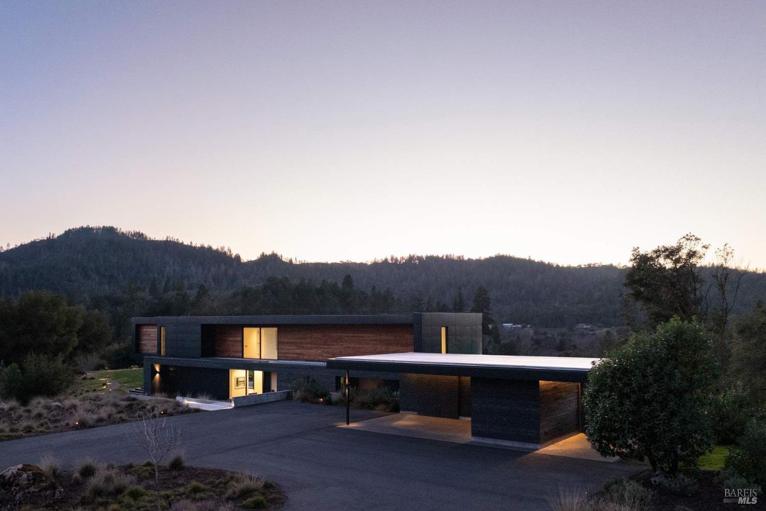 Situated minutes to Calistoga's world-class spas, wineries, and culinary destinations, 8495 Franz Valley School Road is an unparalleled expression of contemporary refinement, privacy, and natural beautya modern sanctuary at the intersection of architecture and landscape. Designed by the renowned Signum Architecture and brought to life by Fairweather and Associates in 2020, this private retreat redefines modern luxury. A gated entrance and short drive unveil a home described as having a strong sense of horizontality and a palette of wood-on-wood, punctuated with metal.'' Durable materials of concrete, stained cedar, aluminum-framed expanses of glass, and Japanese shou sugi ban siding (insect and fire resistant) unify beneath a sleek parapet roof. Walls of glass disappear to dissolve the boundary between indoors and out and lead to an inviting heated pool w/ spa and an outdoor kitchen with expansive views. A private tennis court adds to the resort-style living. The layout is thoughtfully attuned to the Terremoto/Alain Peauroi masterful landscape design complementing the architecture's geometric precision. In keeping with the home's open and transparent ethos, a carport replaces the traditional garage, ensuring the architecture remains unobtrusive and deeply connected to the land.
