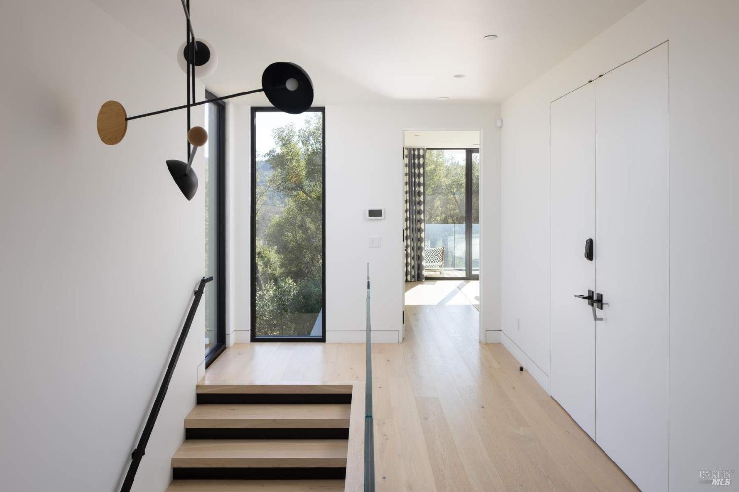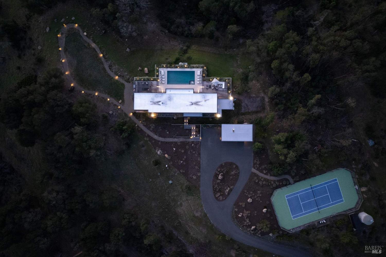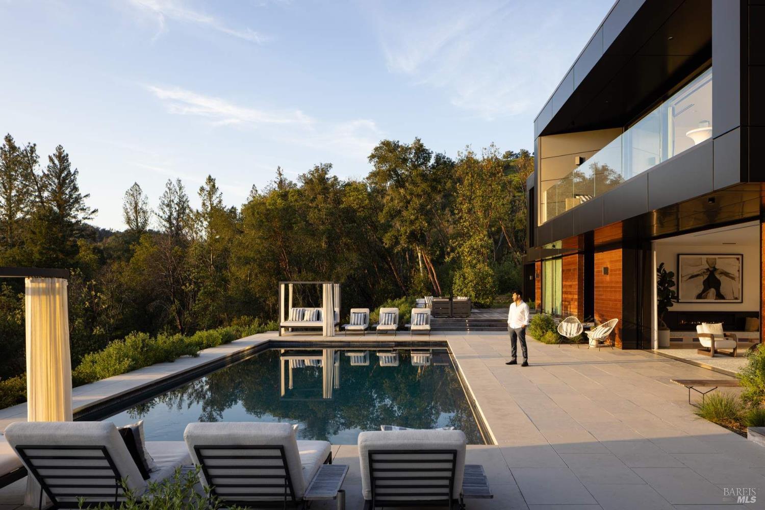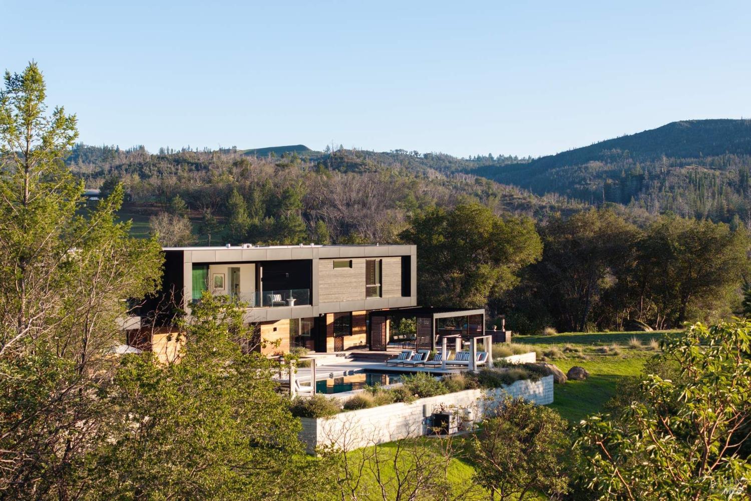 Situated minutes to Calistoga's world-class spas, wineries, and culinary destinations, 8495 Franz Valley School Road is an unparalleled expression of contemporary refinement, privacy, and natural beautya modern sanctuary at the intersection of architecture and landscape. Designed by the renowned Signum Architecture and brought to life by Fairweather and Associates in 2020, this private retreat redefines modern luxury. A gated entrance and short drive unveil a home described as having a strong sense of horizontality and a palette of wood-on-wood, punctuated with metal.'' Durable materials of concrete, stained cedar, aluminum-framed expanses of glass, and Japanese shou sugi ban siding (insect and fire resistant) unify beneath a sleek parapet roof. Walls of glass disappear to dissolve the boundary between indoors and out and lead to an inviting heated pool w/ spa and an outdoor kitchen with expansive views. A private tennis court adds to the resort-style living. The layout is thoughtfully attuned to the Terremoto/Alain Peauroi masterful landscape design complementing the architecture's geometric precision. In keeping with the home's open and transparent ethos, a carport replaces the traditional garage, ensuring the architecture remains unobtrusive and deeply connected to the land.