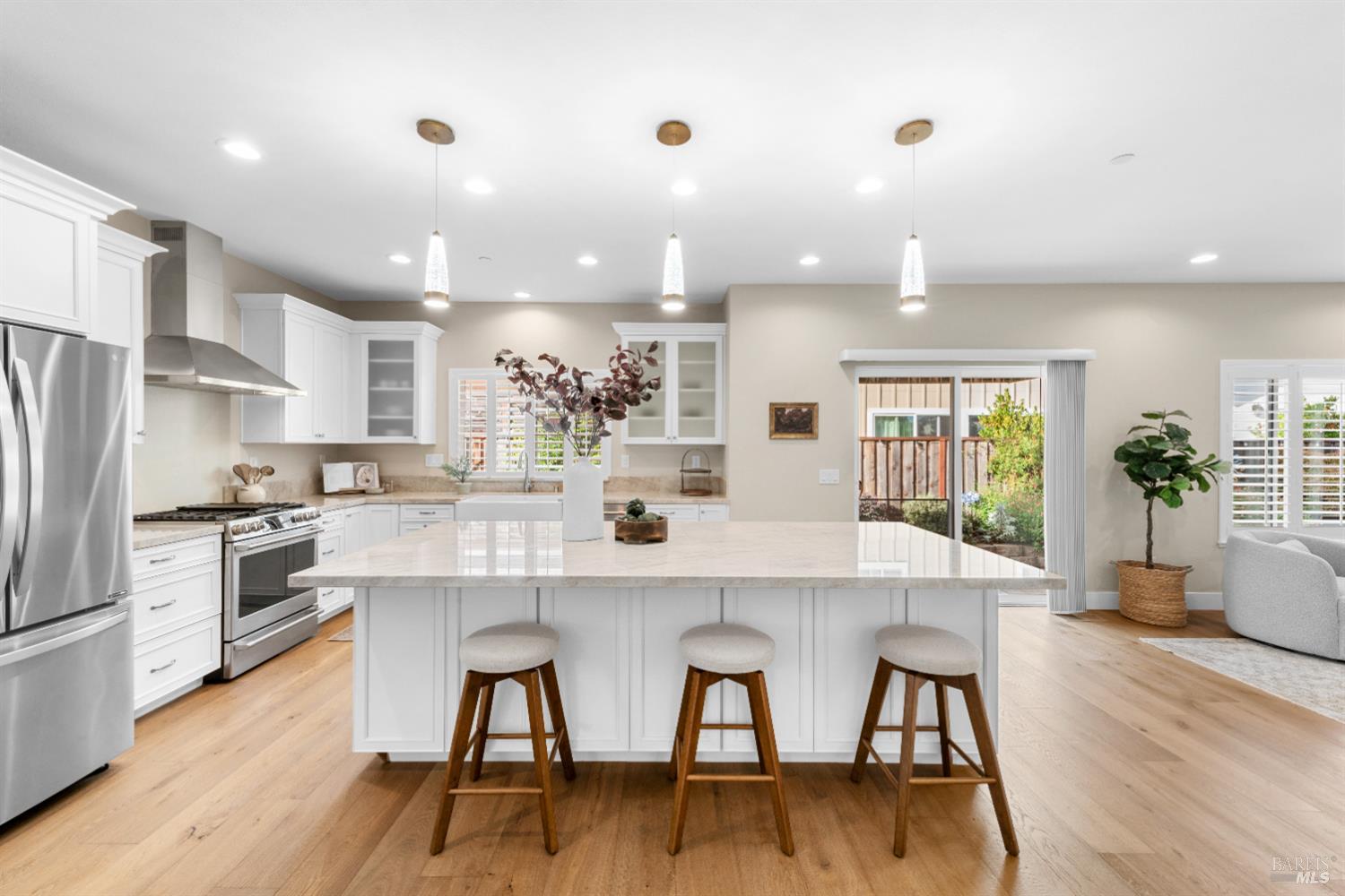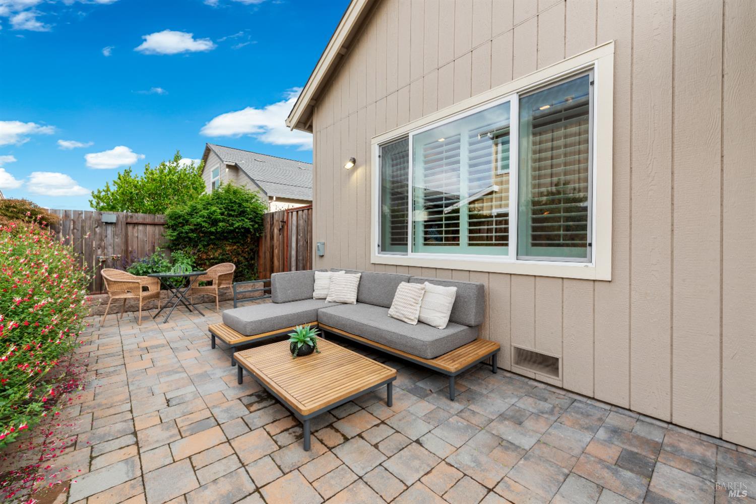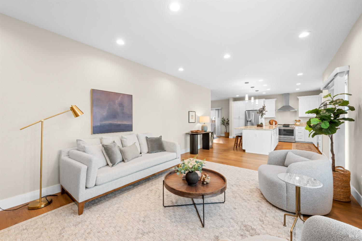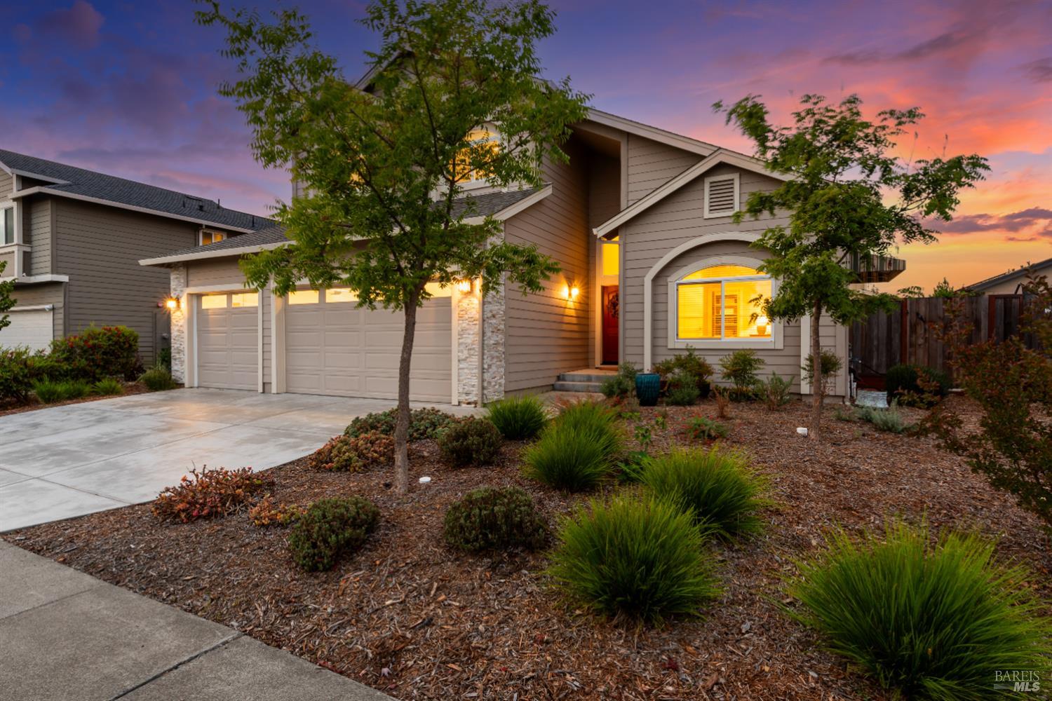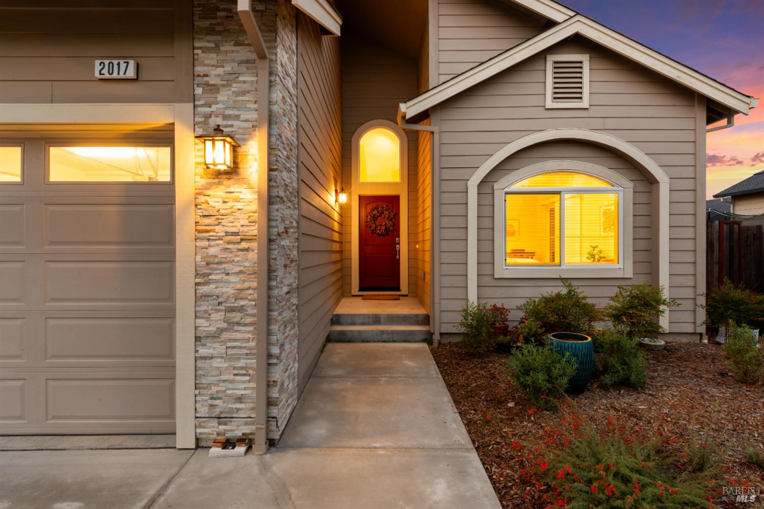 Modern elegance meets everyday comfort at 2017 Shelbourne Way. Nestled on a quiet cul-de-sac in NW Santa Rosa, this 5-year-old Tuxhorn-built home offers 2,323 sq. ft. of light-filled living with soaring ceilings, oversized windows, and wide-plank French oak floors. The chef's kitchen features a stunning Taj Mahal quartzite island and connects seamlessly to open dining and family spaces. Two en-suites, one upstairs and one downstairs, create ideal flexibility for guests or multi-generational living. Sliding doors on three sides lead to patios and a tranquil garden, perfect for entertaining or unwinding. Modern conveniences include owned solar, dual laundry hookups, and a 3-car garage with storage or workshop potential. Just steps to Coffey Park, playgrounds, and a popular dog park, this home blends quality, convenience, and community in one exceptional setting.