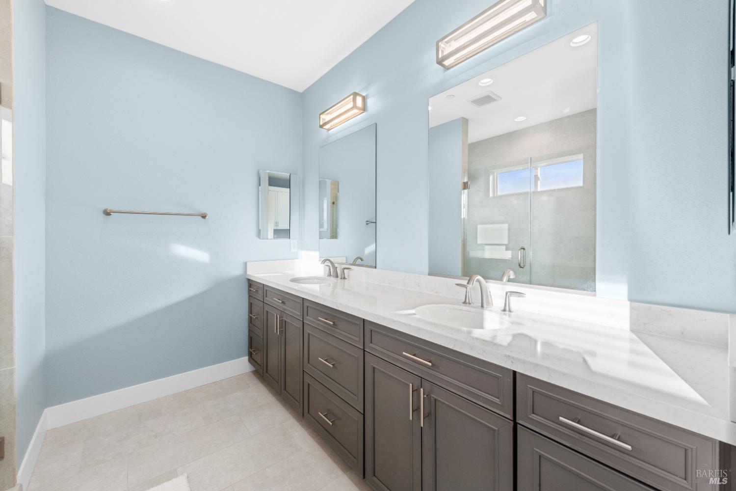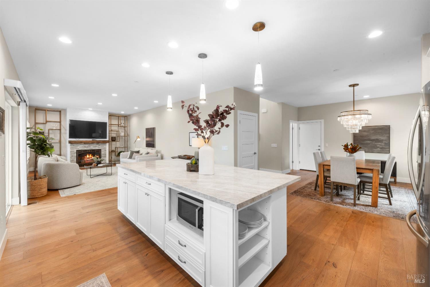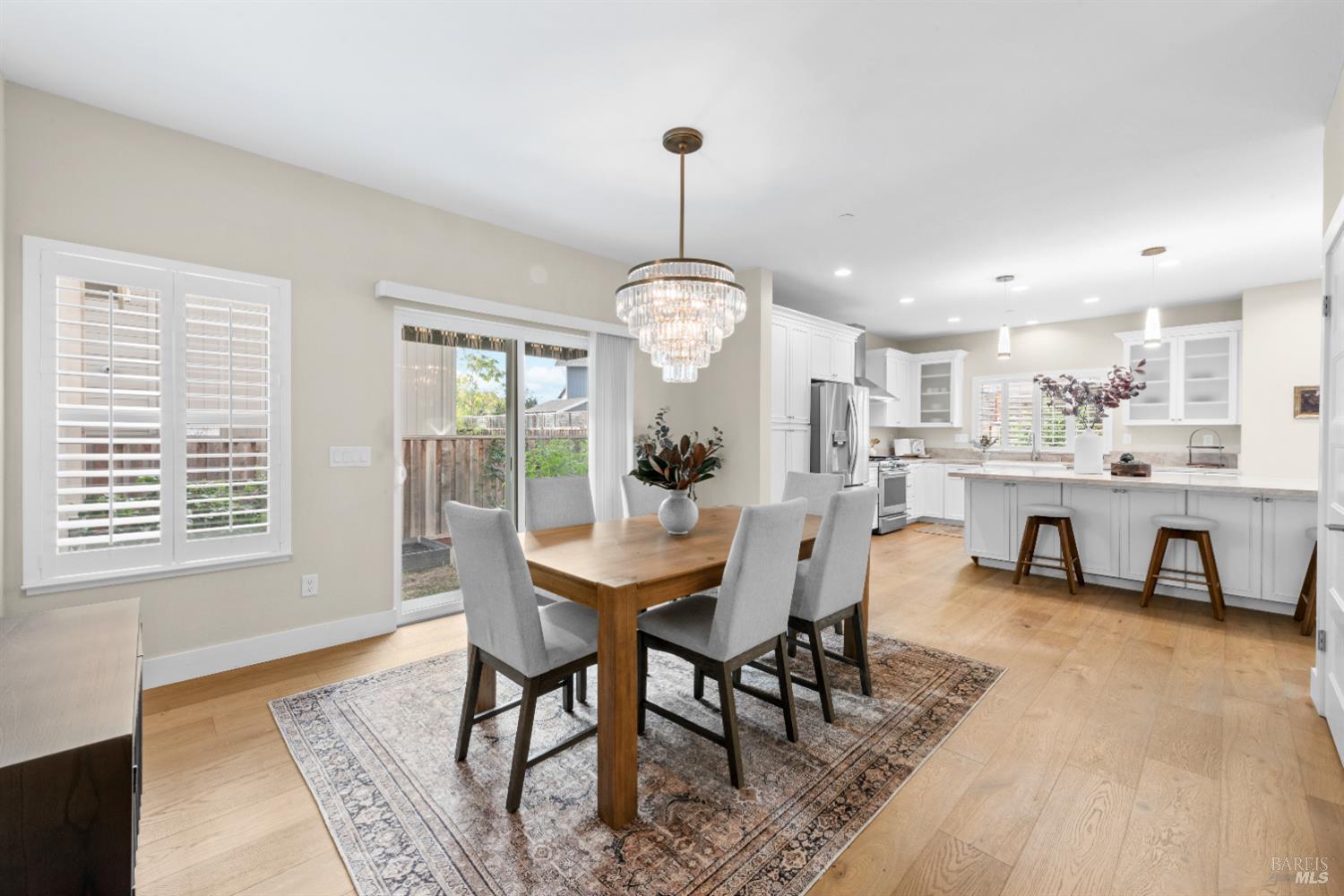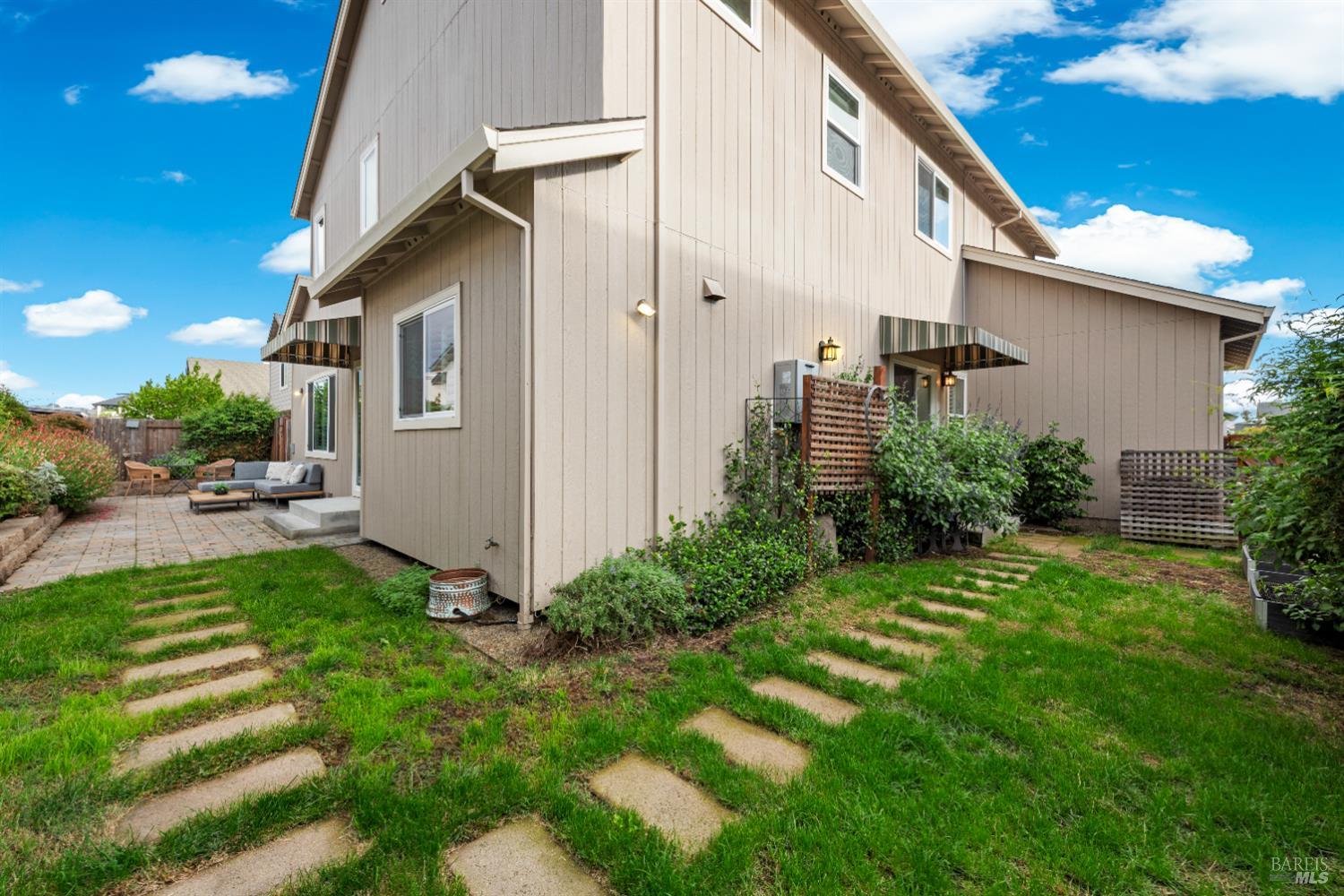Modern elegance meets everyday comfort at 2017 Shelbourne Way. Nestled on a quiet cul-de-sac in NW Santa Rosa, this 5-year-old Tuxhorn-built home offers 2,323 sq. ft. of light-filled living with soaring ceilings, oversized windows, and wide-plank French oak floors. The chef's kitchen features a stunning Taj Mahal quartzite island and connects seamlessly to open dining and family spaces. Two en-suites, one upstairs and one downstairs, create ideal flexibility for guests or multi-generational living. Sliding doors on three sides lead to patios and a tranquil garden, perfect for entertaining or unwinding. Modern conveniences include owned solar, dual laundry hookups, and a 3-car garage with storage or workshop potential. Just steps to Coffey Park, playgrounds, and a popular dog park, this home blends quality, convenience, and community in one exceptional setting.