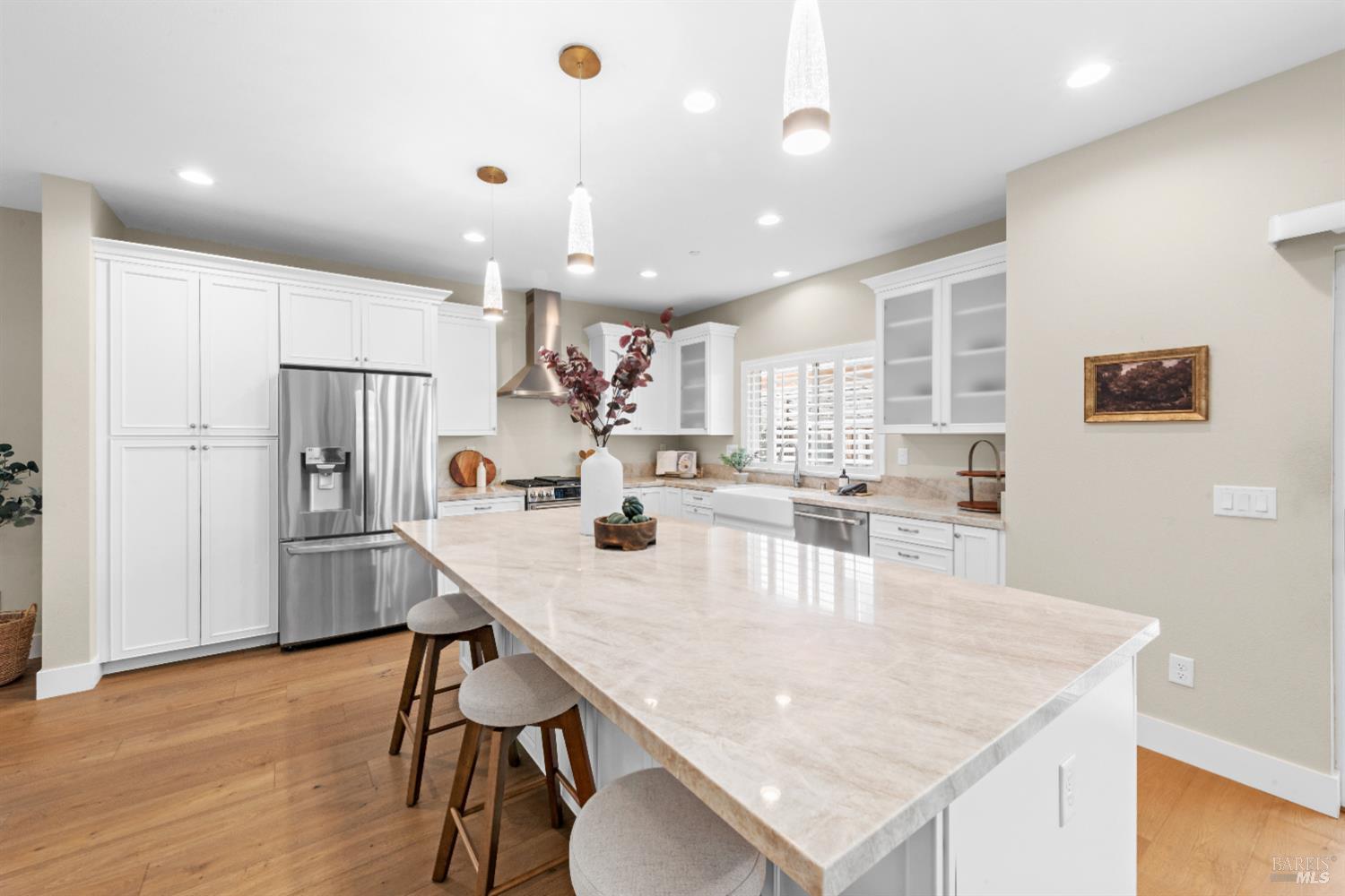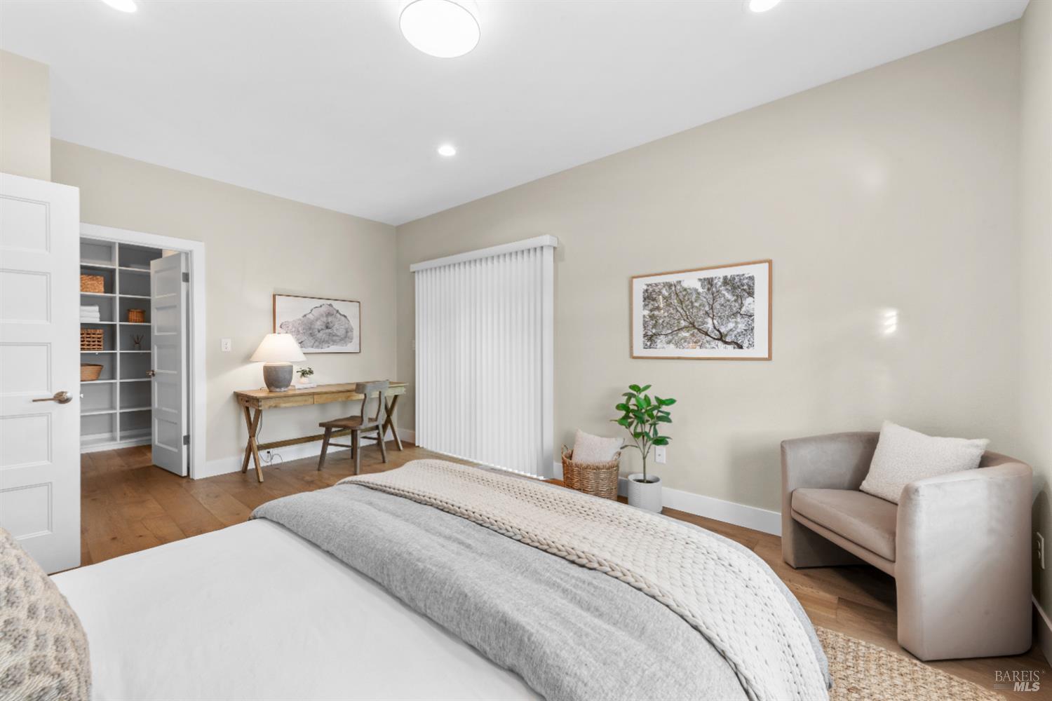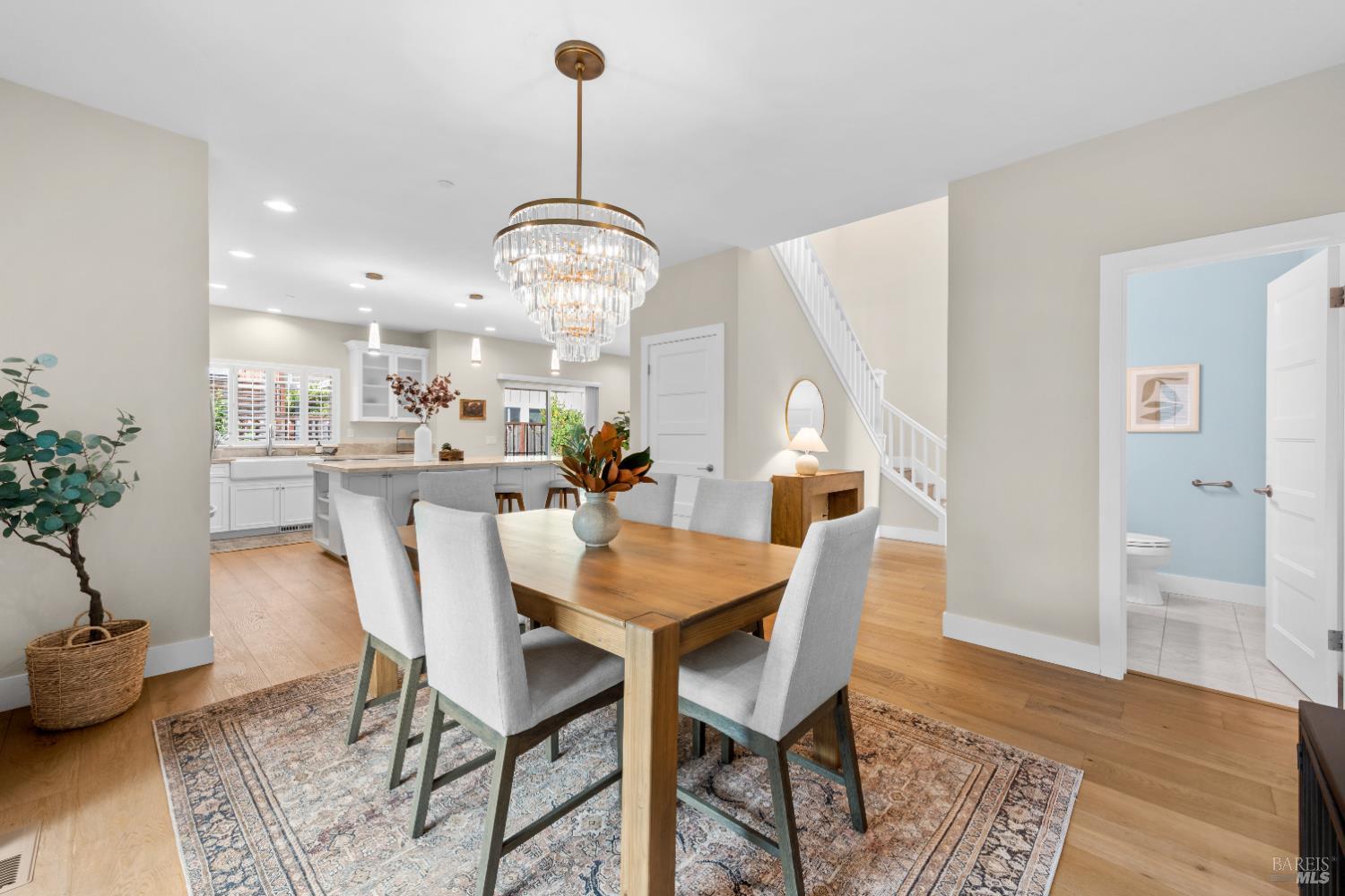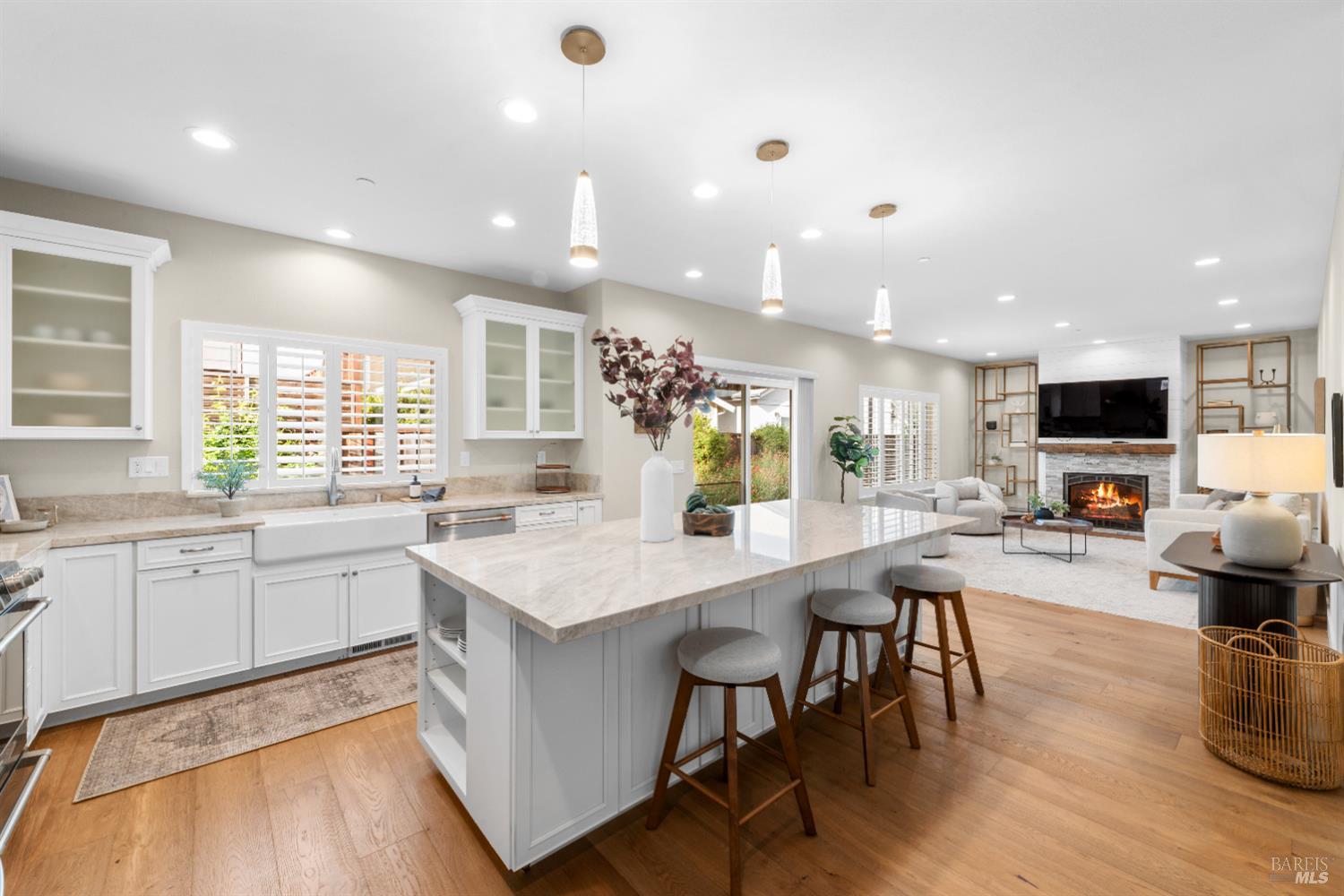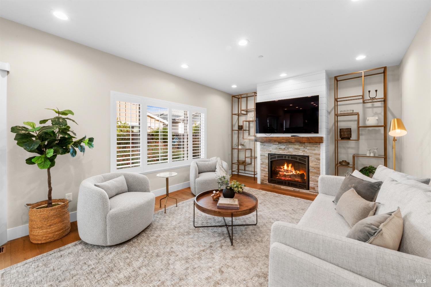 Modern elegance meets everyday comfort at 2017 Shelbourne Way. Nestled on a quiet cul-de-sac in NW Santa Rosa, this 5-year-old Tuxhorn-built home offers 2,323 sq. ft. of light-filled living with soaring ceilings, oversized windows, and wide-plank French oak floors. The chef's kitchen features a stunning Taj Mahal quartzite island and connects seamlessly to open dining and family spaces. Two en-suites, one upstairs and one downstairs, create ideal flexibility for guests or multi-generational living. Sliding doors on three sides lead to patios and a tranquil garden, perfect for entertaining or unwinding. Modern conveniences include owned solar, dual laundry hookups, and a 3-car garage with storage or workshop potential. Just steps to Coffey Park, playgrounds, and a popular dog park, this home blends quality, convenience, and community in one exceptional setting.