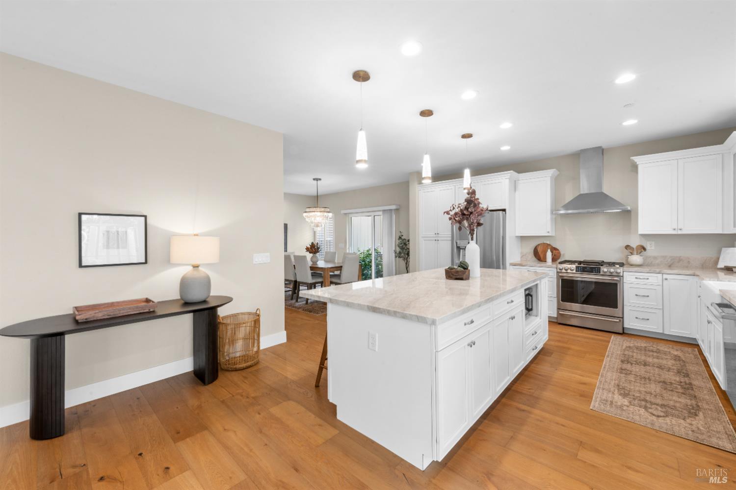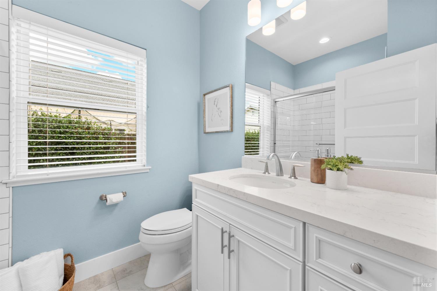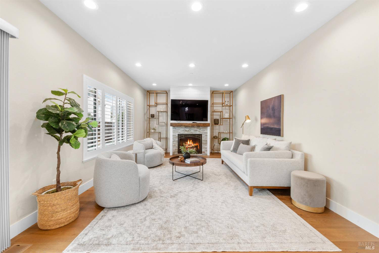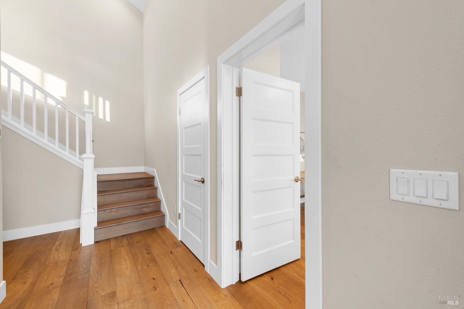Modern elegance meets everyday comfort at 2017 Shelbourne Way. Nestled on a quiet cul-de-sac in NW Santa Rosa, this 5-year-old Tuxhorn-built home offers 2,323 sq. ft. of light-filled living with soaring ceilings, oversized windows, and wide-plank French oak floors. The chef's kitchen features a stunning Taj Mahal quartzite island and connects seamlessly to open dining and family spaces. Two en-suites, one upstairs and one downstairs, create ideal flexibility for guests or multi-generational living. Sliding doors on three sides lead to patios and a tranquil garden, perfect for entertaining or unwinding. Modern conveniences include owned solar, dual laundry hookups, and a 3-car garage with storage or workshop potential. Just steps to Coffey Park, playgrounds, and a popular dog park, this home blends quality, convenience, and community in one exceptional setting.