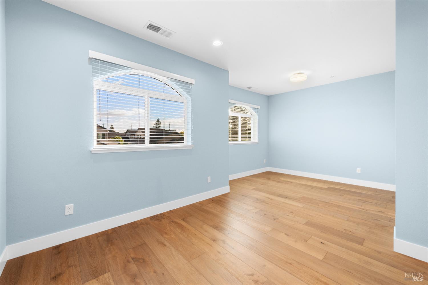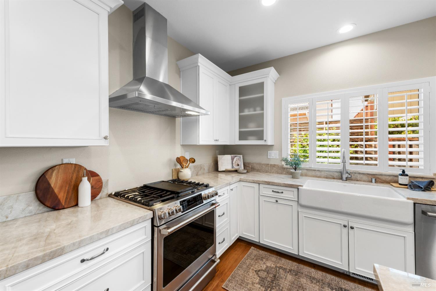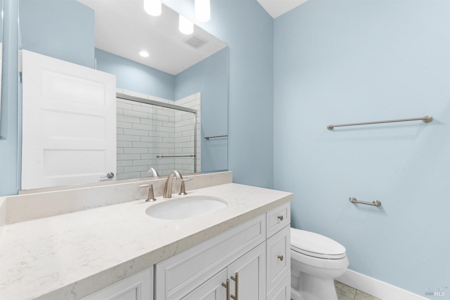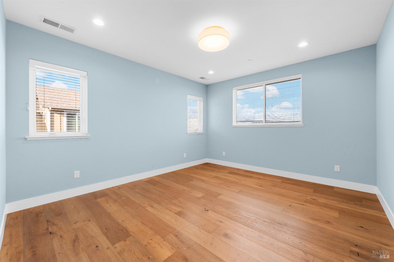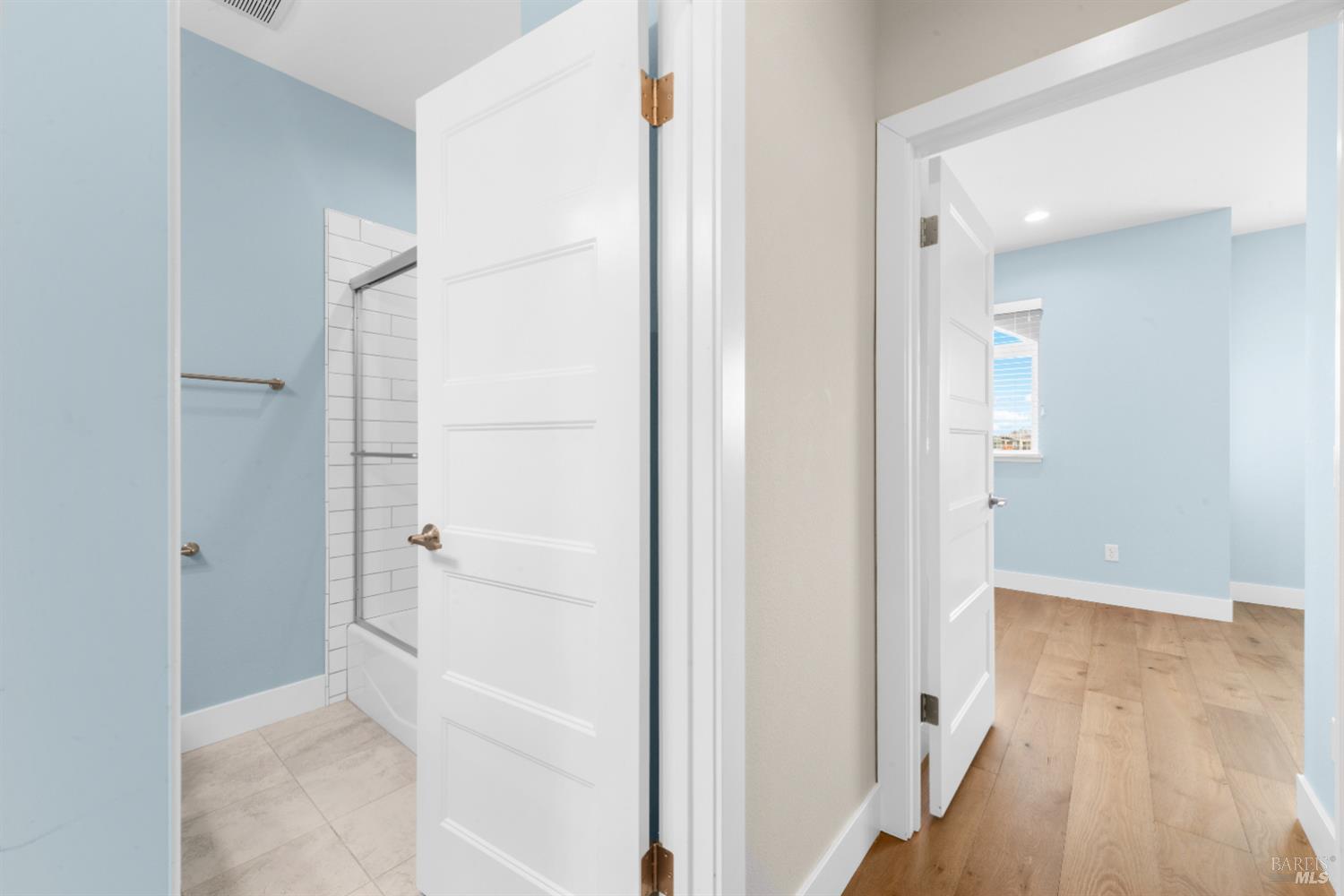 Modern elegance meets everyday comfort at 2017 Shelbourne Way. Nestled on a quiet cul-de-sac in NW Santa Rosa, this 5-year-old Tuxhorn-built home offers 2,323 sq. ft. of light-filled living with soaring ceilings, oversized windows, and wide-plank French oak floors. The chef's kitchen features a stunning Taj Mahal quartzite island and connects seamlessly to open dining and family spaces. Two en-suites, one upstairs and one downstairs, create ideal flexibility for guests or multi-generational living. Sliding doors on three sides lead to patios and a tranquil garden, perfect for entertaining or unwinding. Modern conveniences include owned solar, dual laundry hookups, and a 3-car garage with storage or workshop potential. Just steps to Coffey Park, playgrounds, and a popular dog park, this home blends quality, convenience, and community in one exceptional setting.
