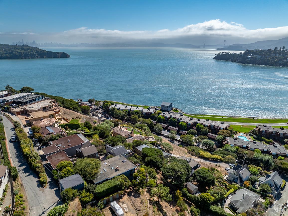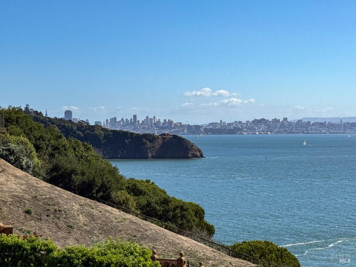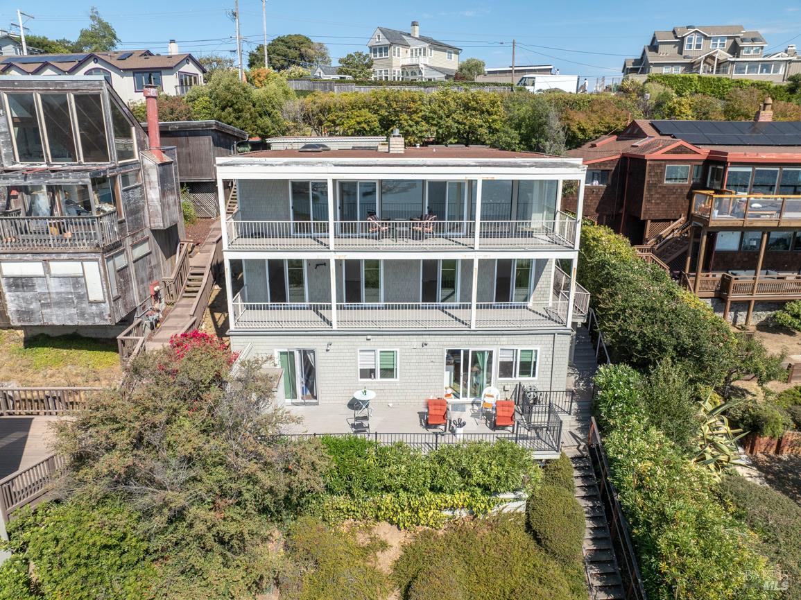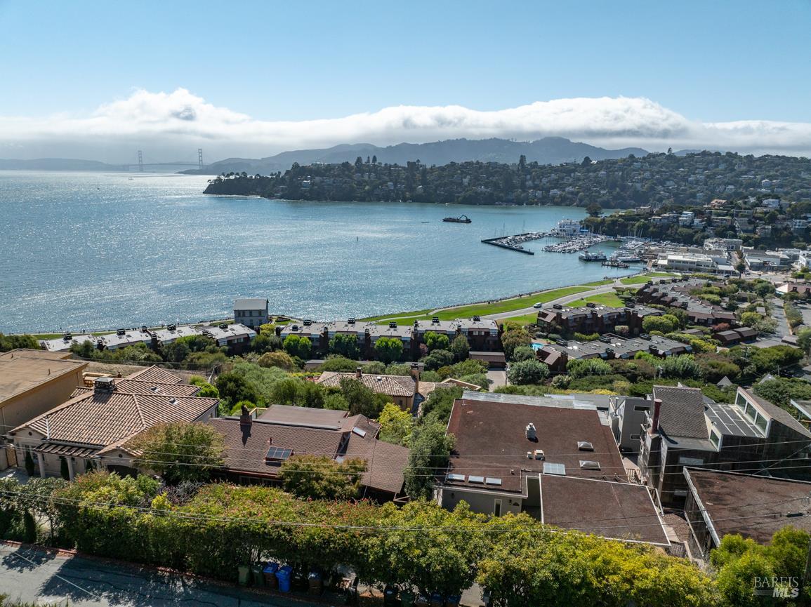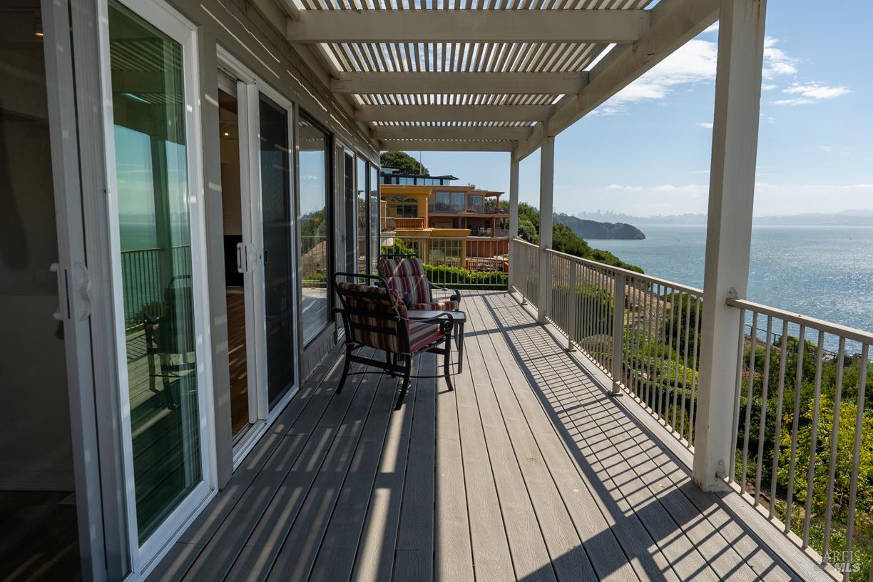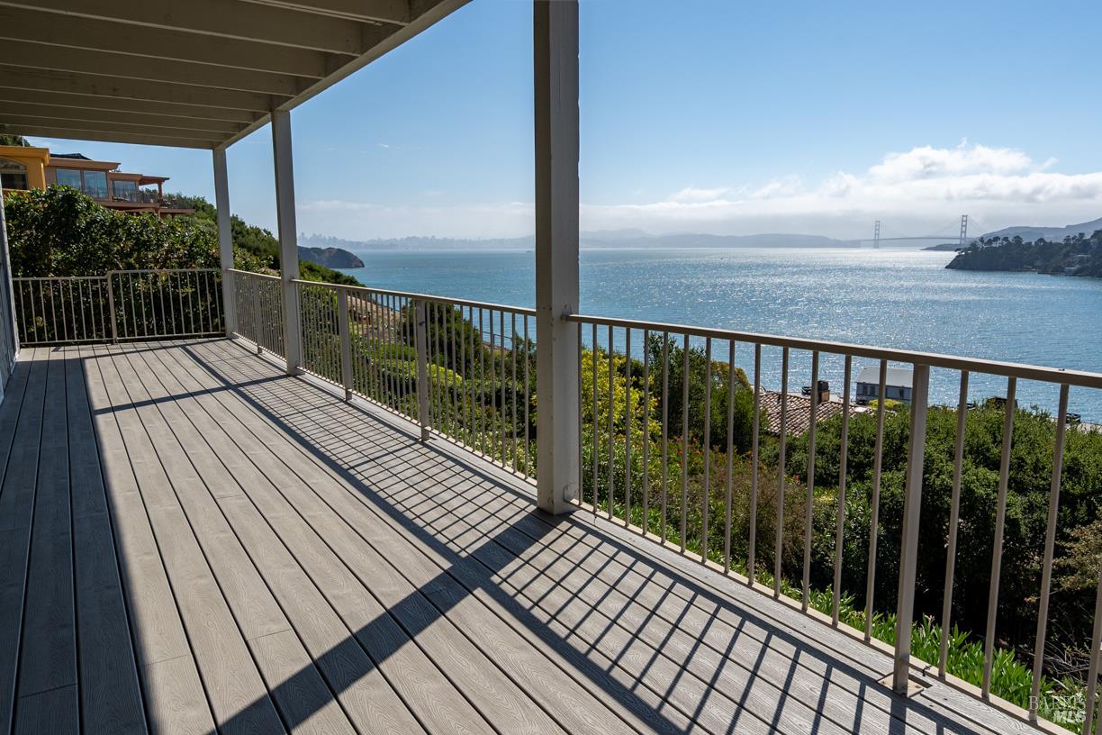 Enjoy stunning sunsets and some of the most prized vistas in all of Tiburon. Easy walk to town via the adjacent staircase on Centro West. This home offers a lovely open living plan with floor to ceiling windows on both levels. The upper (entry) floor includes the kitchen, living and dining rooms, as well the primary bedroom suite. The main rooms of the home and the three lower bedrooms open to an attached deck, offering plenty of outdoor living. There is a great room and office space on the lower level. Two car covered parking with adjacent storage areas.