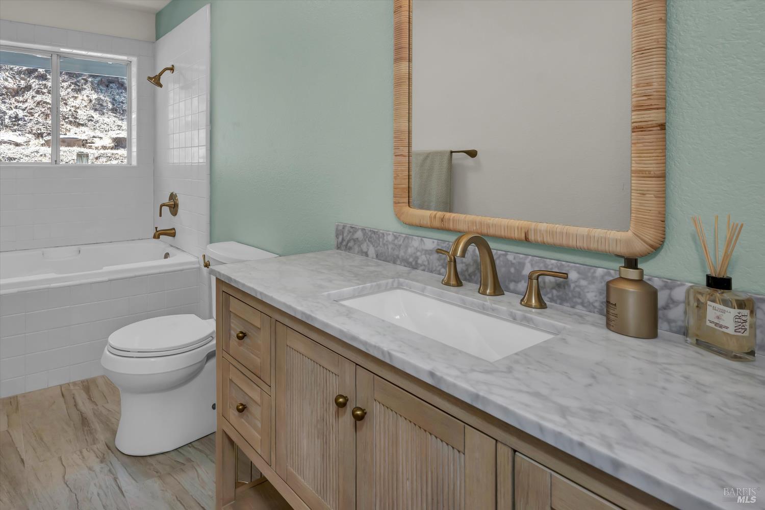 Beautifully Updated Home with Stunning Views and Modern Amenities ~ Welcome home, to your 3-bedroom, 2-bathroom oasis with a brand-new roof, redwood deck, fresh paint inside & out, and upgraded interior. The living area is all on one level, making it very convenient. The refreshed kitchen features Whirlpool appliances, shaker cabinets, granite countertops and Carrera marble-style vinyl flooring. Bedrooms have plush new Shaw carpeting and there are stylish lighting fixtures (Quoizel and Kichler) throughout. Skylights in the primary bedroom and kitchen enhance the natural light and inviting feel. Enjoy light oak hardwood flooring in the living room and updated tile in the bathrooms. Indoor laundry room has extra storage. The property also includes an oversized garage with room for storage and a work area. Prepare to be captivated by the vast and amazing mountain and valley panoramas, showcasing Putah Creek and the dramatic palisades, in addition to vistas of Guenoc/Langtry vineyards in the distance. Join the voluntary POA for $150 per year, visit Putah Creek and the marina. Located near Napa Valley's restaurants and wineries, this home is under 2 hours' drive to San Francisco. Don't miss out on this incredible opportunity! Schedule a viewing and make this beautiful home yours.