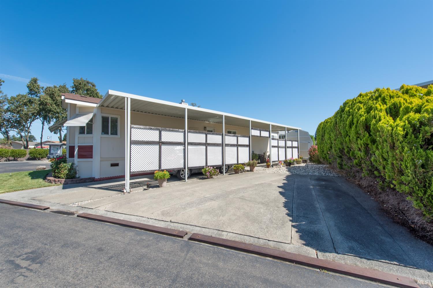 Welcome to Shamrock Mobile Home Community, one of the area's most sought-after 55+ mobile home parks! This spacious 3-bedroom, 2-bath home offers over 1,600 sq. ft. of comfortable living. The beautifully designed kitchen features a center island, Corian counters, stainless steel appliances, and a sunny dinette area perfect for casual meals. A vaulted-ceiling family room with skylights and a cozy gas fireplace creates a warm and inviting atmosphere, while a separate dining room is ideal for entertaining. The generous primary suite includes a walk-in closet and a large bathroom with dual sinks. Enjoy relaxing outdoors on the covered front deck, and appreciate the convenience of covered parking plus an additional space that fits two cars. A handy storage shed is included as well. Shamrock offers wonderful amenities including a pool, clubhouse, and a variety of community activities all in a welcoming, well-maintained setting. Don't miss the opportunity to make this beautiful home yours!