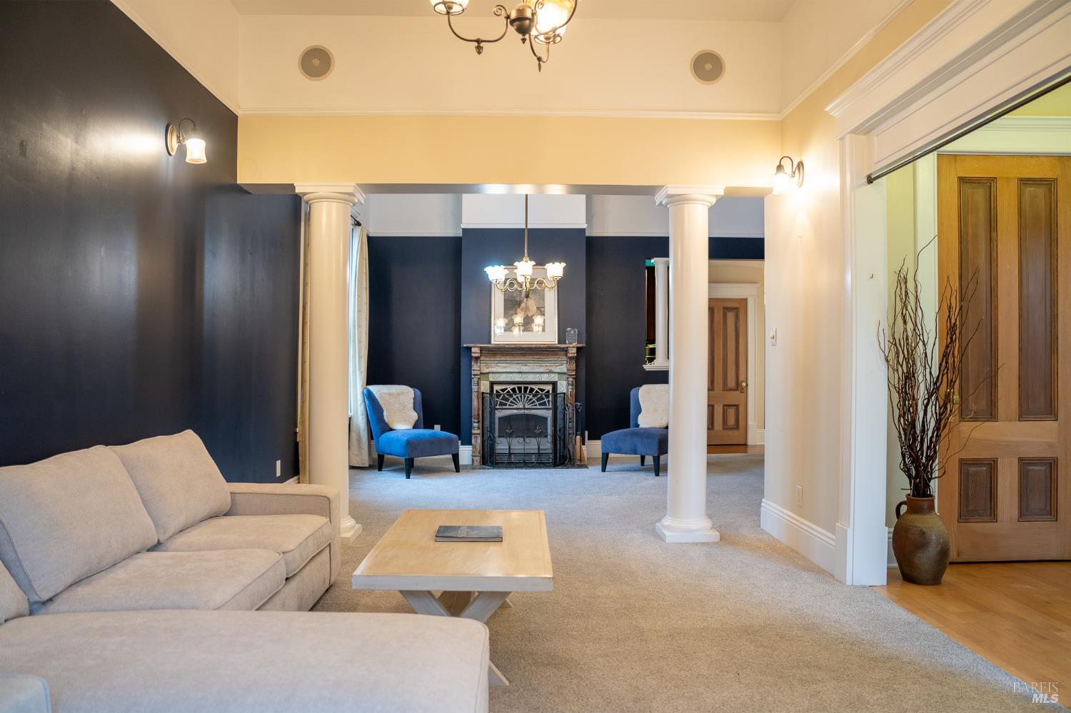 Award-winning heritage Victorian in the city center. Remodeled from top to bottom, this residence is rich in craftsmanship, architectural detail, and timeless charm. Designed with versatility in mind, the property offers an upper (3bd/2ba) and street level (1bd/1ba) living, each with separate entrances and privacy, making this location ideal as a primary residence, multi-generational living, or an investment opportunity. A grand entrance leads into the foyer and onward to open living and dining areas with soaring ceilings, custom fixtures, and refined decor highlighting the home's distinguished character. The lower level provides flexible living space, used as a gym, office, or playroom. A tandem garage with craftwork table and built-in storage ensures functionality for every season. This is style you'll love and an home you'll want to experience everyday.