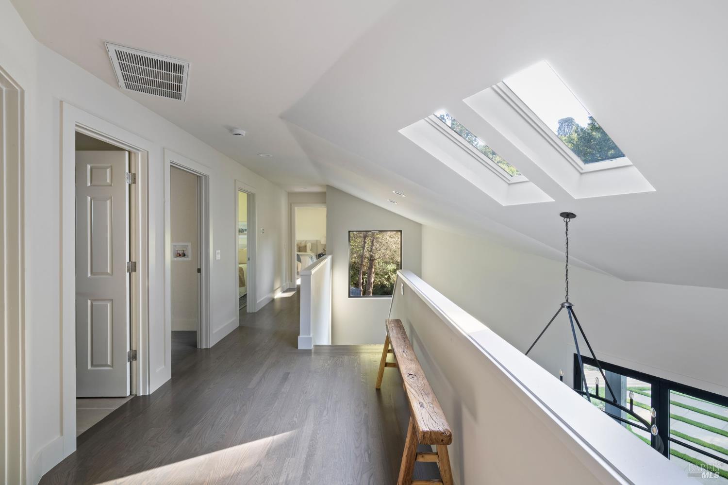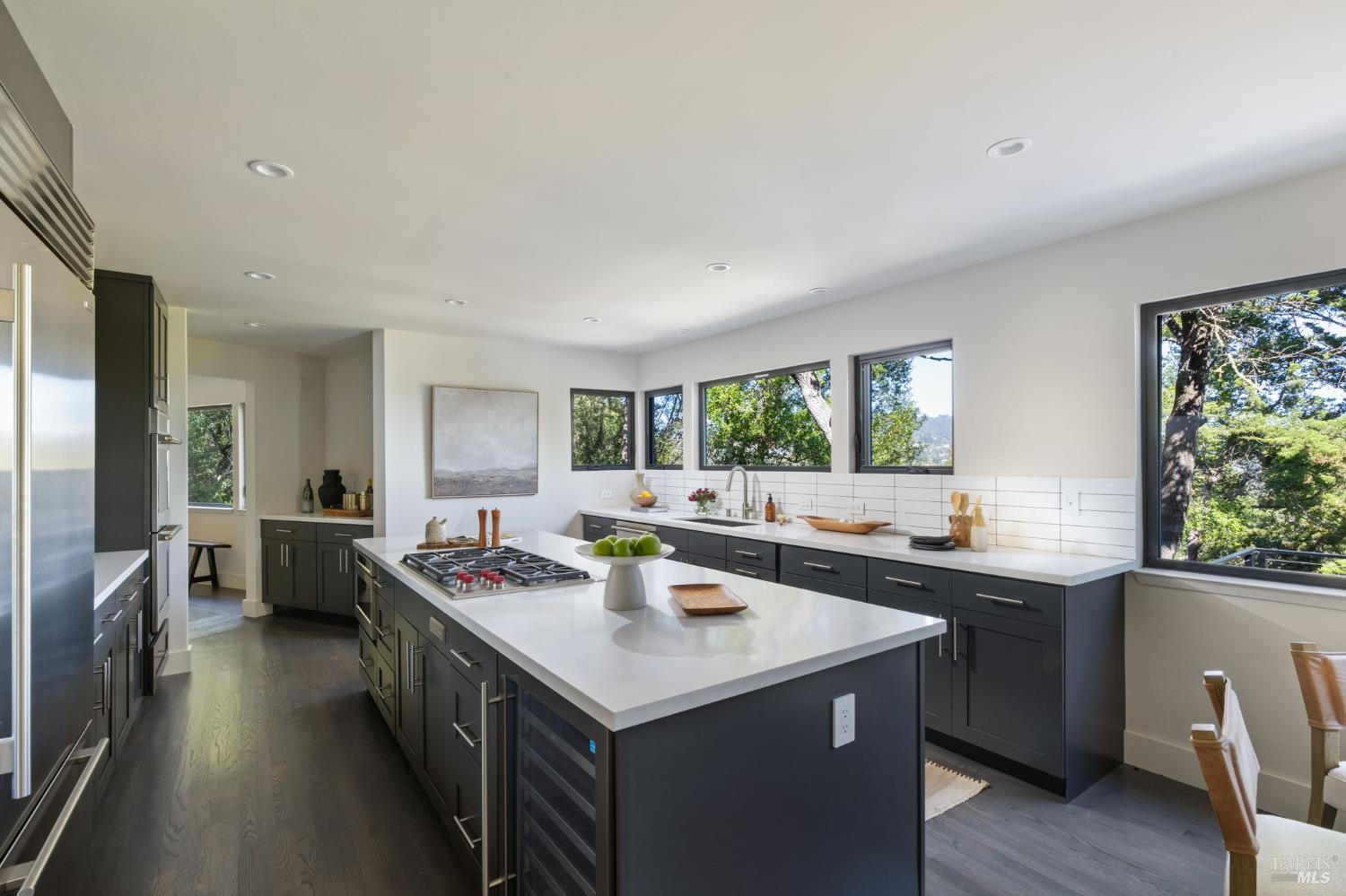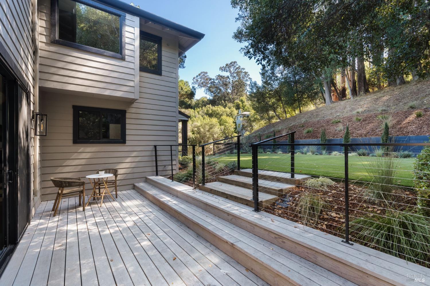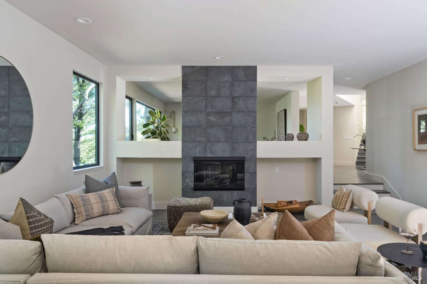 241 Reed Street offers 5,418 sq ft of modern living across a rare 1.12-acre lot in Mill Valley's Homestead Valley. This 5-bedroom, 4.5-bath residence blends sophisticated design with inviting warmth from the skylit entry with steel-framed doors to expansive rooms flooded with natural light and views. Inside, the family room showcases massive windows framing Mill Valley vistas, while the formal dining and living rooms share a double-sided fireplace. The kitchen anchors daily life with its quartz island, Wolf cooktop, Sub Zero refrigerator, all opening to the family room. Upstairs, oversized bedrooms include an expansive primary suite, junior primary and two additional bedrooms. Outdoor living invites with a manicured lawns, a firepit seating area, and a deck overlooking the valley. A detached au pair adds versatility for guests, family, or creative space. The location delivers the best of MV: serene privacy on an expansive lot, yet minutes from downtown's cafes, shops, and restaurants like Le Marais Bakery and Equator Coffee. Mount Tamalpais trails, Muir Woods, Stinson Beach, and Highway 101 access complete the picture. 241 Reed is a rare find offering scale, thoughtful design, and the perfect balance of natural beauty, community, and convenience that defines Mill Valley living