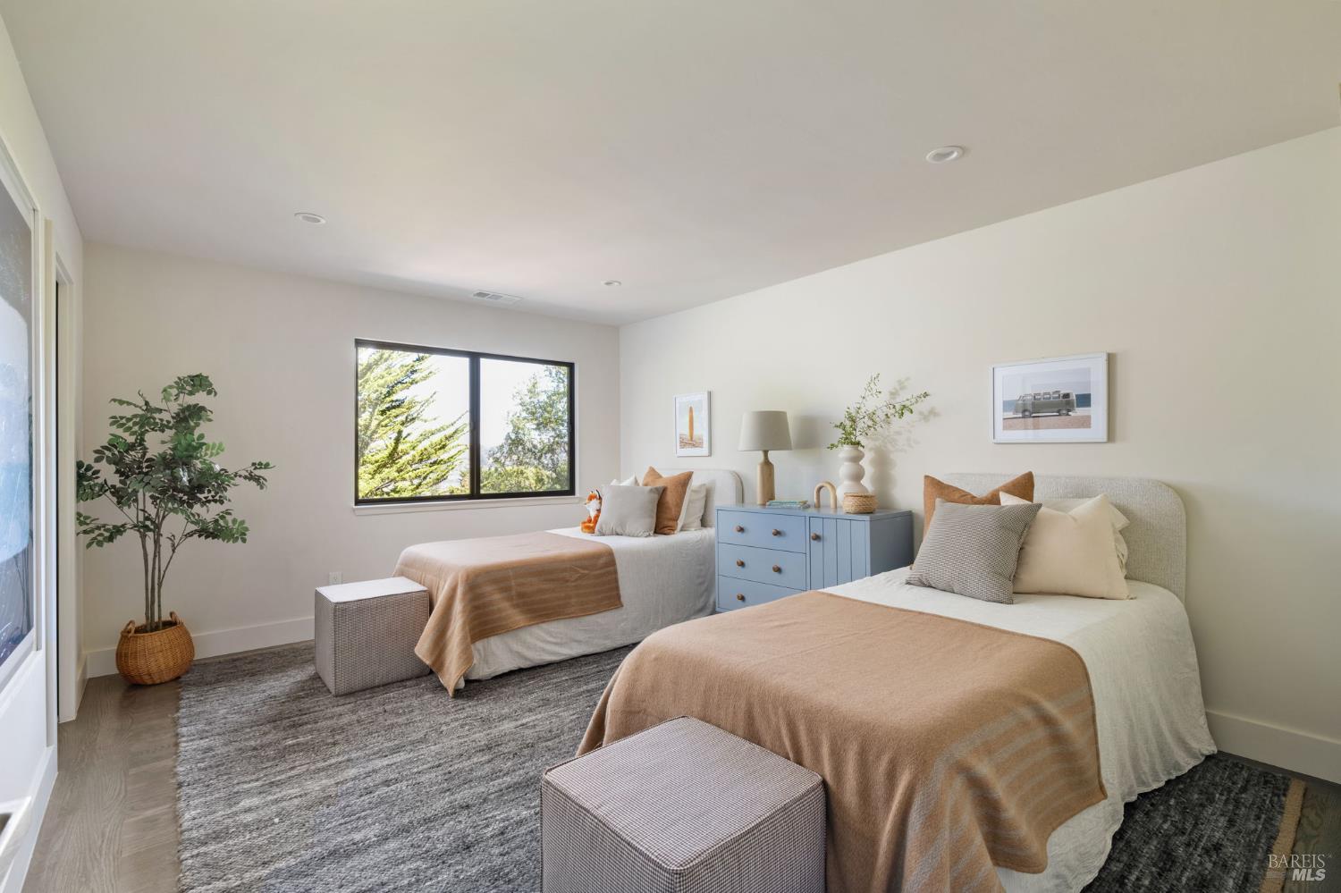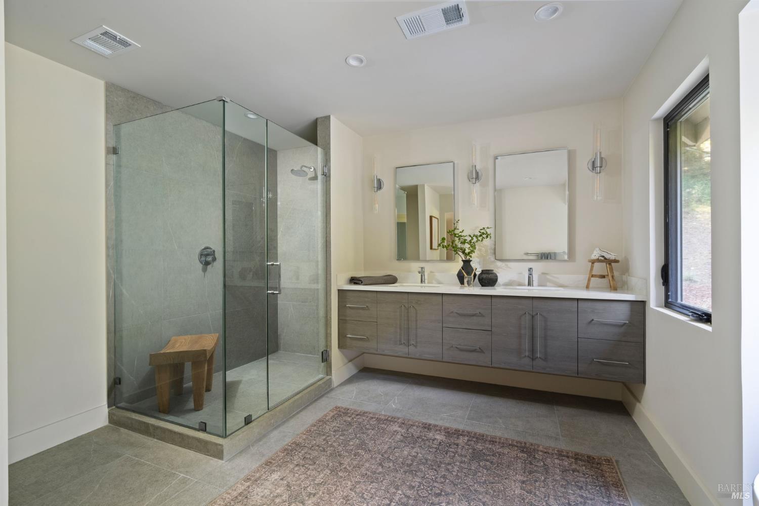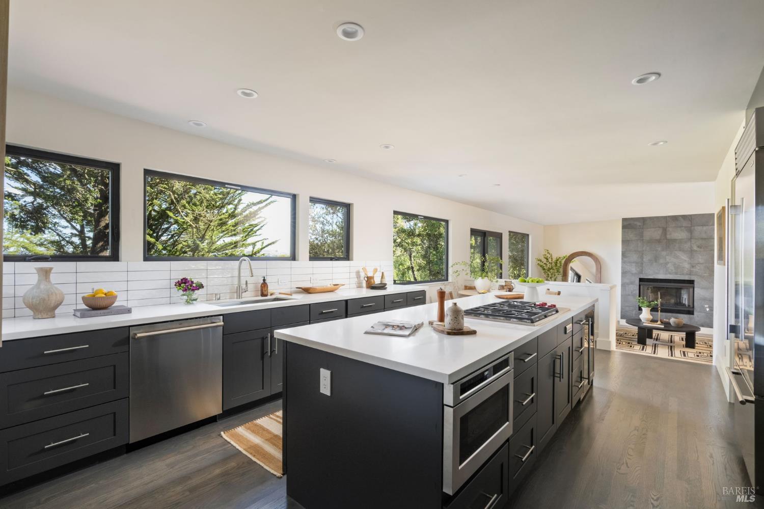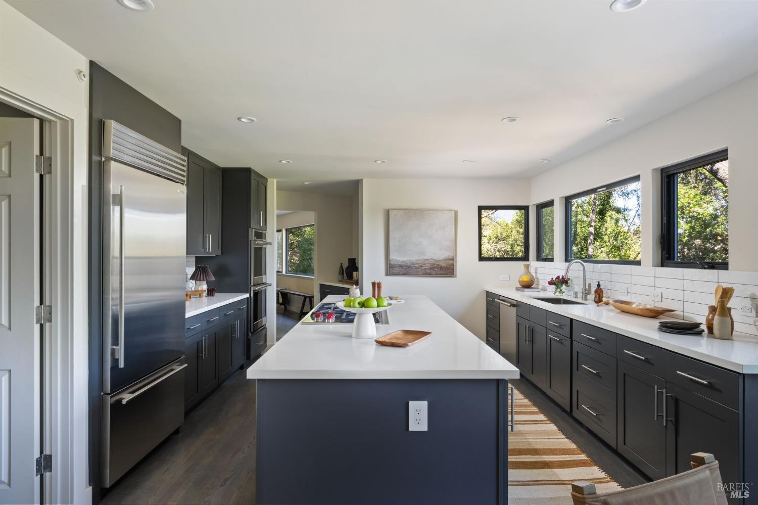 241 Reed Street offers 5,418 sq ft of modern living across a rare 1.12-acre lot in Mill Valley's Homestead Valley. This 5-bedroom, 4.5-bath residence blends sophisticated design with inviting warmth from the skylit entry with steel-framed doors to expansive rooms flooded with natural light and views. Inside, the family room showcases massive windows framing Mill Valley vistas, while the formal dining and living rooms share a double-sided fireplace. The kitchen anchors daily life with its quartz island, Wolf cooktop, Sub Zero refrigerator, all opening to the family room. Upstairs, oversized bedrooms include an expansive primary suite, junior primary and two additional bedrooms. Outdoor living invites with a manicured lawns, a firepit seating area, and a deck overlooking the valley. A detached au pair adds versatility for guests, family, or creative space. The location delivers the best of MV: serene privacy on an expansive lot, yet minutes from downtown's cafes, shops, and restaurants like Le Marais Bakery and Equator Coffee. Mount Tamalpais trails, Muir Woods, Stinson Beach, and Highway 101 access complete the picture. 241 Reed is a rare find offering scale, thoughtful design, and the perfect balance of natural beauty, community, and convenience that defines Mill Valley living