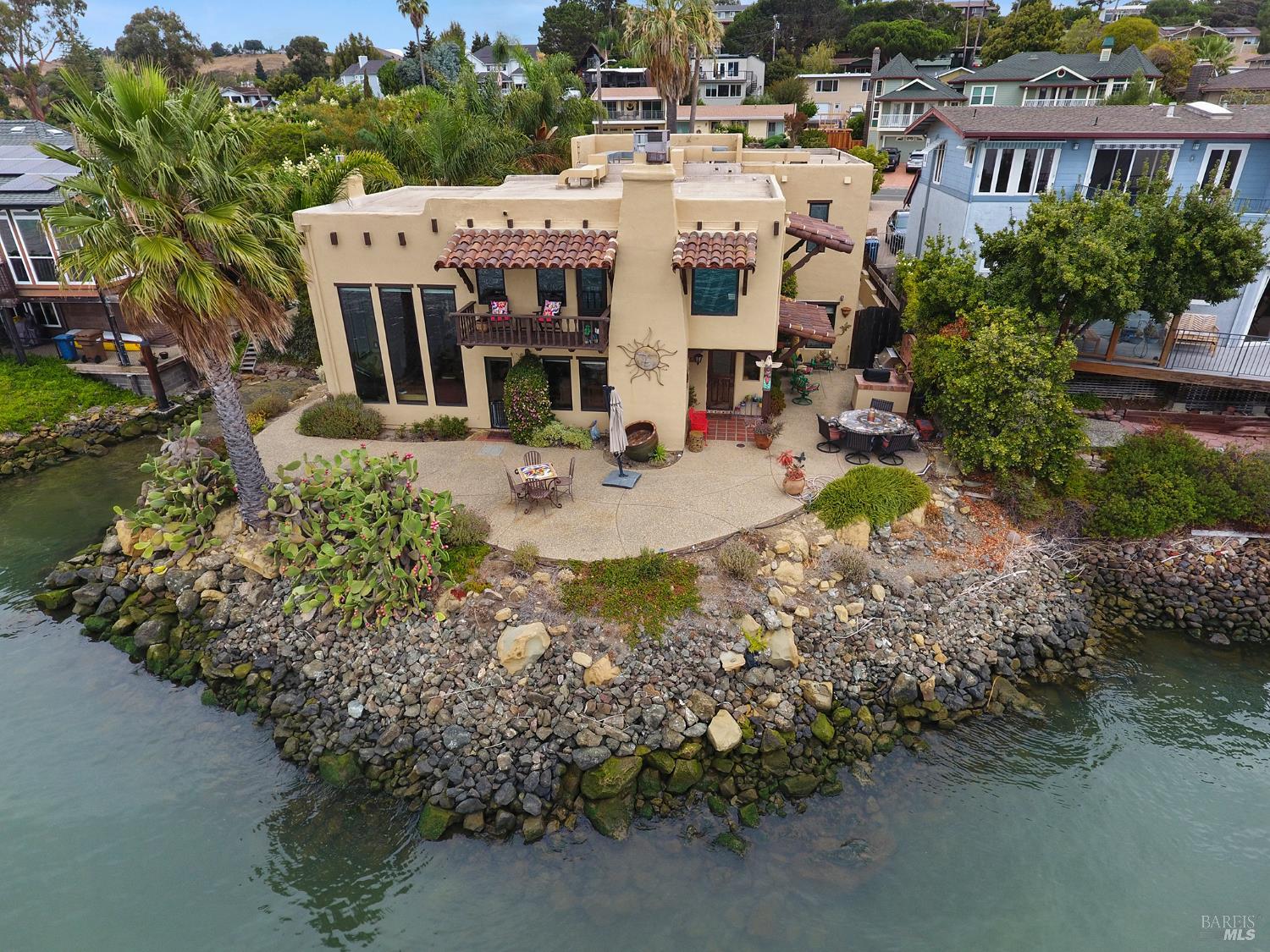 Water front resort living with sweeping views and direct access to the water. The timeless charm in this stunning Hacienda-style home, featuring classic stucco walls, tile floors and rustic wooden beams.The perfect blend of old-world character and modern amenities. The style of this home will make you feel like your vacationing in another county. Enjoy your staycations in downtown Benicia while entertaining year round in two private protected court yards. Three large suites including one on the main level makes this home easy living. Loft/Office with water view for relaxing work days. At the end of the day fall asleep to the sound of the waves gently lapping on the shore. Enjoy effortless access to the water, ideal for launching kayaks, paddleboards, and other watercraft.