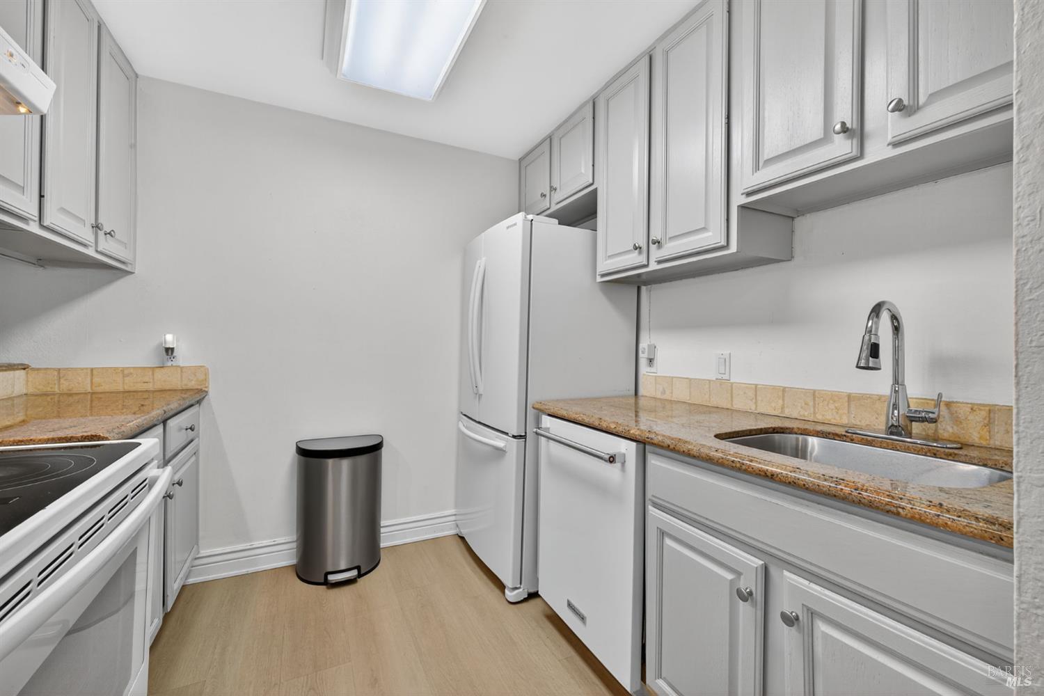 Beautifully refreshed 2-bedroom, 1.5-bath condo in desirable Bennett Valley! This bright, single-level home features new flooring, updated kitchen and baths, A/C, and in-unit laundry. The spacious primary suite opens to a private balcony overlooking the community pool and clubhouse. From your parking spot to the elevator to your front door, you can avoid stairs entirely. Conveniently located near shopping, dining, parks, and easy freeway access. HOA covers water, trash, and sewer, and with no rental restrictions, this is an ideal choice for both homeowners and investors alike!