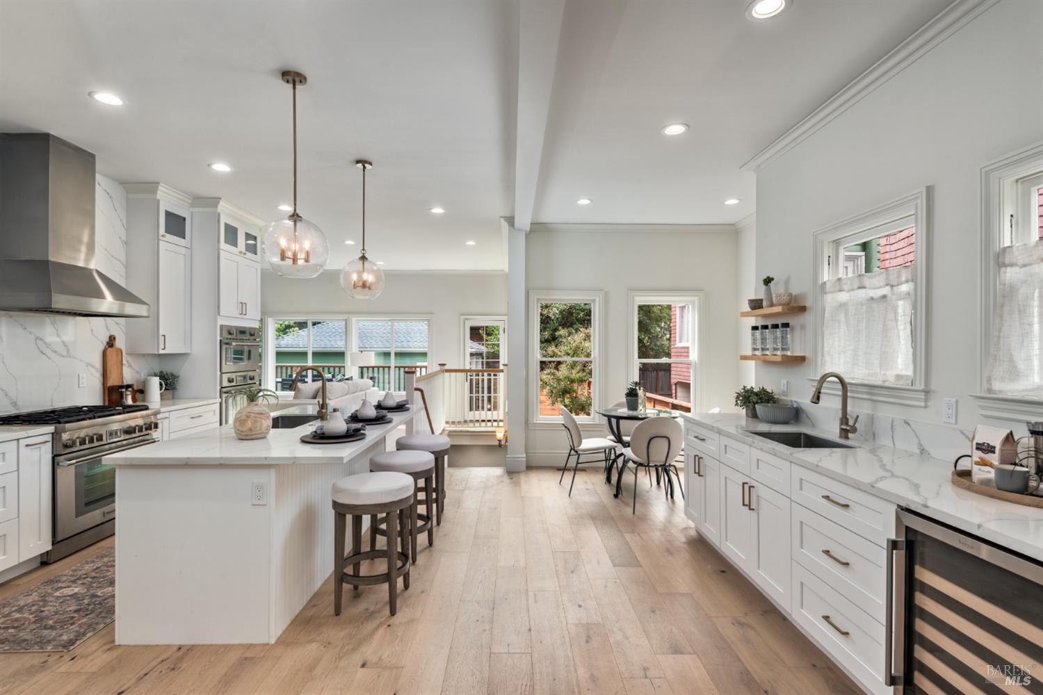Experience the timeless charm of The Hayman House, a fully restored historical Victorian in the heart of Downtown Napa. This 1905 iconic residence has been reimagined to blend classic character with modern luxury. A deep front porch leads to soaring ceilings, wide-plank European oak floors, and a grand staircase framed by original moldings. Light-filled living and dining rooms flow into a stunning chef's kitchen with custom cabinetry, quartz counters, Thermador appliances, large island, walk-in pantry, wet bar, and wine fridge. This 4BD/4.5BA home offers an ensuite bedroom on the main level plus three additional suites upstairs, including a primary retreat with marble bath, double shower, and walk-in closet. Additional highlights include a temperature-controlled wine cellar with tasting lounge, rebuilt recreation room, and oversized two-car garage with EV charger and ADU potential. A bank of windows offers abundant sunlight into the home. Step out onto a redwood deck and landscaped backyard perfect for entertaining. Walking distance from fine dining, wine tasting, and music venues, this is the best of Napa's history and modern lifestyle combined.