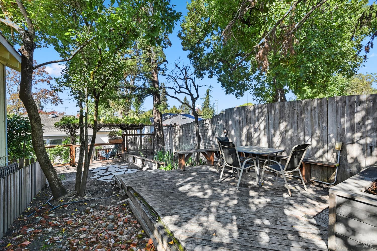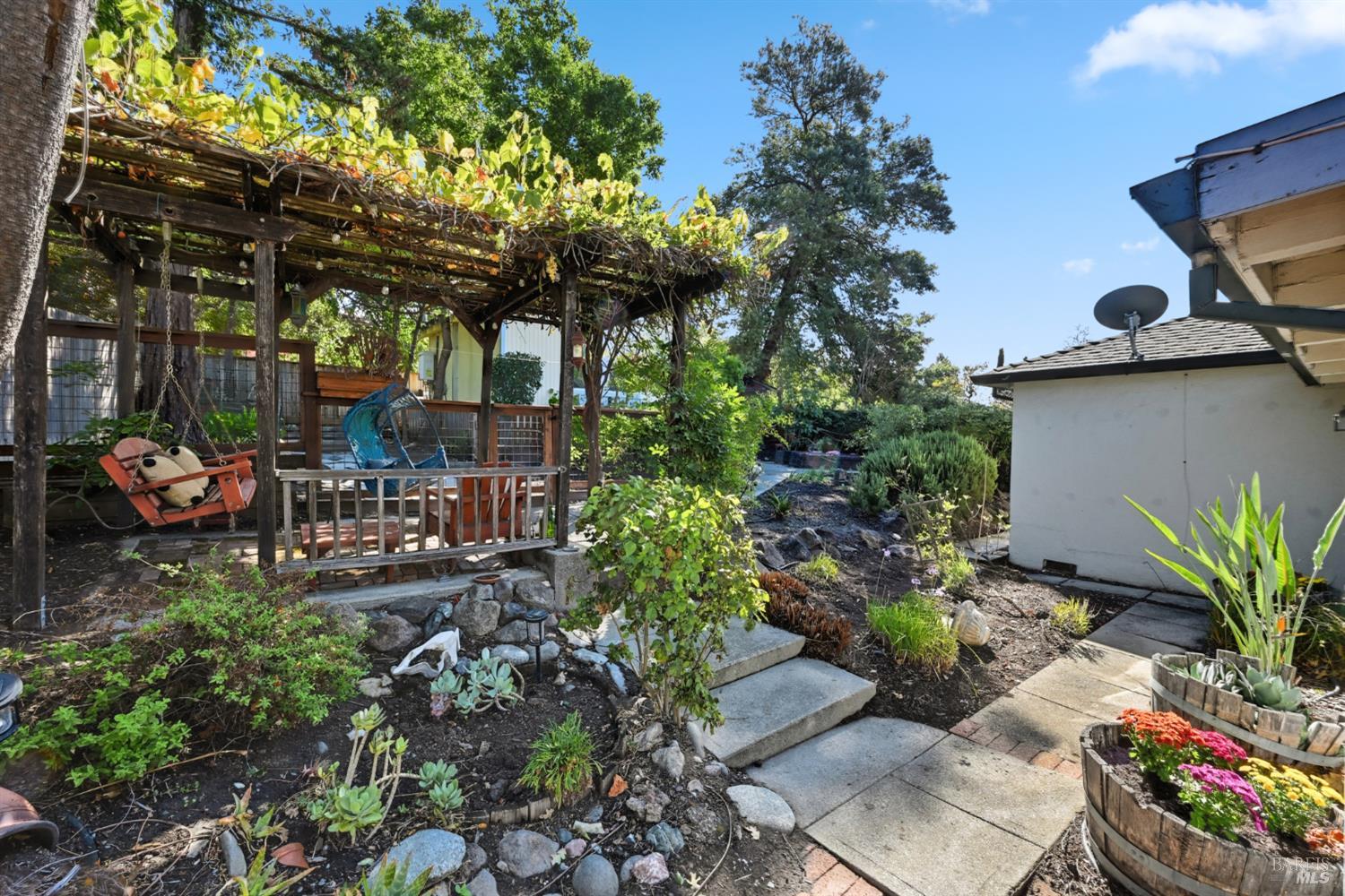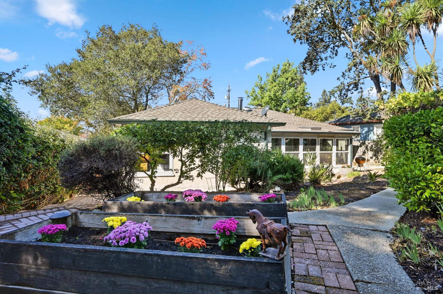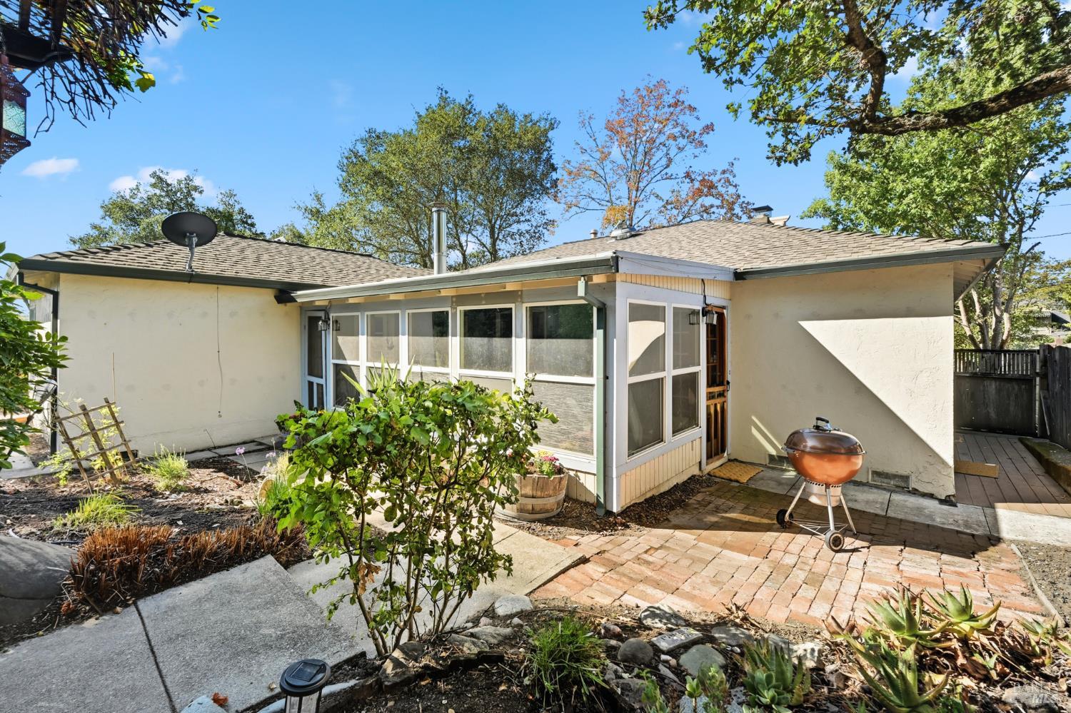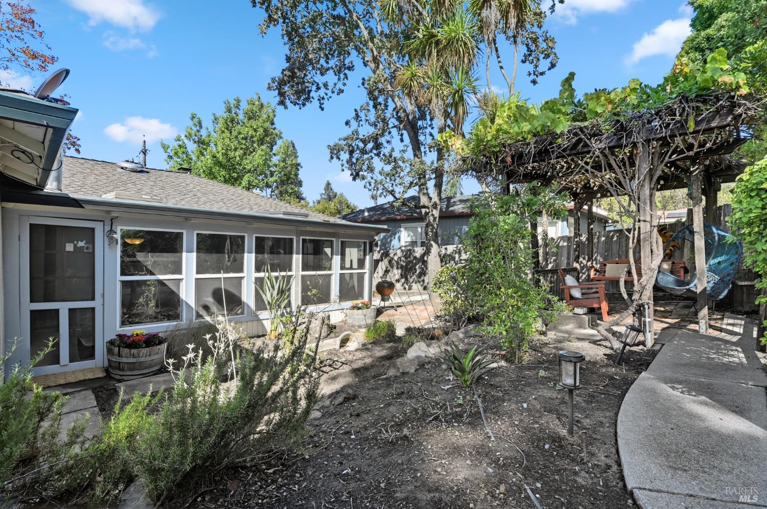 Welcome to this charming mid-century bungalow located in the JC neighborhood. The main home exudes vintage charm and offers 3 bedrooms, 1 bathroom, and approximately 1,260sf of living space. The detached ADU provides the perfect opportunity for income generation, guest quarters, or a private workspace. The studio features high ceilings, a full bath, kitchen, on-demand water heater, fenced yard space, and a deck for relaxing or entertaining. Upon entering the main home, you're greeted by the living room with a wood-burning fireplace and built-in bookshelf. Enjoy a dedicated dining nook and a kitchen with French doors flowing into a spacious, light-filled sunroom. Additional features of the main home include hardwood flooring, a tiled bathroom featuring a separate tub and stall shower, and a dedicated indoor laundry room with a sink. The home also includes an attached single-car garage with an EV charger. Nestled on a generous 6,875sf lot, your private backyard retreat awaits with lush landscaping, vibrant flowers, flourishing fruit trees. Unwind beneath the shaded pergola, where bench and chair seating create a peaceful outdoor escape. Your next chapter awaits in a space where classic character meets everyday comfort!