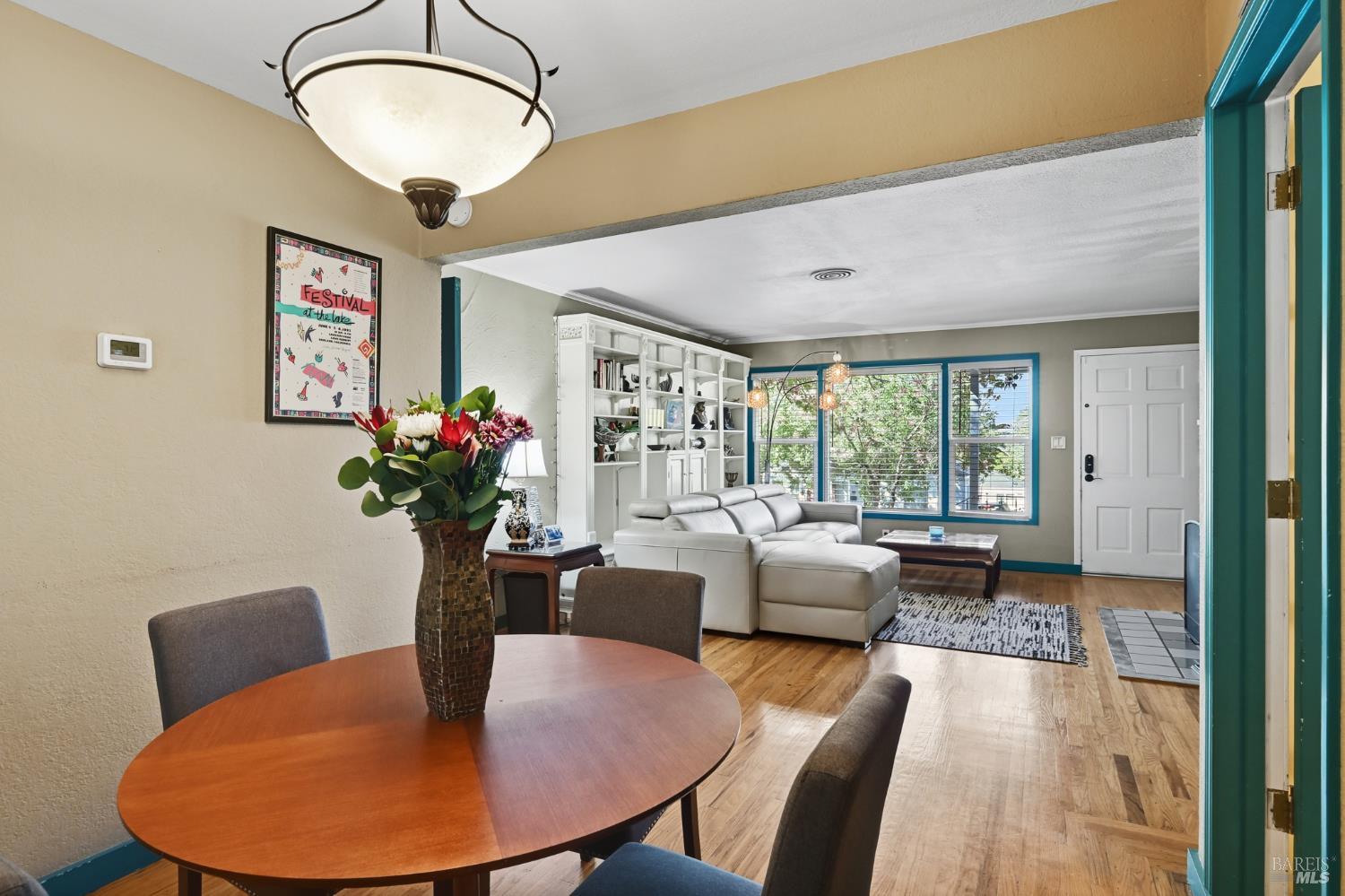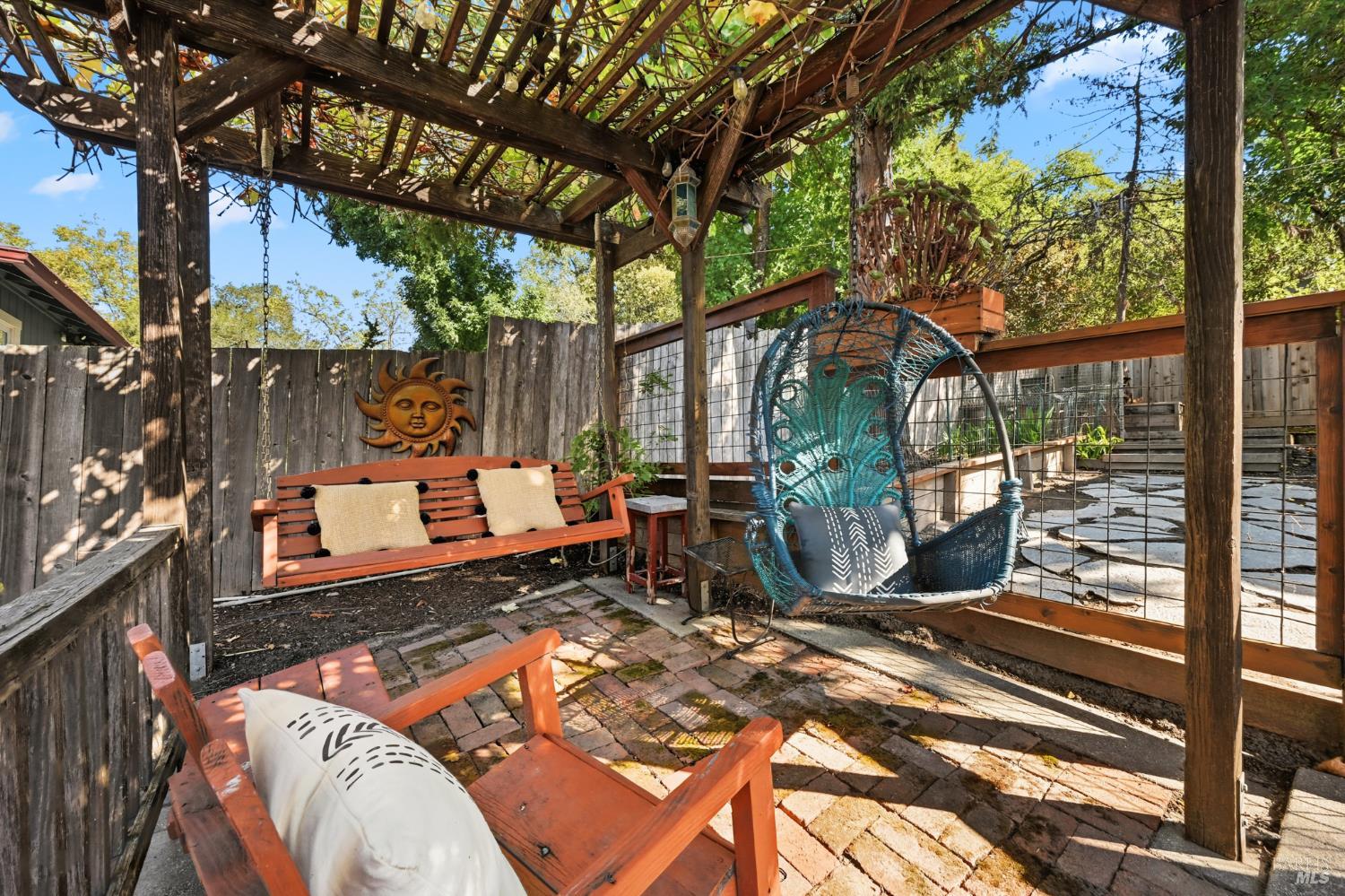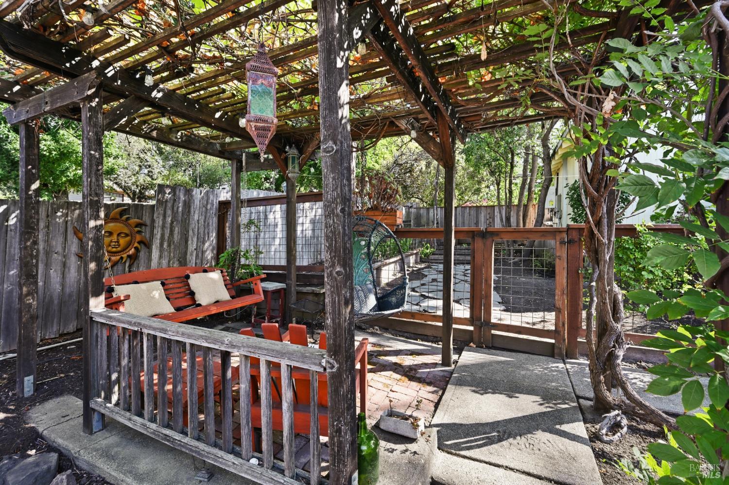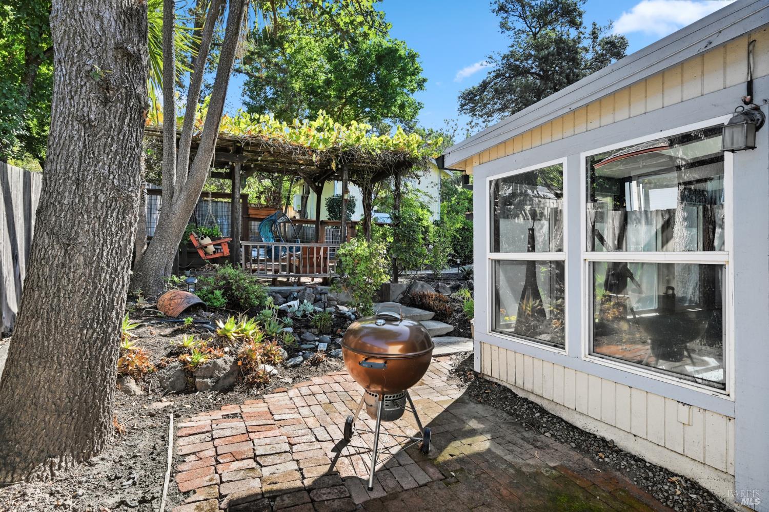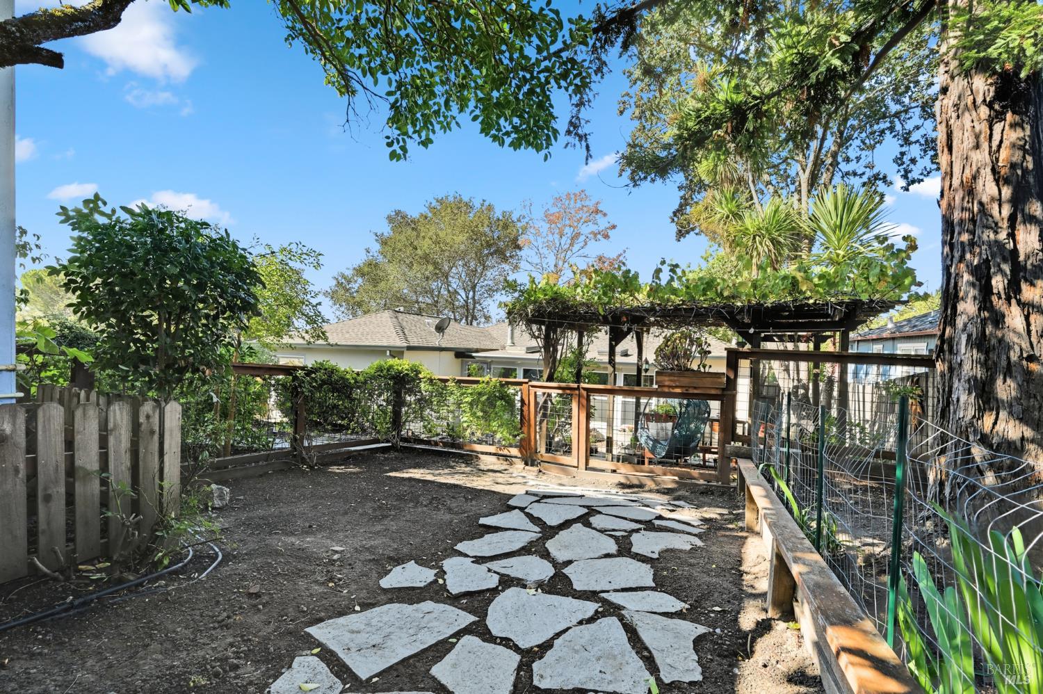 Welcome to this charming mid-century bungalow located in the JC neighborhood. The main home exudes vintage charm and offers 3 bedrooms, 1 bathroom, and approximately 1,260sf of living space. The detached ADU provides the perfect opportunity for income generation, guest quarters, or a private workspace. The studio features high ceilings, a full bath, kitchen, on-demand water heater, fenced yard space, and a deck for relaxing or entertaining. Upon entering the main home, you're greeted by the living room with a wood-burning fireplace and built-in bookshelf. Enjoy a dedicated dining nook and a kitchen with French doors flowing into a spacious, light-filled sunroom. Additional features of the main home include hardwood flooring, a tiled bathroom featuring a separate tub and stall shower, and a dedicated indoor laundry room with a sink. The home also includes an attached single-car garage with an EV charger. Nestled on a generous 6,875sf lot, your private backyard retreat awaits with lush landscaping, vibrant flowers, flourishing fruit trees. Unwind beneath the shaded pergola, where bench and chair seating create a peaceful outdoor escape. Your next chapter awaits in a space where classic character meets everyday comfort!
