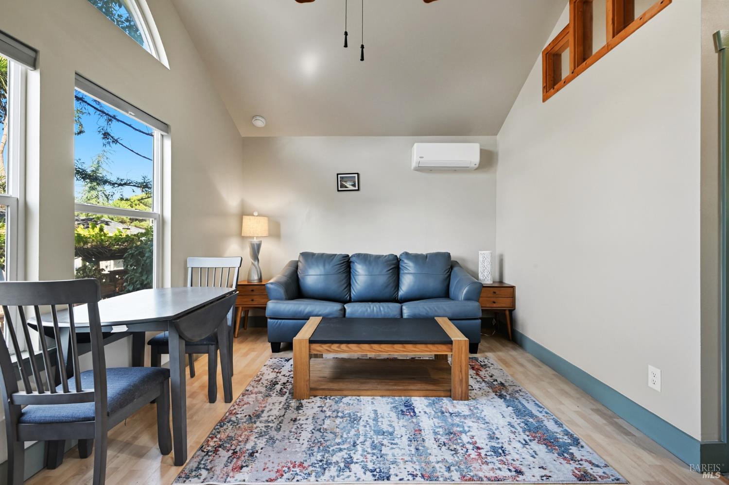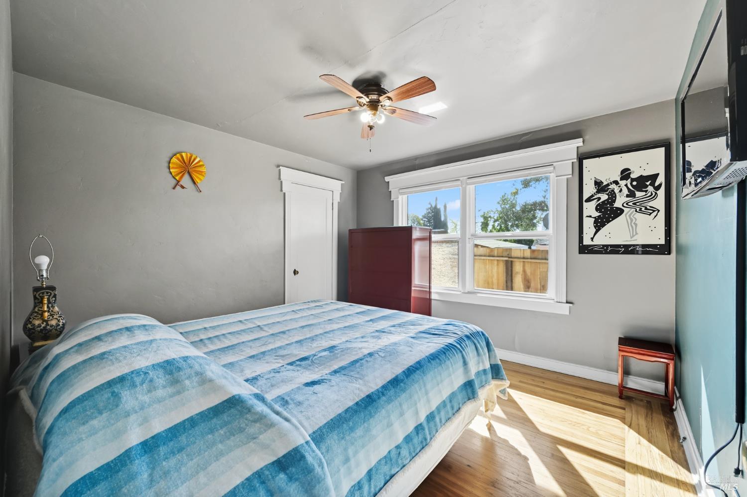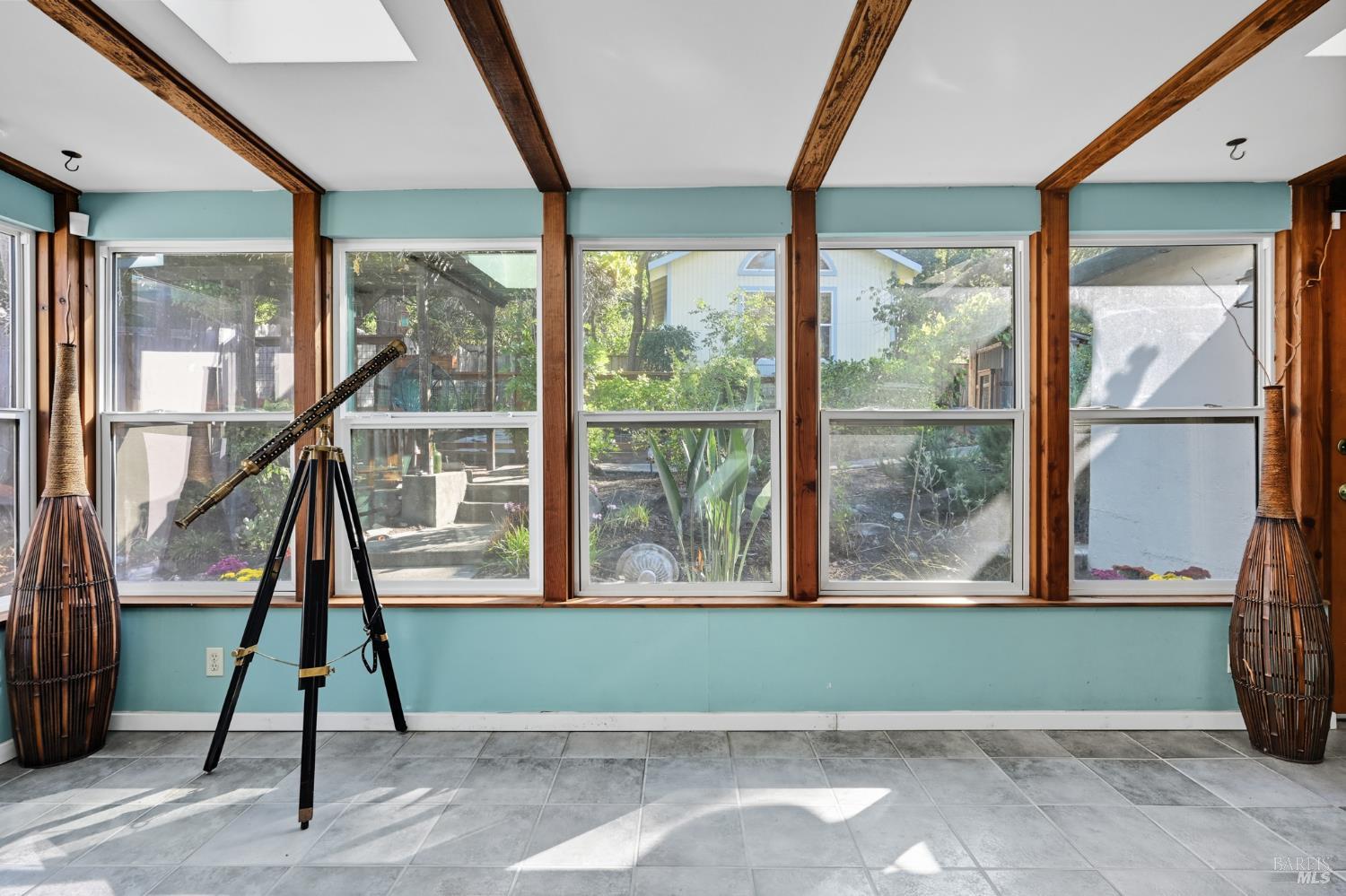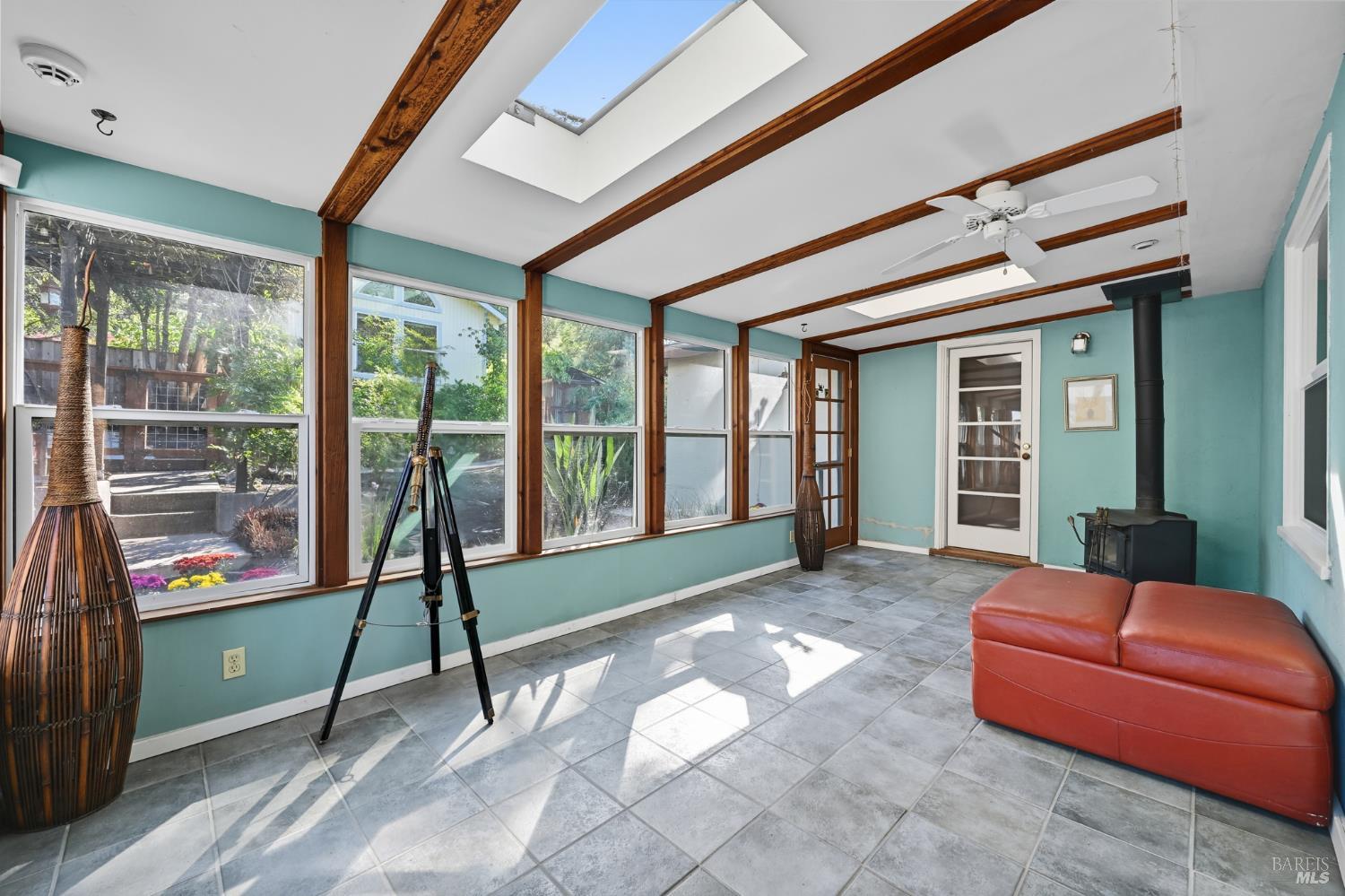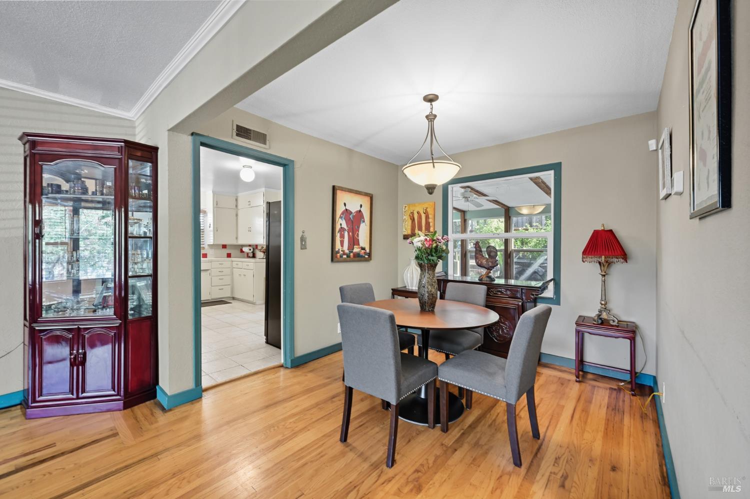 Welcome to this charming mid-century bungalow located in the JC neighborhood. The main home exudes vintage charm and offers 3 bedrooms, 1 bathroom, and approximately 1,260sf of living space. The detached ADU provides the perfect opportunity for income generation, guest quarters, or a private workspace. The studio features high ceilings, a full bath, kitchen, on-demand water heater, fenced yard space, and a deck for relaxing or entertaining. Upon entering the main home, you're greeted by the living room with a wood-burning fireplace and built-in bookshelf. Enjoy a dedicated dining nook and a kitchen with French doors flowing into a spacious, light-filled sunroom. Additional features of the main home include hardwood flooring, a tiled bathroom featuring a separate tub and stall shower, and a dedicated indoor laundry room with a sink. The home also includes an attached single-car garage with an EV charger. Nestled on a generous 6,875sf lot, your private backyard retreat awaits with lush landscaping, vibrant flowers, flourishing fruit trees. Unwind beneath the shaded pergola, where bench and chair seating create a peaceful outdoor escape. Your next chapter awaits in a space where classic character meets everyday comfort!