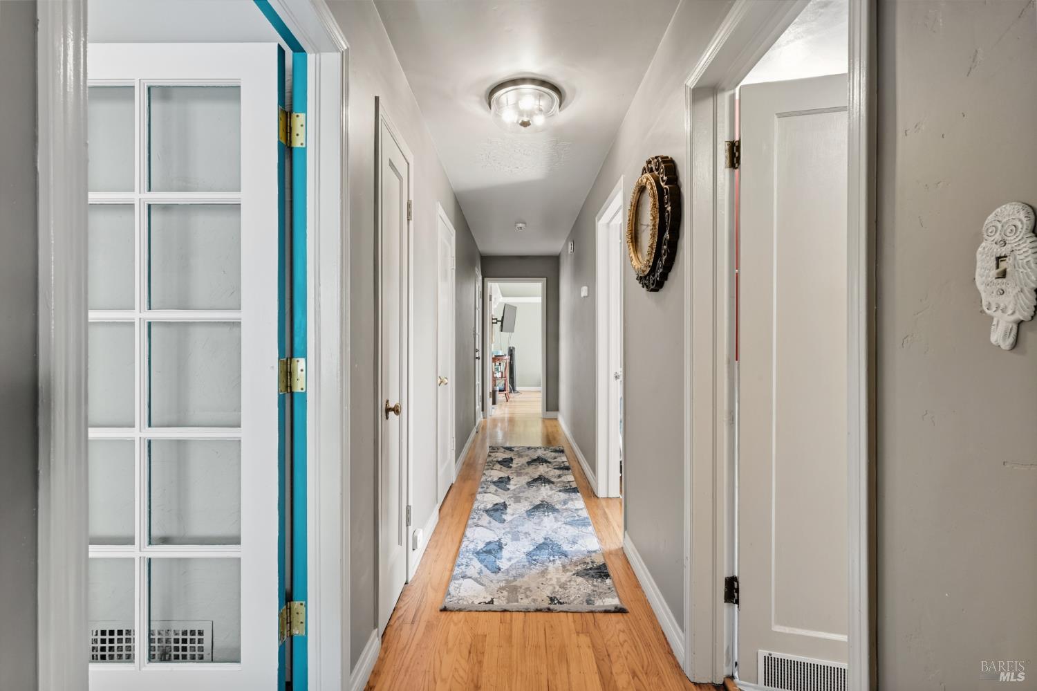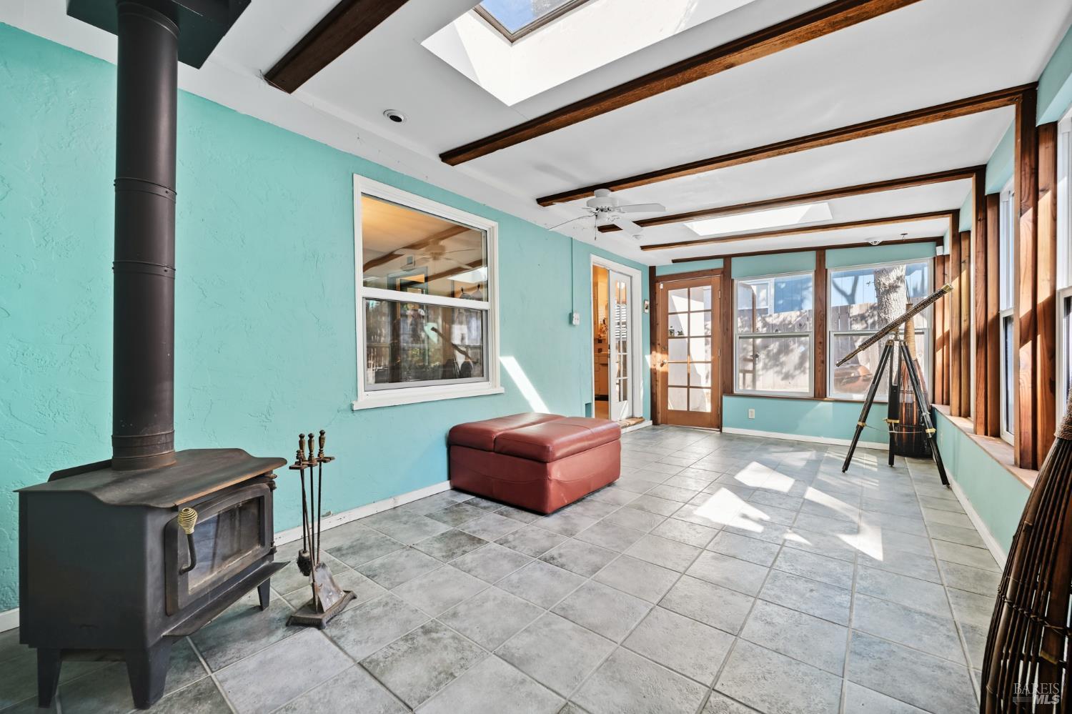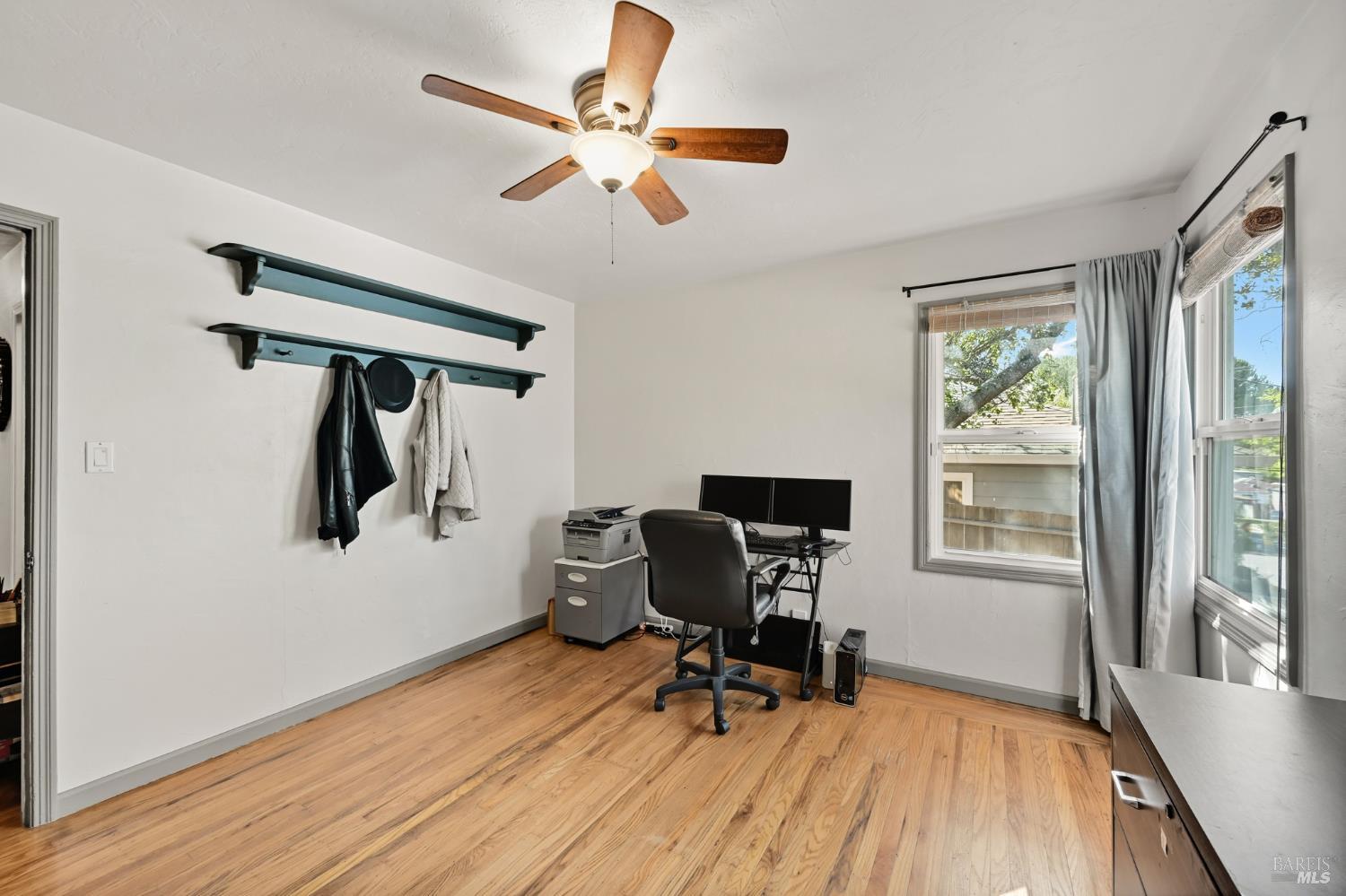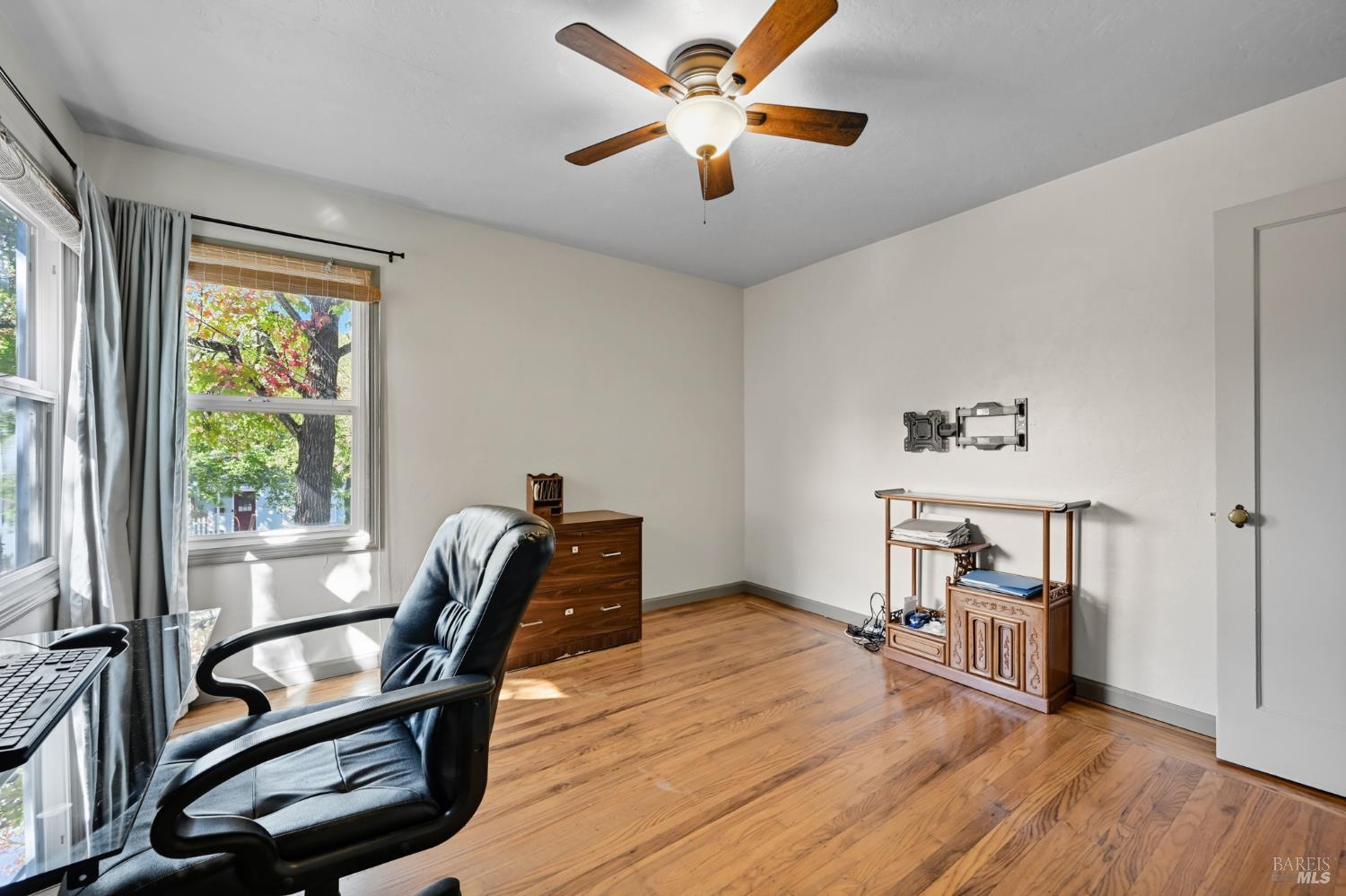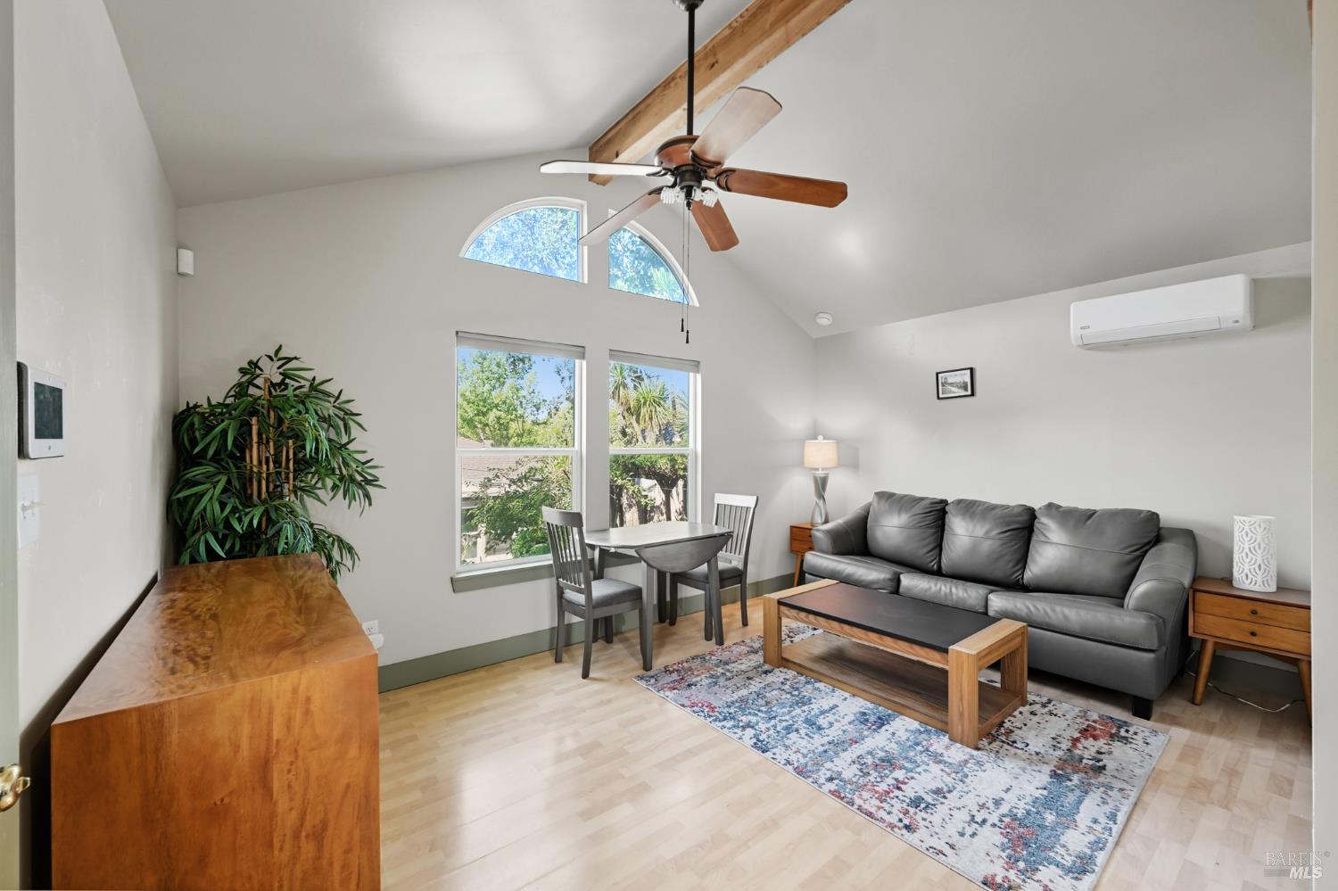 Welcome to this charming mid-century bungalow located in the JC neighborhood. The main home exudes vintage charm and offers 3 bedrooms, 1 bathroom, and approximately 1,260sf of living space. The detached ADU provides the perfect opportunity for income generation, guest quarters, or a private workspace. The studio features high ceilings, a full bath, kitchen, on-demand water heater, fenced yard space, and a deck for relaxing or entertaining. Upon entering the main home, you're greeted by the living room with a wood-burning fireplace and built-in bookshelf. Enjoy a dedicated dining nook and a kitchen with French doors flowing into a spacious, light-filled sunroom. Additional features of the main home include hardwood flooring, a tiled bathroom featuring a separate tub and stall shower, and a dedicated indoor laundry room with a sink. The home also includes an attached single-car garage with an EV charger. Nestled on a generous 6,875sf lot, your private backyard retreat awaits with lush landscaping, vibrant flowers, flourishing fruit trees. Unwind beneath the shaded pergola, where bench and chair seating create a peaceful outdoor escape. Your next chapter awaits in a space where classic character meets everyday comfort!