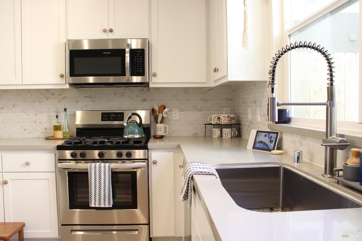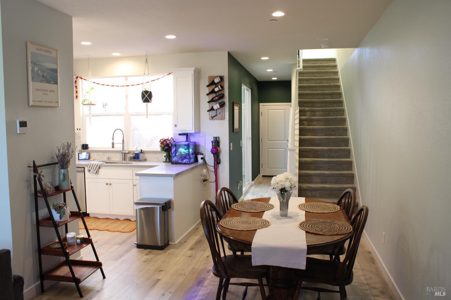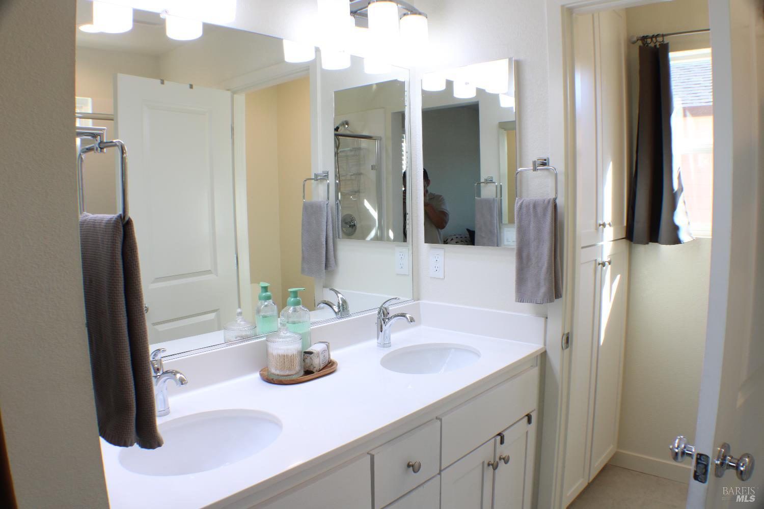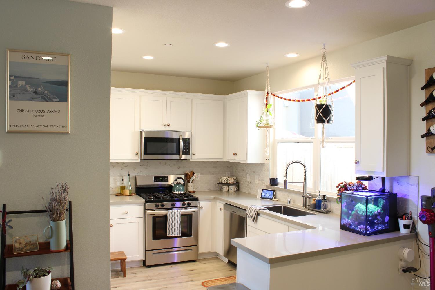 This stylish and energy-efficient 4-bedroom, 2.5 bath Santa Rosa home was built in 2021 and features luxury vinyl plank flooring, a modern kitchen with quartz countertops, designer tile backsplash, shaker style cabinetry and stainless-steel appliances. The spacious primary suite includes coved ceiling with ceiling fan, ensuite bathroom, and ample closet space. Other features include 3-zone heating/cooling, Ceiling fans, and a cozy patio style back yard perfect for barbecues and entertaining, direct access to an oversized 1-car garage with storage, and room for two additional cars to park in the driveway. Conveniently located near schools, parks, shopping centers, and commuter routes.
