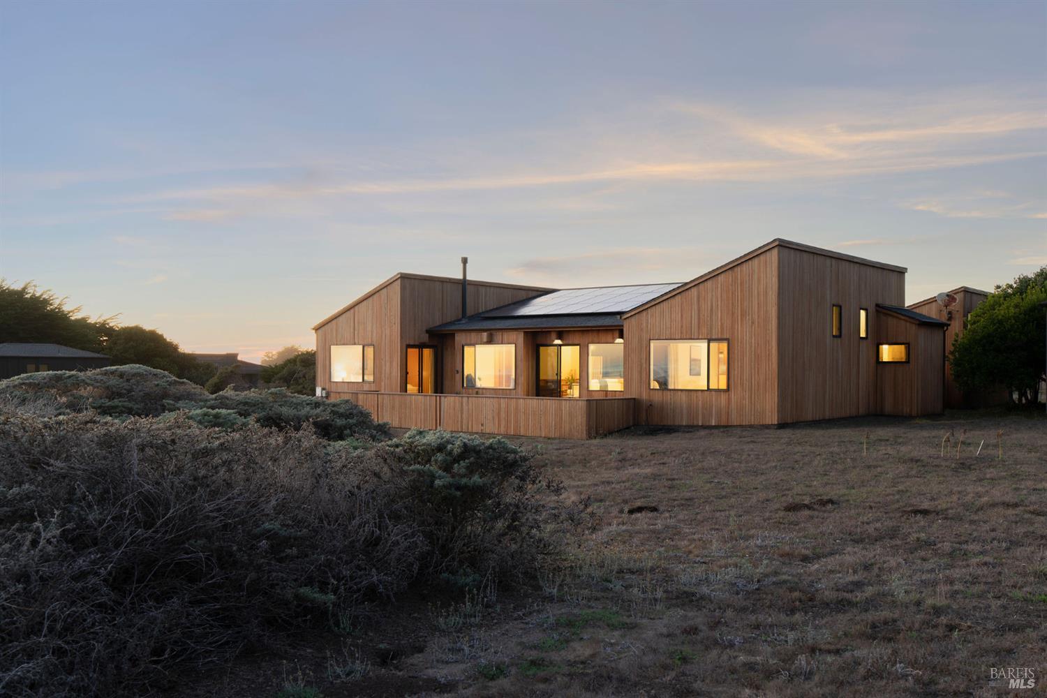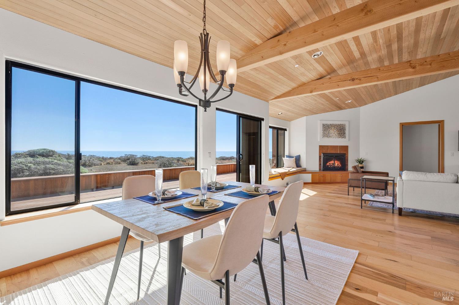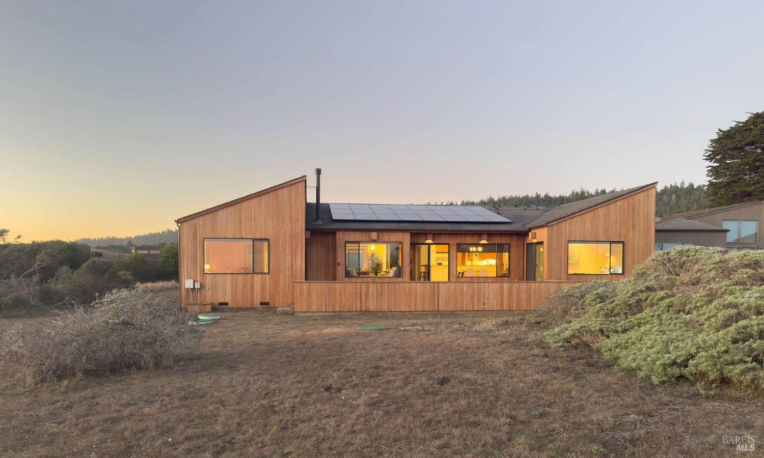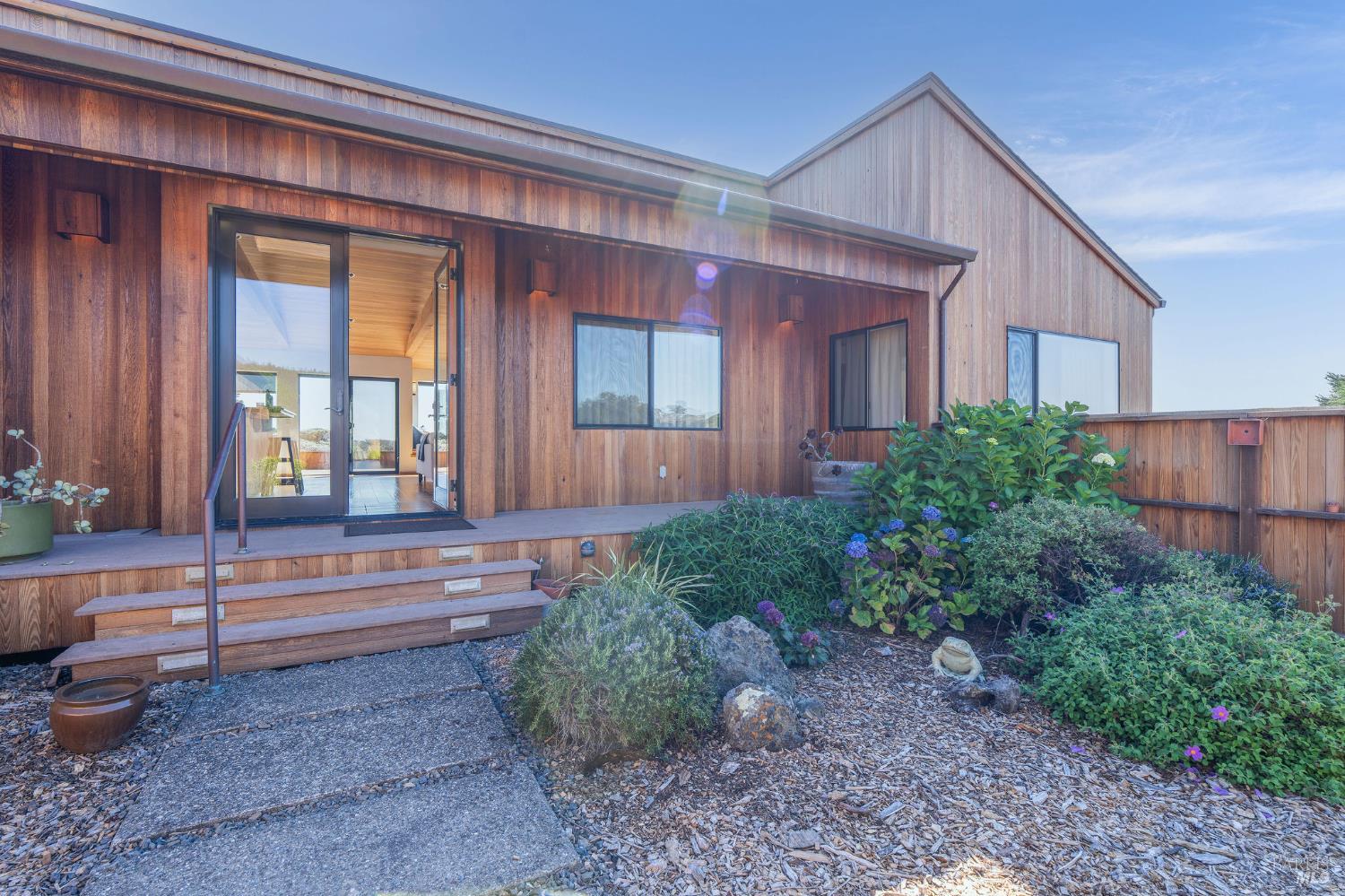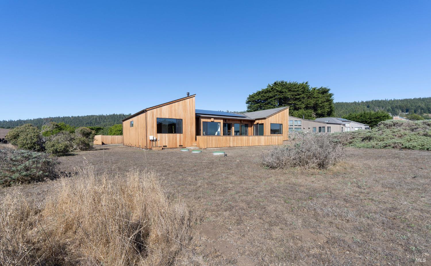 Great location at The Sea Ranch! Enjoy breathtaking, unobstructed blue and white water views from almost every room in this contemporary 2007 single-story home. Combined kitchen, dining, and living areas plus a spacious deck allow easy entertaining and gathering as well as unimpeded enjoyment of surrounding nature and wildlife. A separate guest wing with 2-bedrooms/1-bath affords privacy for overnight visitors. Environmentally friendly and efficient rooftop solar with battery storage, and great passive solar exposure minimize utility bills. The master bedroom features a large walk-in closet. An indoor laundry/mud/pantry room is adjacent to the kitchen. The home is occupied by its original owners and has never been a rental. Architecture by Walter Lim AIA with quality construction by Larry Condon, this lovely home offers Sea Ranch living at its best. A two-car detached garage with solar back-up equipment is accessed via the lovely fenced-in courtyard. The landscaping is native to the area but could also host your vegetable garden. Utilities include fiber optic, 3-bedroom septic, tankless water heater, propane stove. Propane forced air heating and fireplace in living room. House is in great condition and was recently power washed and stained. Shell Beach awaits nearby!