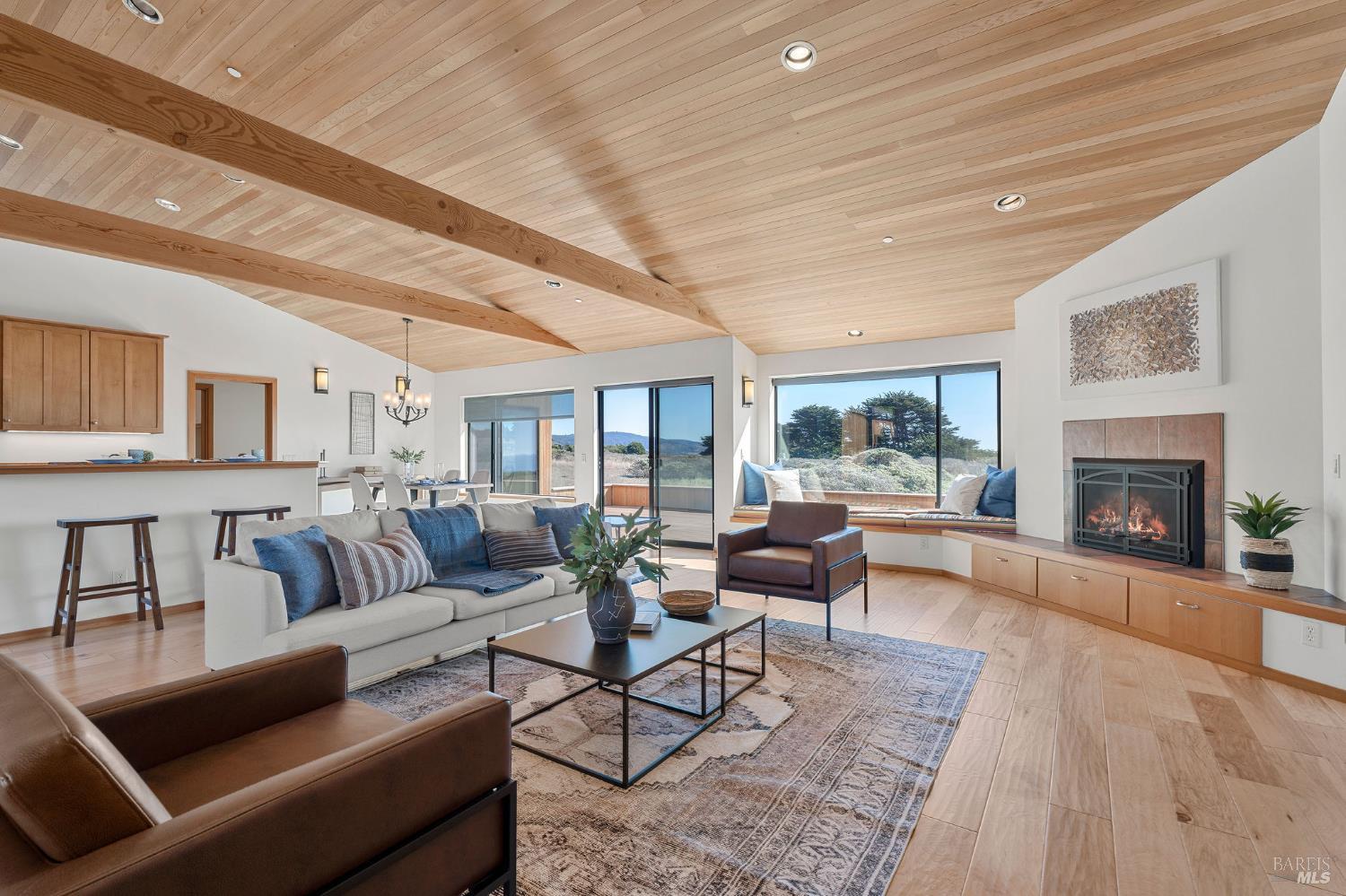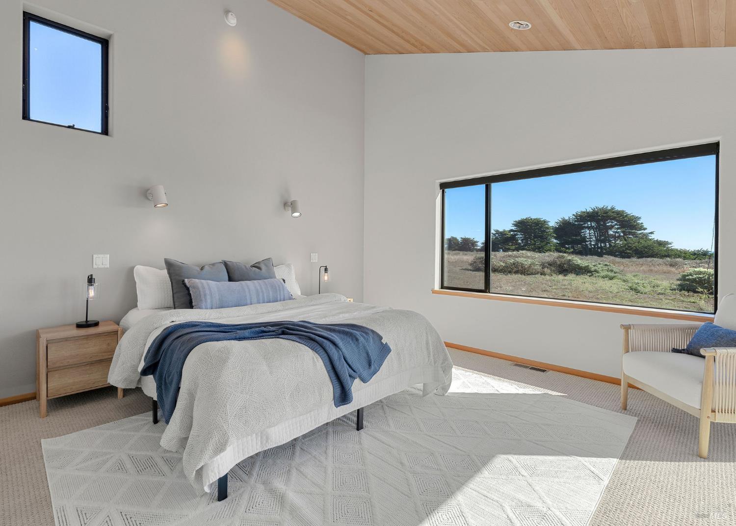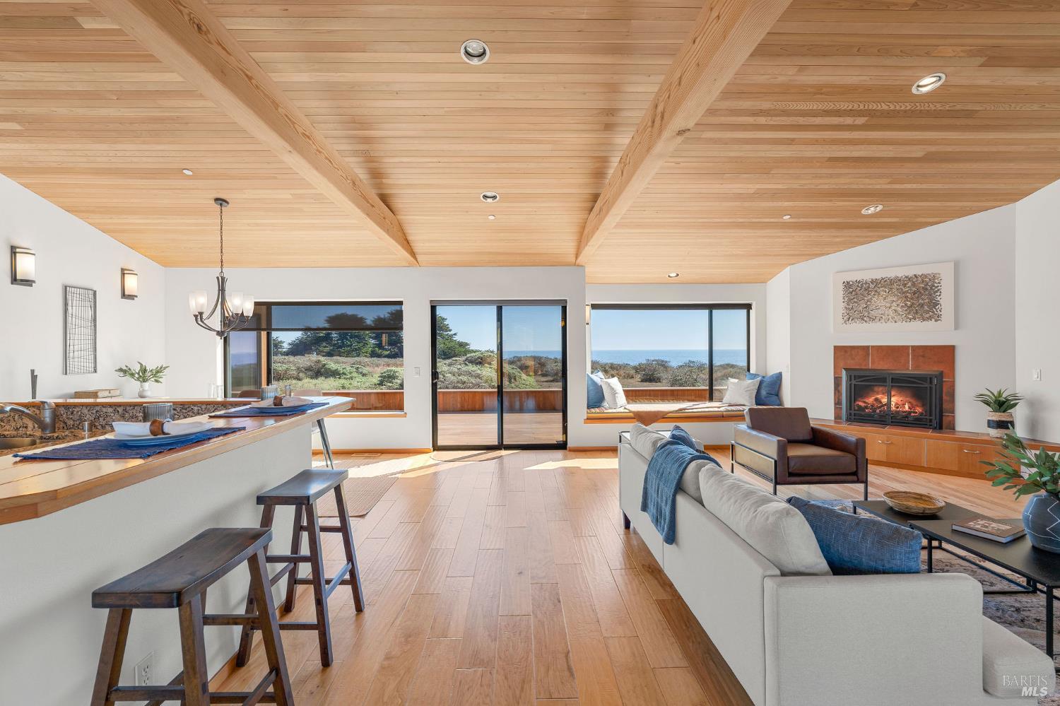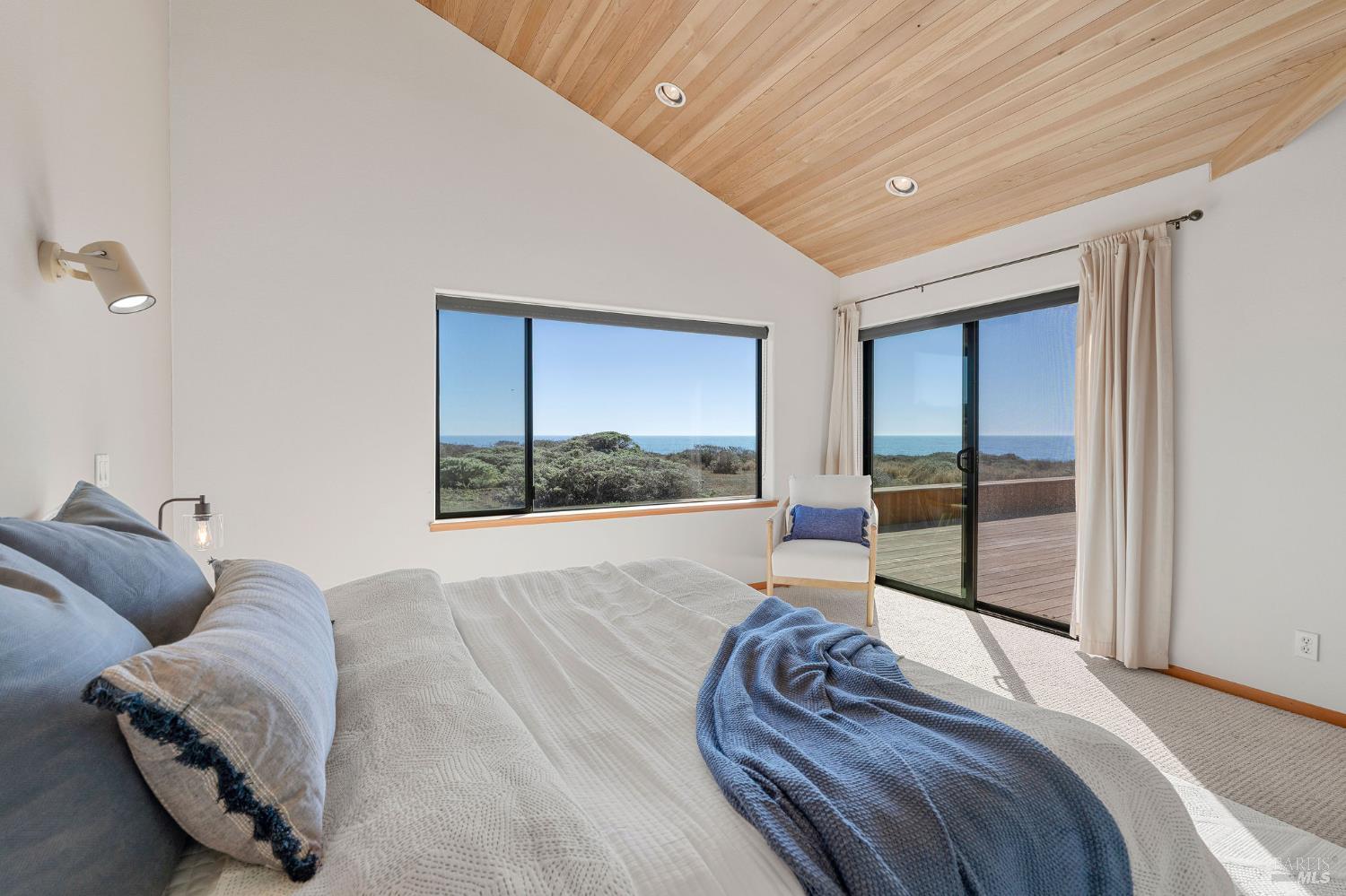Great location at The Sea Ranch! Enjoy breathtaking, unobstructed blue and white water views from almost every room in this contemporary 2007 single-story home. Combined kitchen, dining, and living areas plus a spacious deck allow easy entertaining and gathering as well as unimpeded enjoyment of surrounding nature and wildlife. A separate guest wing with 2-bedrooms/1-bath affords privacy for overnight visitors. Environmentally friendly and efficient rooftop solar with battery storage, and great passive solar exposure minimize utility bills. The master bedroom features a large walk-in closet. An indoor laundry/mud/pantry room is adjacent to the kitchen. The home is occupied by its original owners and has never been a rental. Architecture by Walter Lim AIA with quality construction by Larry Condon, this lovely home offers Sea Ranch living at its best. A two-car detached garage with solar back-up equipment is accessed via the lovely fenced-in courtyard. The landscaping is native to the area but could also host your vegetable garden. Utilities include fiber optic, 3-bedroom septic, tankless water heater, propane stove. Propane forced air heating and fireplace in living room. House is in great condition and was recently power washed and stained. Shell Beach awaits nearby!