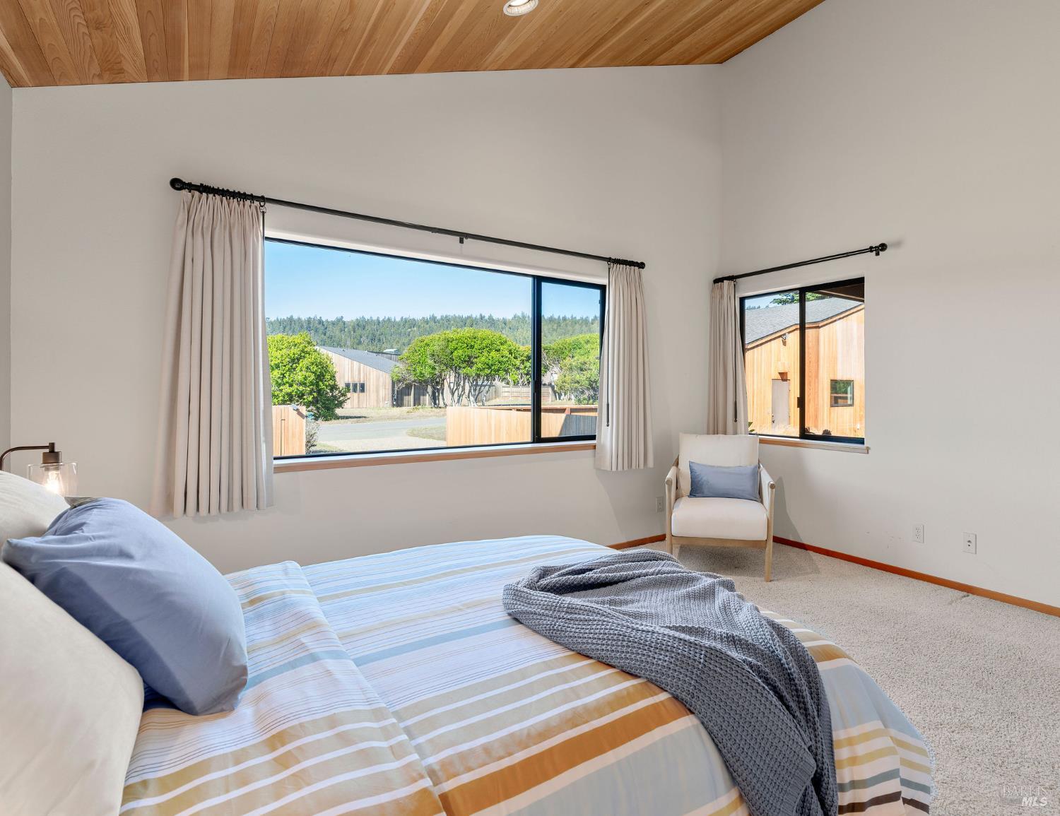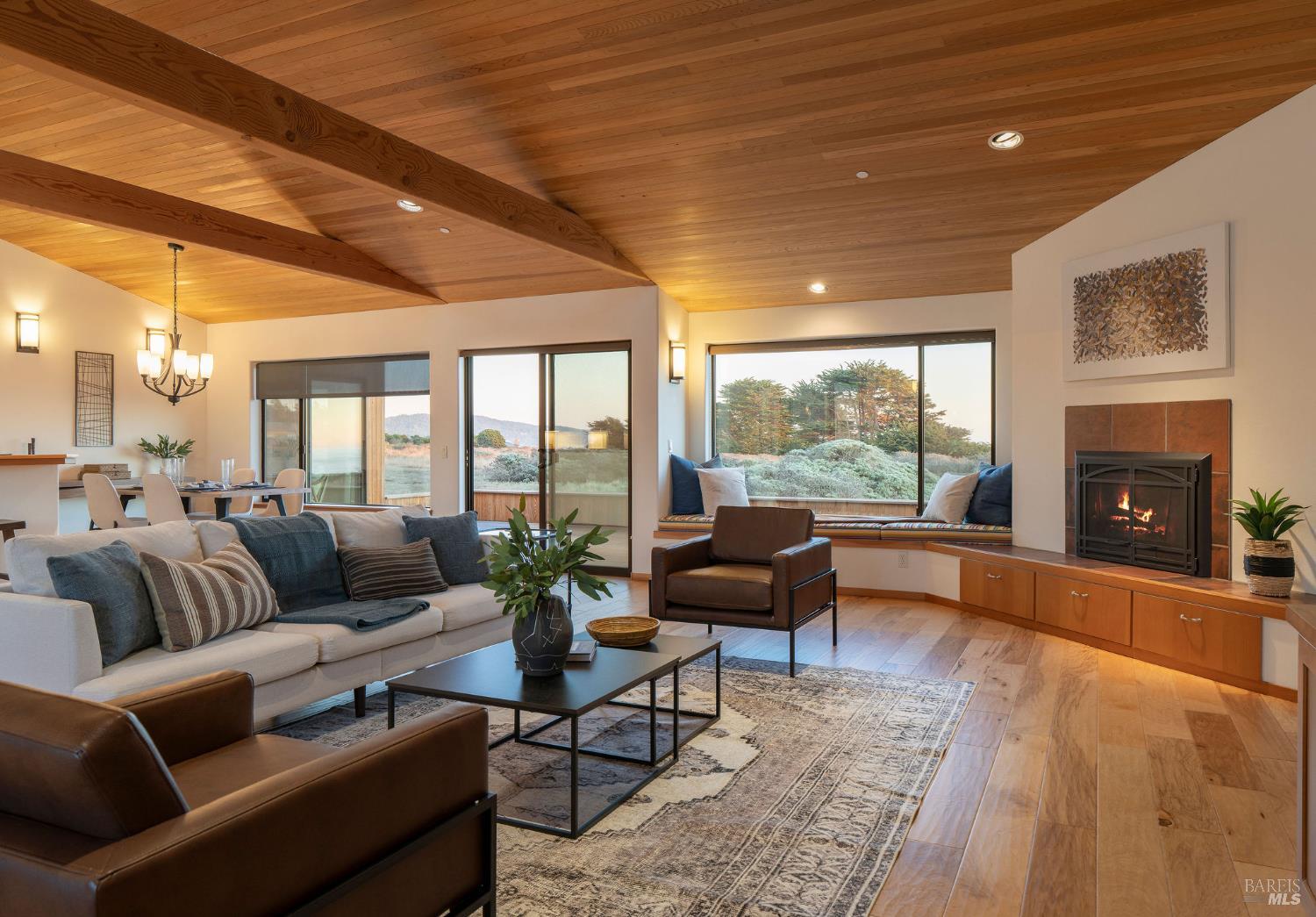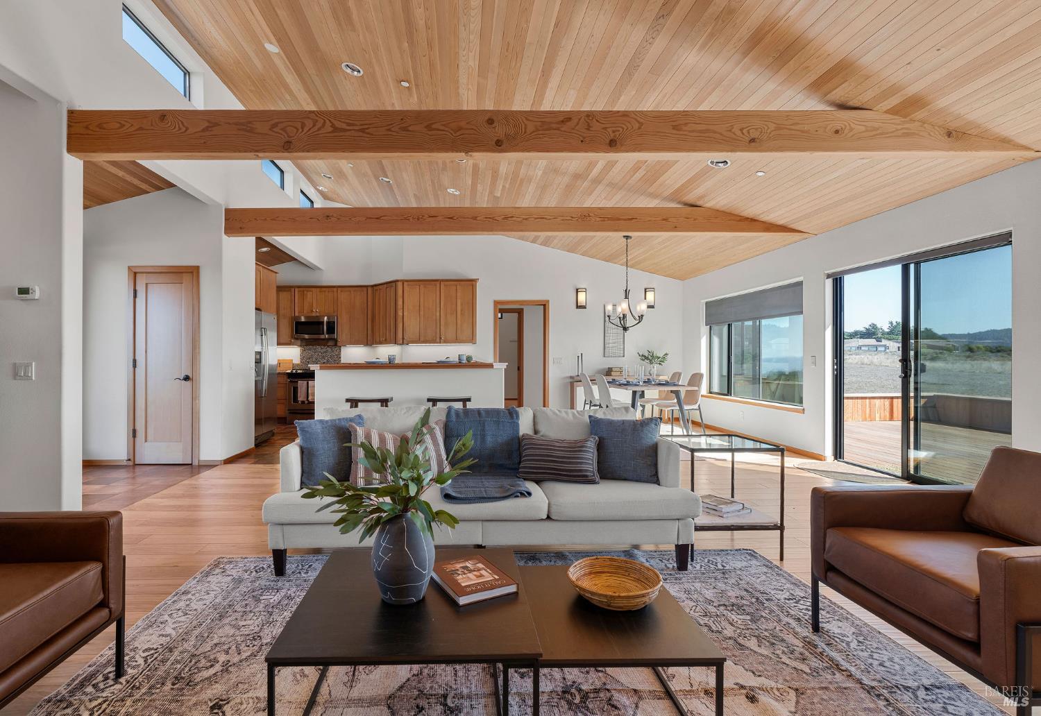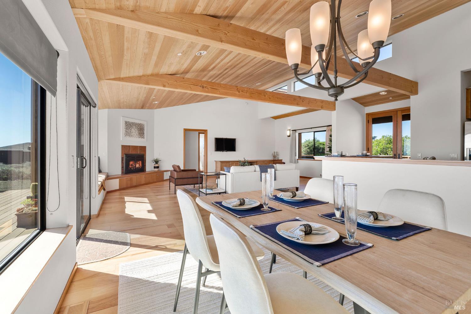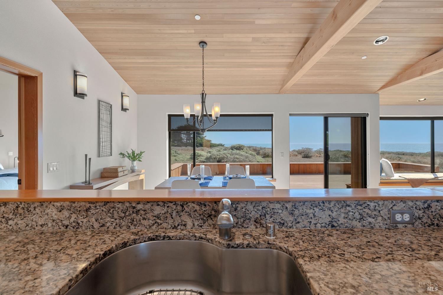 Great location at The Sea Ranch! Enjoy breathtaking, unobstructed blue and white water views from almost every room in this contemporary 2007 single-story home. Combined kitchen, dining, and living areas plus a spacious deck allow easy entertaining and gathering as well as unimpeded enjoyment of surrounding nature and wildlife. A separate guest wing with 2-bedrooms/1-bath affords privacy for overnight visitors. Environmentally friendly and efficient rooftop solar with battery storage, and great passive solar exposure minimize utility bills. The master bedroom features a large walk-in closet. An indoor laundry/mud/pantry room is adjacent to the kitchen. The home is occupied by its original owners and has never been a rental. Architecture by Walter Lim AIA with quality construction by Larry Condon, this lovely home offers Sea Ranch living at its best. A two-car detached garage with solar back-up equipment is accessed via the lovely fenced-in courtyard. The landscaping is native to the area but could also host your vegetable garden. Utilities include fiber optic, 3-bedroom septic, tankless water heater, propane stove. Propane forced air heating and fireplace in living room. House is in great condition and was recently power washed and stained. Shell Beach awaits nearby!