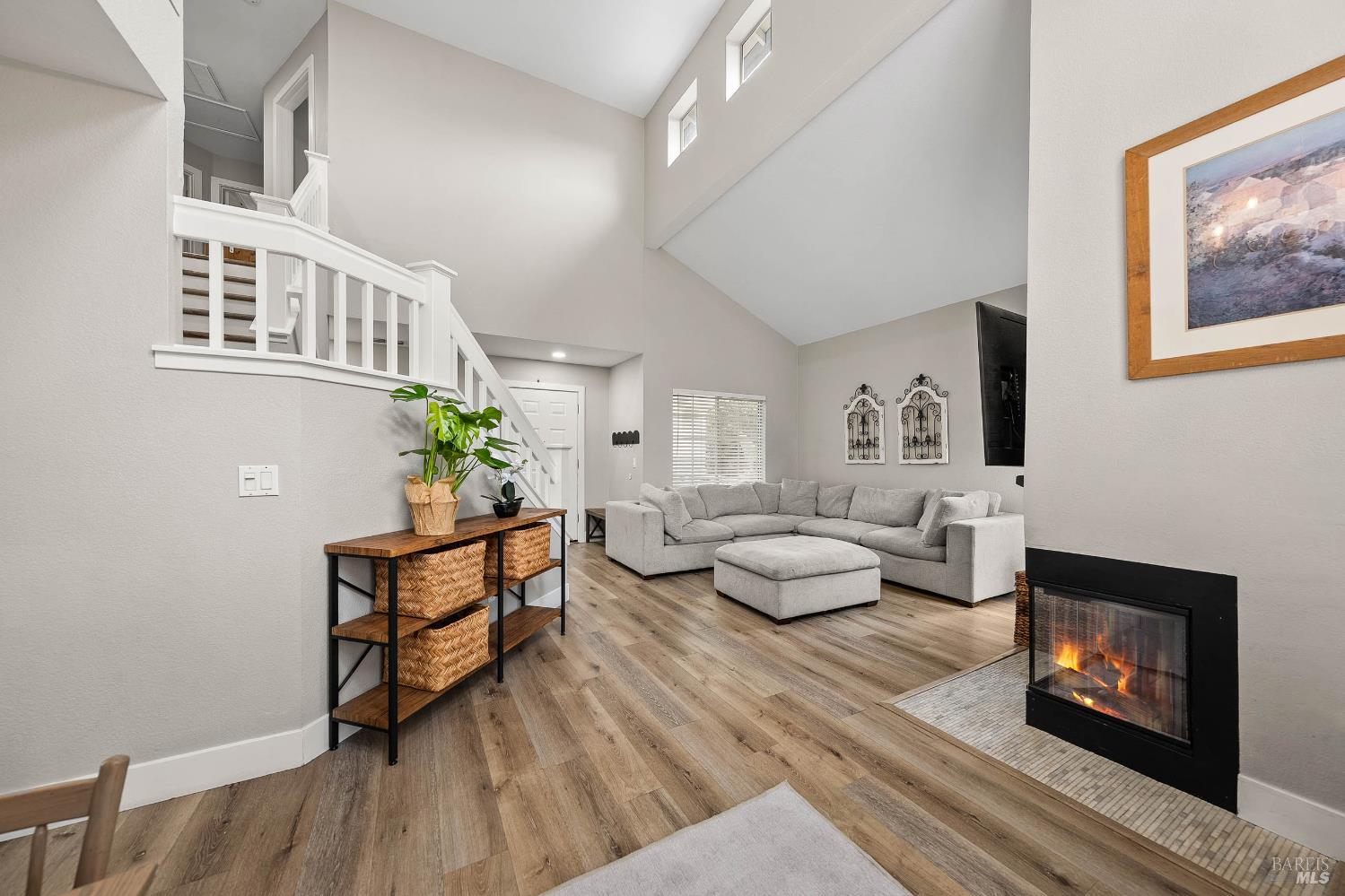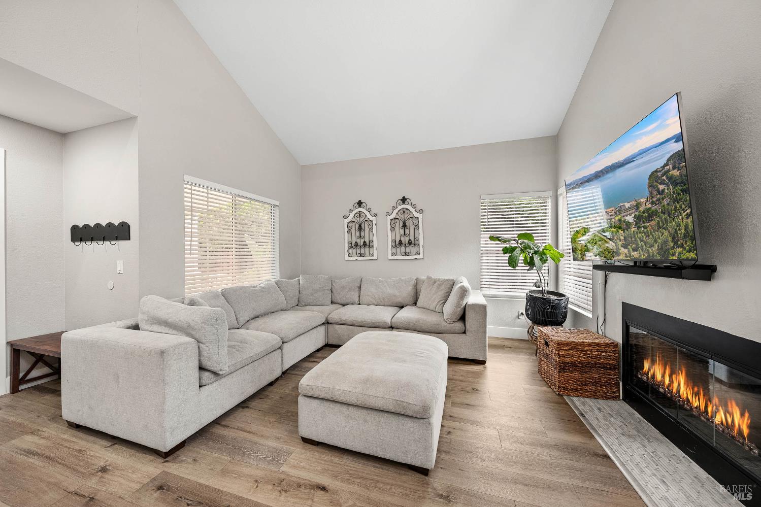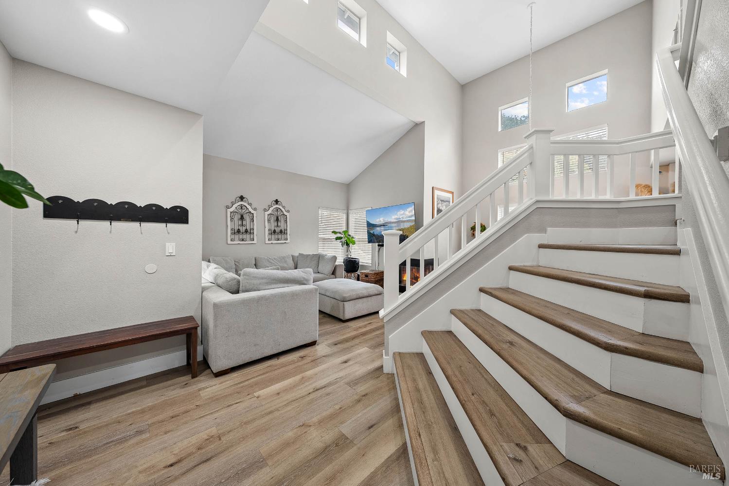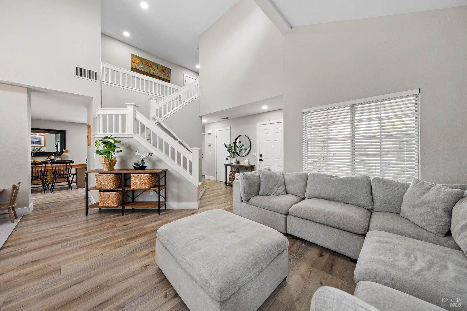 Welcome to 260 Lumas Ct! This light-filled 4-bedroom, 2.5-bath home offers over 1,600 sq. ft. of living space on a spacious corner lot in a quiet, desirable Santa Rosa neighborhood. Situated on a private court with only five homes, it provides a peaceful setting with minimal traffic. Step inside to soaring vaulted ceilings, abundant natural light, and a bright, open layout designed for comfortable modern living. The home features fresh interior touches, including painted kitchen cabinets that add a clean, updated look, along with modern fixtures and well-maintained finishes throughout. The living room's tall ceilings and large windows create an inviting atmosphere, while the dining and family areas offer great flow for gatherings. Upstairs, the primary suite serves as a relaxing retreat with plenty of natural light. Enjoy the outdoors in the spacious backyard, perfect for gardening, play, or entertaining. Conveniently located near Costco, Target, shopping, dining, and Taylor Mountain Regional Park for weekend walks and hikes. Discover the perfect blend of space, natural light, and location at 260 Lumas Ct.
