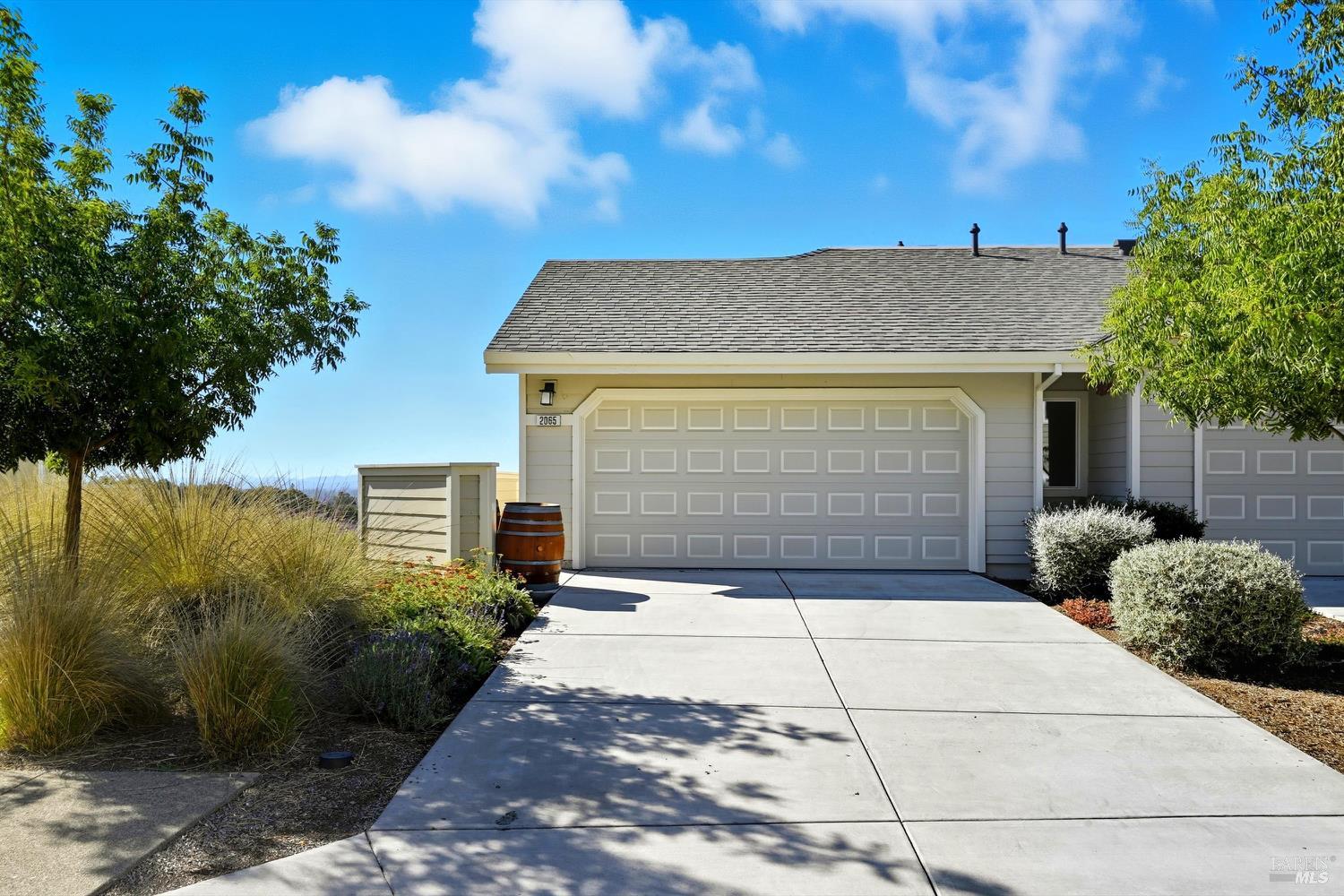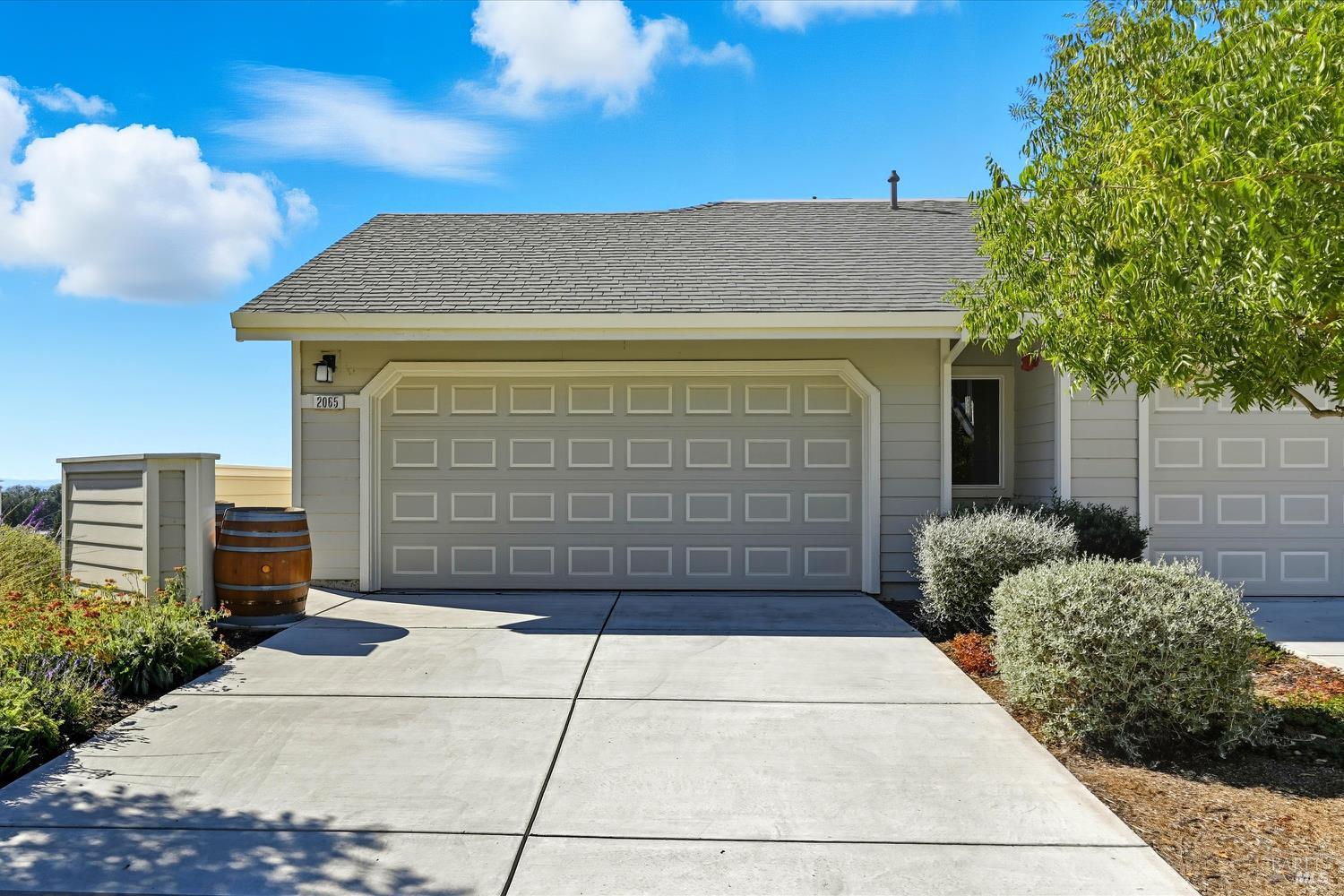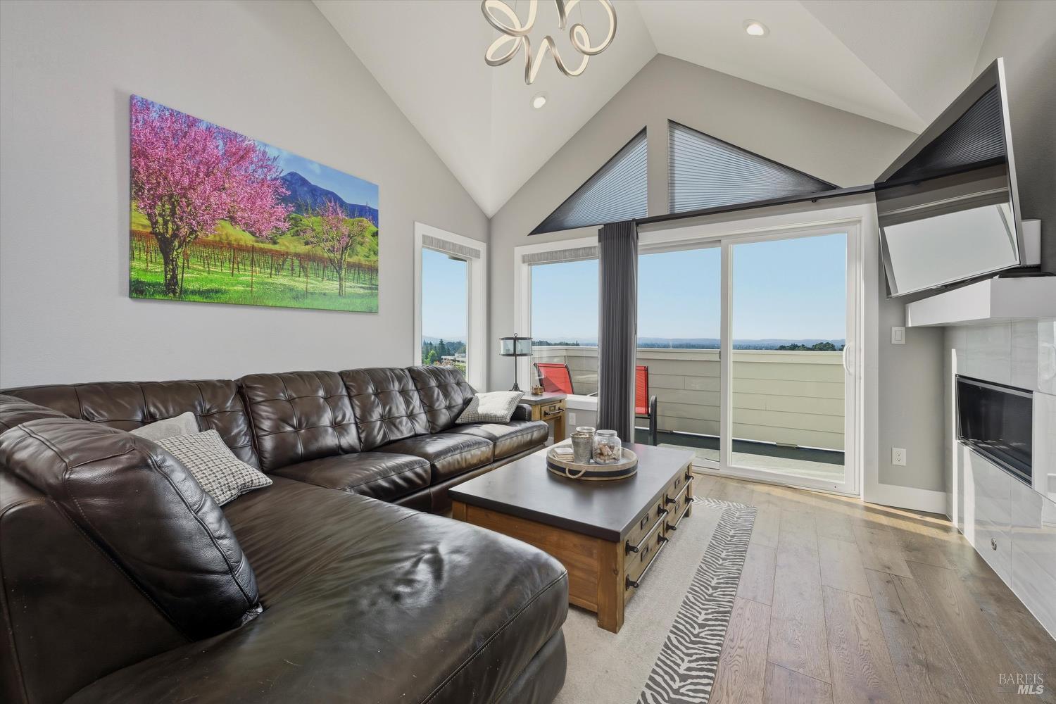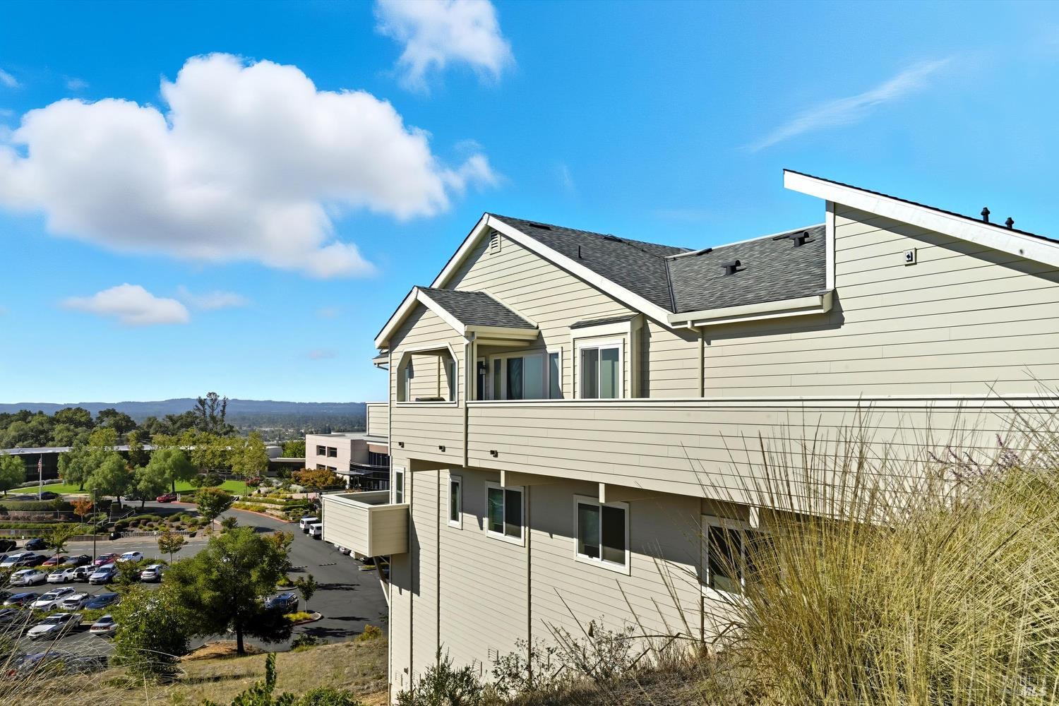 Modern End-Unit Condo with Panoramic Views, Welcome to 2065 Stonefield Lane an exceptional end-unit condo offering a perfect blend of modern elegance, comfort, and breathtaking views. Built in 2020, this light-filled home captures sweeping vistas of the valley, hills, and vibrant sunsets. Step inside to a stunning open-concept great room with vaulted ceilings, wide-plank hardwood floors, and abundant natural light. The living area features a cozy gas fireplace, while the adjacent private deck is the perfect spot to unwind or entertain as you take in the expansive scenery. The designer kitchen is a chef's dream complete with stainless steel appliances, a professional gas range, quartz countertops, and a large island with seating for four. Every detail reflects quality and style, from the custom cabinetry to the chic herringbone backsplash. The primary suite feels like a private retreat, featuring its own fireplace, private balcony access, and a spa-inspired bath with a soaking tub perfectly positioned to frame the view. Additional features include a secondary living area ideal for a media room/Gym, attached garage parking, and an ideal end-unit location that enhances privacy and quiet. Easy access to wine country amenities and the Bay Area. Fully owned Rooftop Solar as well.