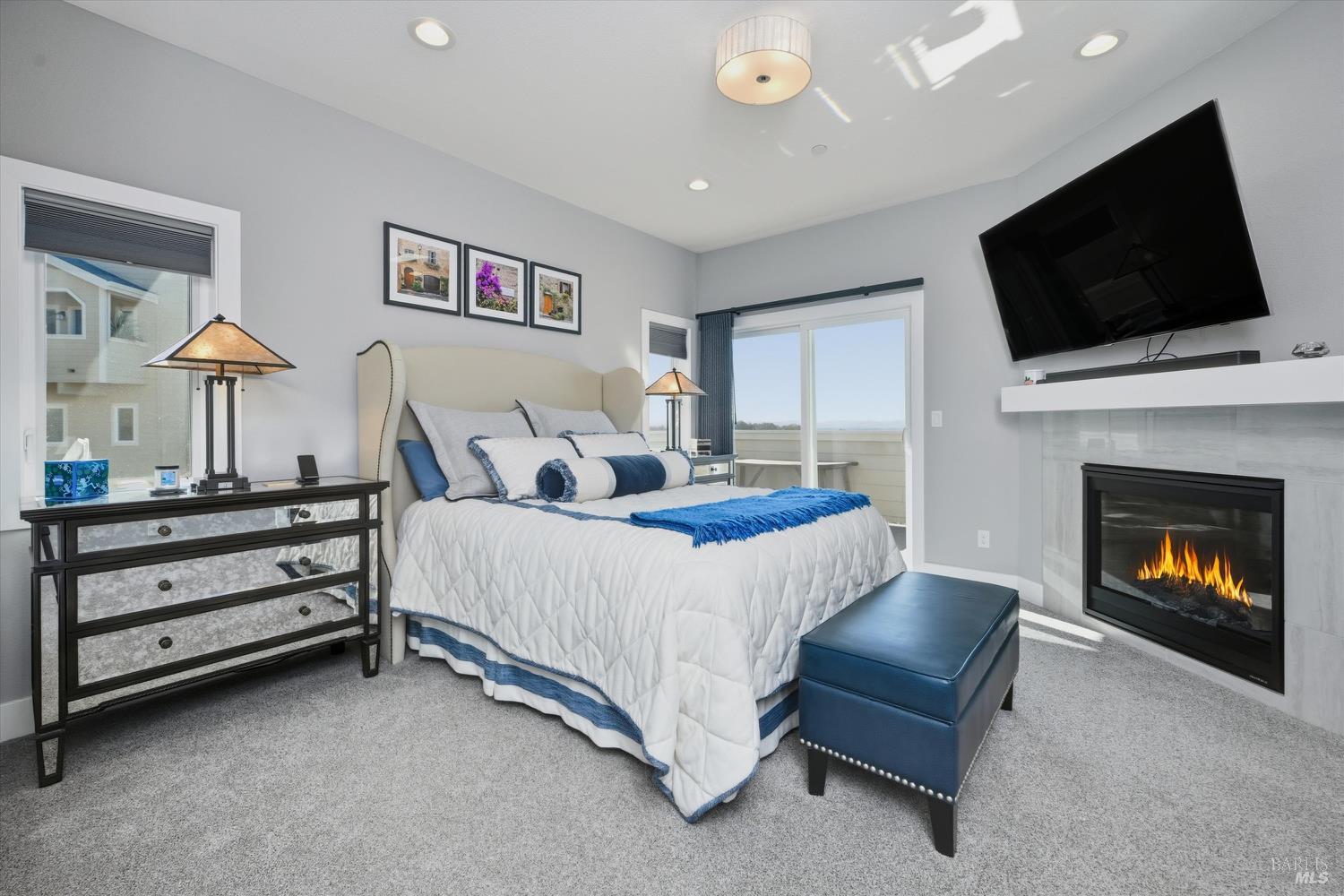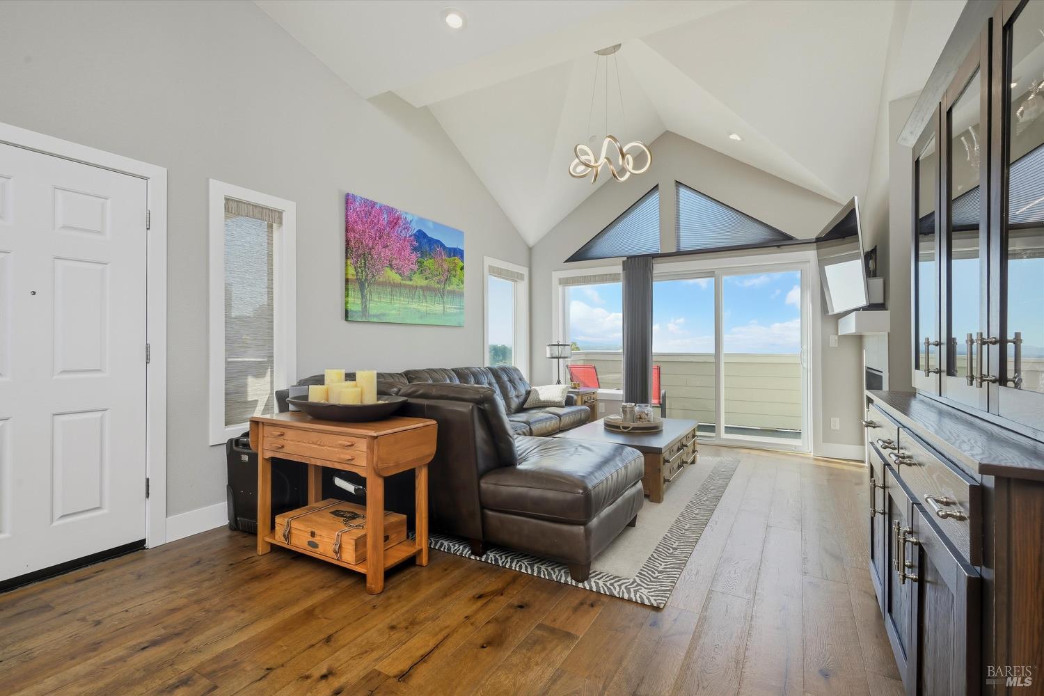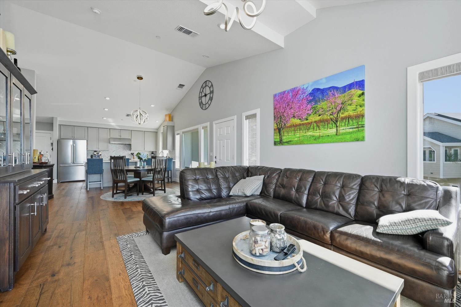 Modern End-Unit Condo with Panoramic Views, Welcome to 2065 Stonefield Lane an exceptional end-unit condo offering a perfect blend of modern elegance, comfort, and breathtaking views. Built in 2020, this light-filled home captures sweeping vistas of the valley, hills, and vibrant sunsets. Step inside to a stunning open-concept great room with vaulted ceilings, wide-plank hardwood floors, and abundant natural light. The living area features a cozy gas fireplace, while the adjacent private deck is the perfect spot to unwind or entertain as you take in the expansive scenery. The designer kitchen is a chef's dream complete with stainless steel appliances, a professional gas range, quartz countertops, and a large island with seating for four. Every detail reflects quality and style, from the custom cabinetry to the chic herringbone backsplash. The primary suite feels like a private retreat, featuring its own fireplace, private balcony access, and a spa-inspired bath with a soaking tub perfectly positioned to frame the view. Additional features include a secondary living area ideal for a media room/Gym, attached garage parking, and an ideal end-unit location that enhances privacy and quiet. Easy access to wine country amenities and the Bay Area. Fully owned Rooftop Solar as well.